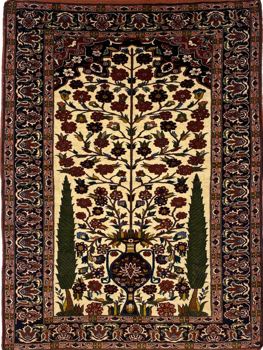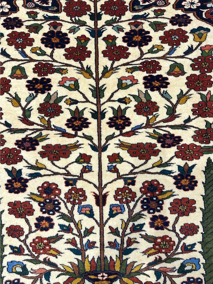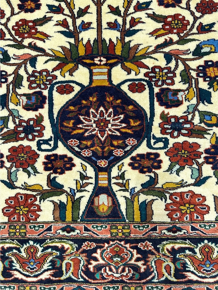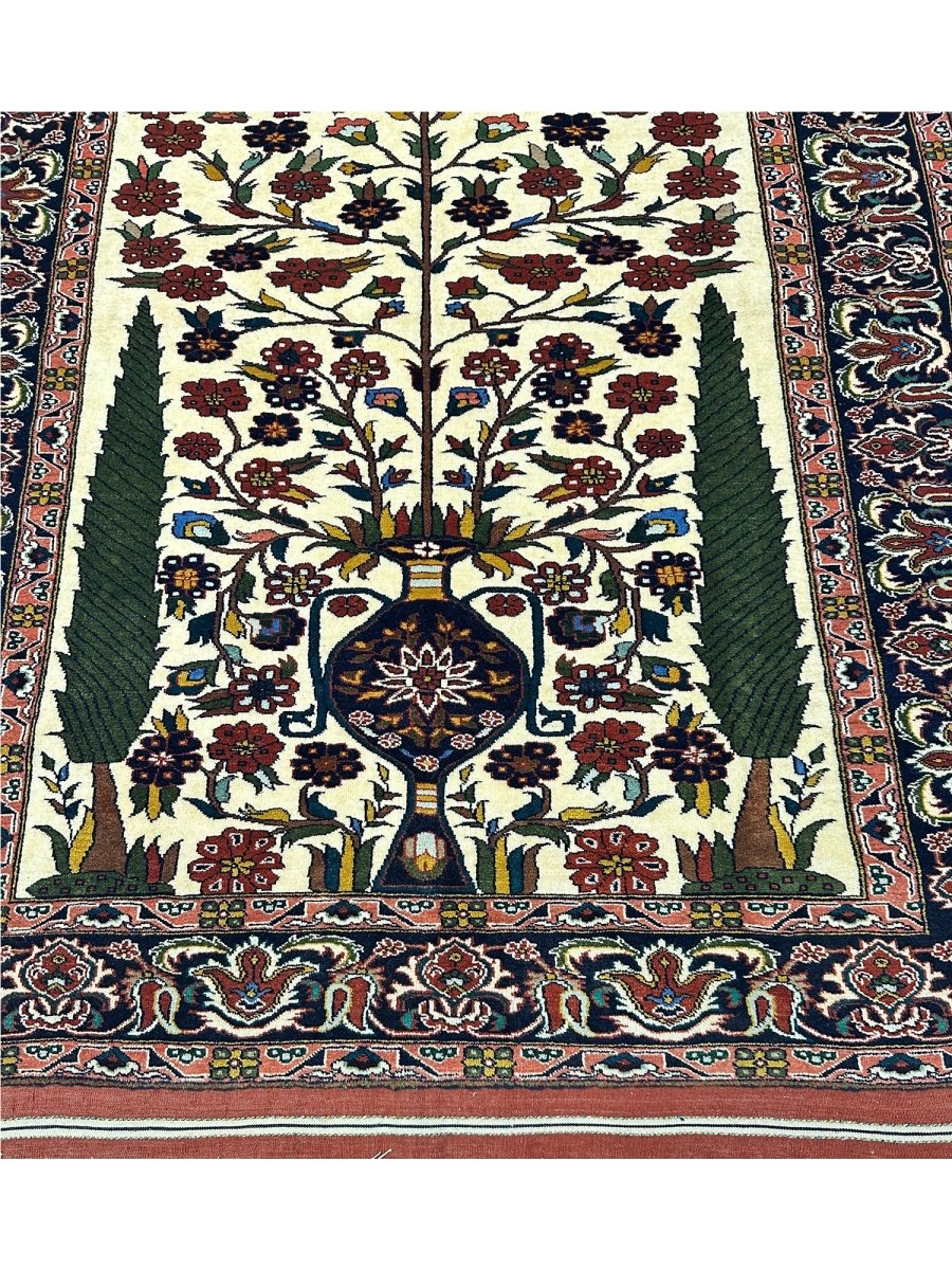 Relive the excellence of Persian weaving style on the 4'x6' Persian Tabriz Area Rug, which is made in Persia and really stands for the artisanship and sophistication that the Tabriz rugs have become known for. The rug bears floral patterns made in a rich color of ivory, rust, with some black and a touch of green to give a really dignified sense of professional sophistication into an ageless aesthetic. Hand-knotted from the best wool, this rug gives a soft touch along with high durability and natural resiliency to wear. This unique item offers free delivery all around the US.