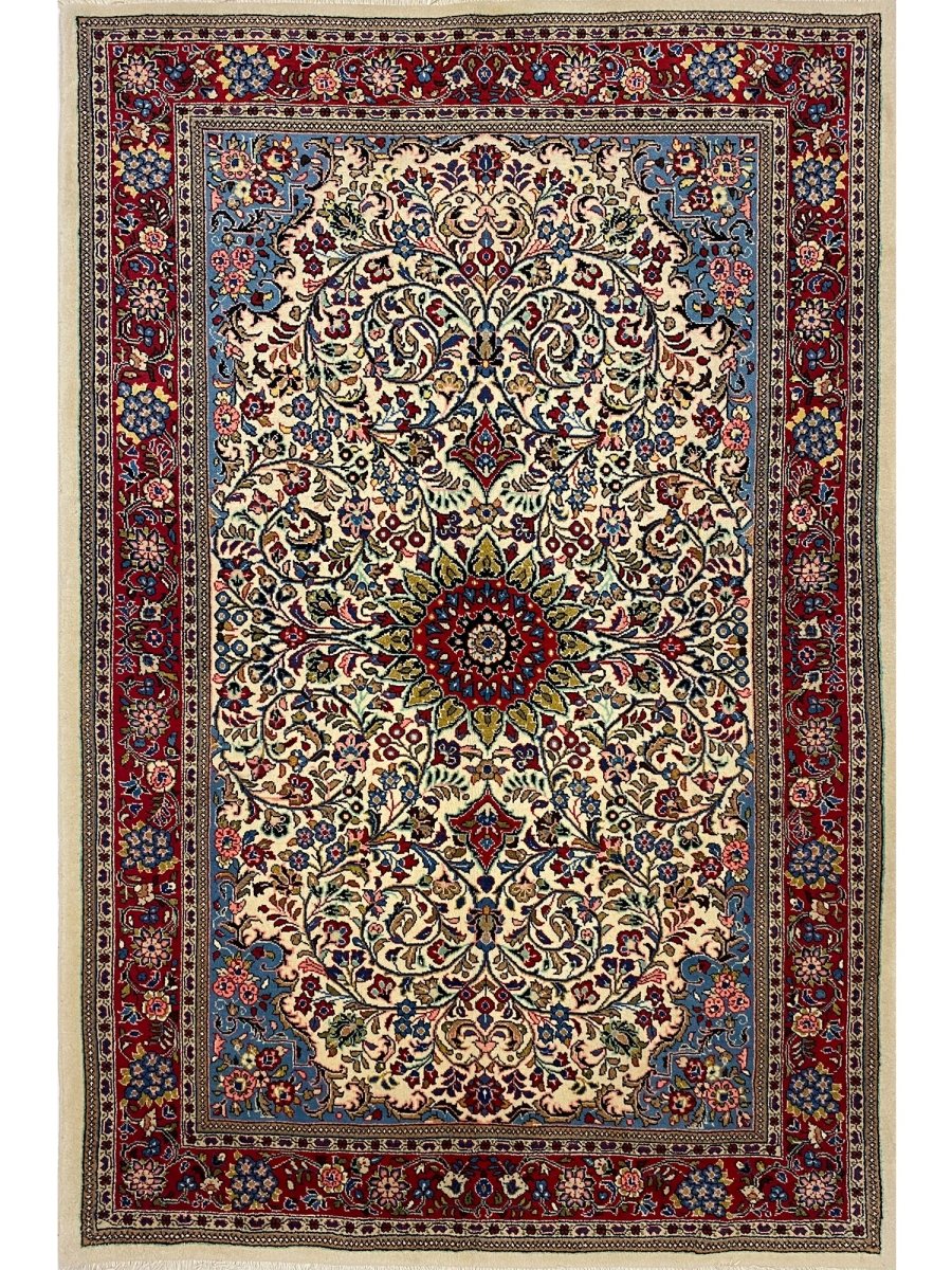 Change the look of your interior with a classic and luxurious Persian rug, a 4x7 Persian sarough area rug. Masterfully hand-woven by a skilled maker of Persia, in high-quality wool for durability and comfort, elaborated in a beautiful geometric pattern balanced with a rich red and ivory color palette. Sarough rugs are famous for their elegance, resilience, and timeless appeal. Free delivery across the US.