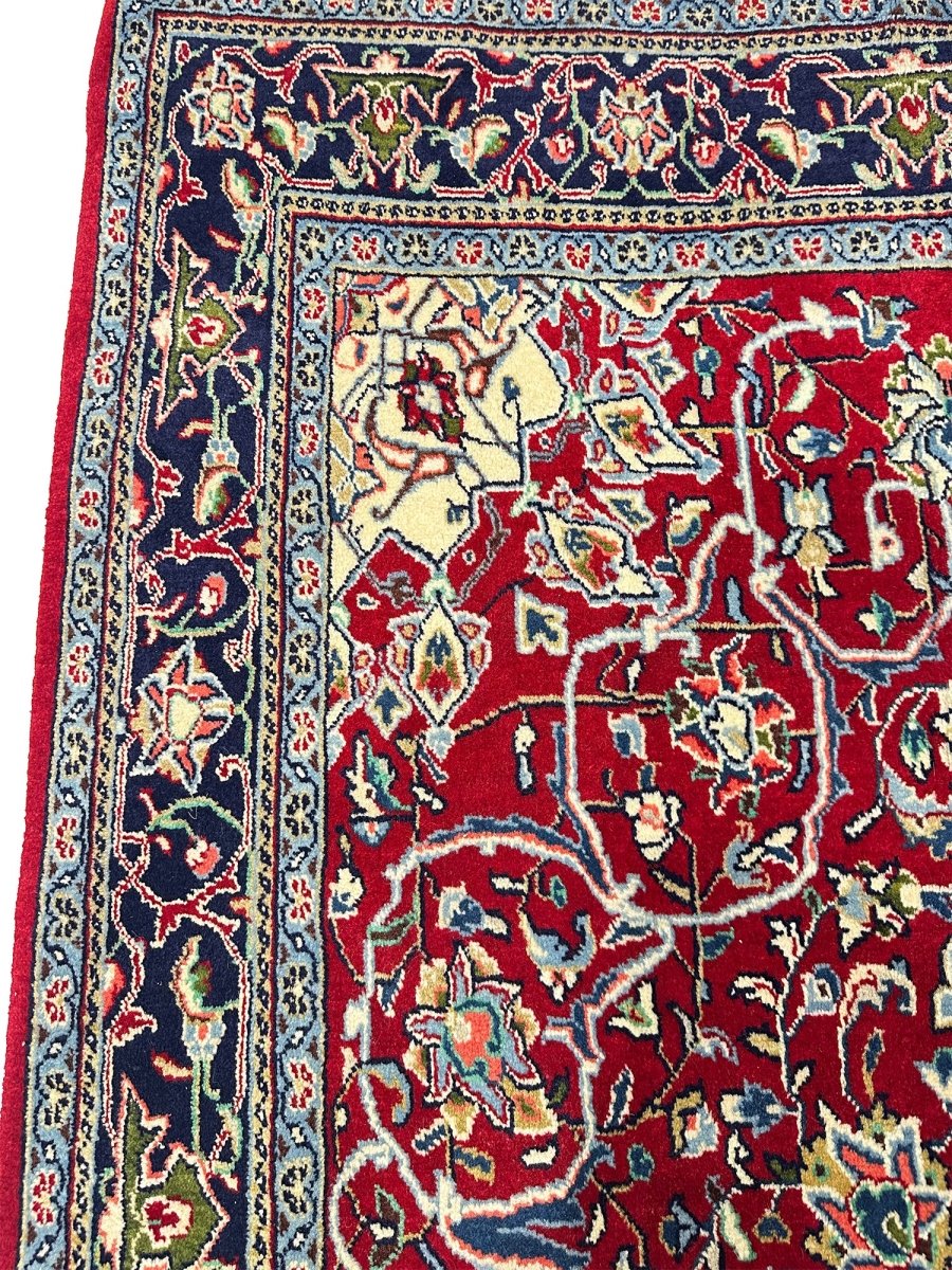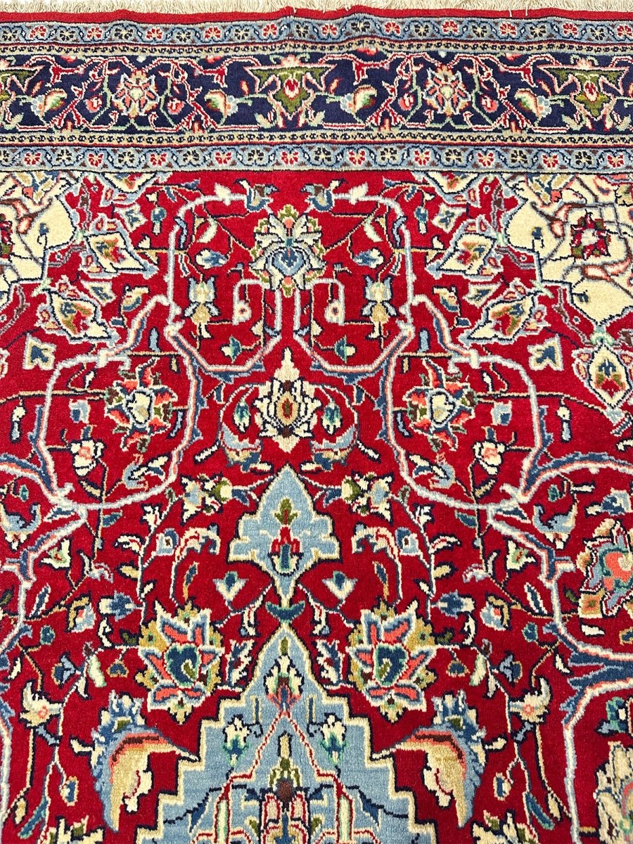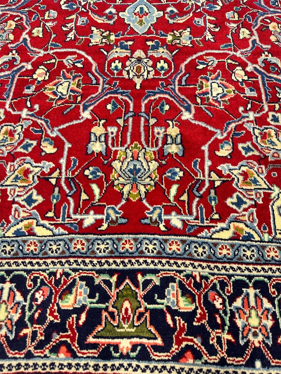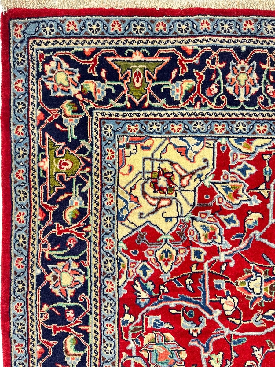 Elevate your space with the seamless design of a 5x7 hand-knotted Persian sarough area rug. Hand-knotted with elite wool in Persia, elaborated with a medallion design that will bring sparkle to every interior, and colored in vibrant red and blue. A complete package of warmth, comfort, and sophistication, rich with cultural and traditional aesthetics. Enjoy free delivery all around the US.