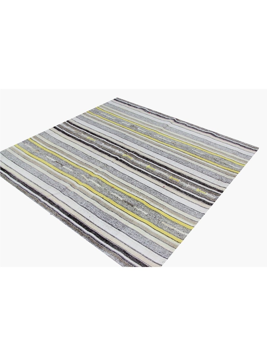 Featuring a sophisticated mix of black, yellow, gray, and beige, this Persian Kilim rug is a stylish addition to any space. The flat weave construction ensures durability. The square shape offers versatility, while the wool material provides a soft yet resilient texture. Whether used as an accent piece or a centerpiece, this rug enhances your home with its refined design. Its carefully woven details highlight expert craftsmanship, creating a balance of elegance and functionality. Designed for everyday comfort, this rug brings warmth and character to any setting.