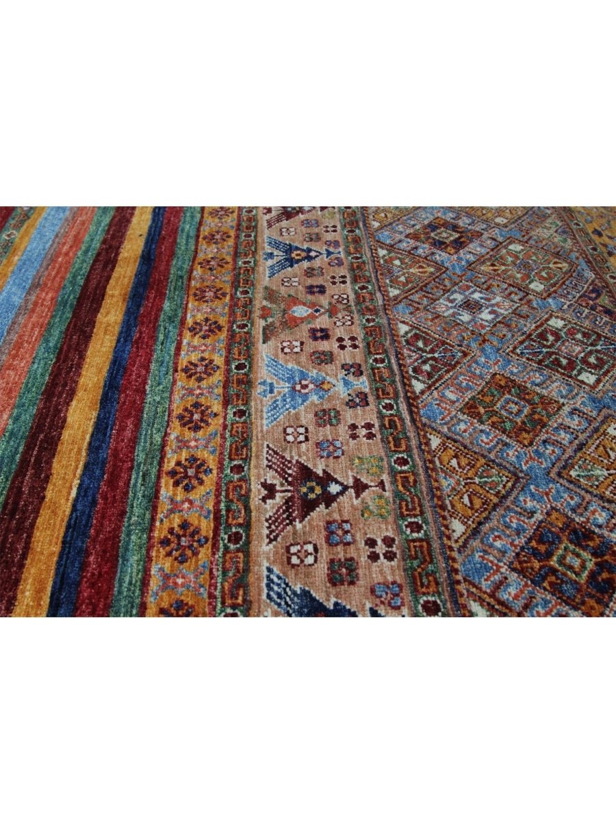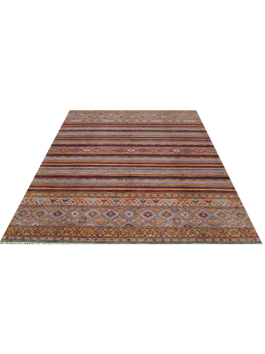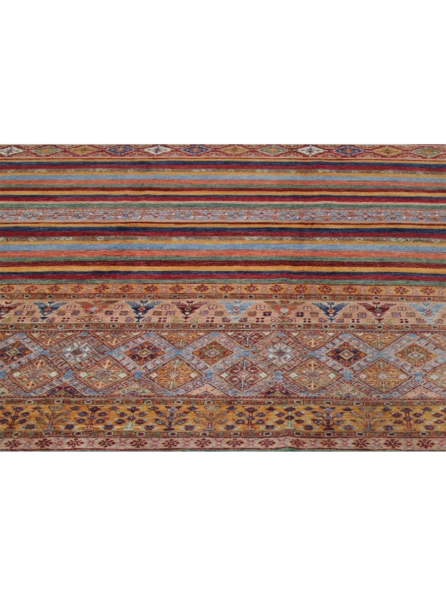 This 8x12 Tribal area rug showcases a vibrant tribal pattern in blue, orange, green, and beige, making it a one-of-a-kind centerpiece for your space. Perfect for living rooms, dining areas, or large bedrooms, it brings a lively touch to your decor. The quality craftsmanship ensures durability while providing comfort underfoot. This rug is designed for high-traffic areas, enhancing your home with style and warmth. Enjoy free shipping in the US.