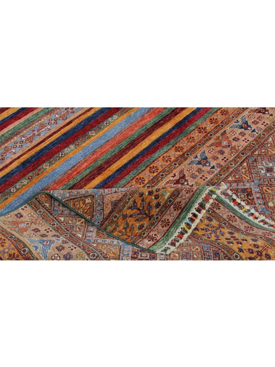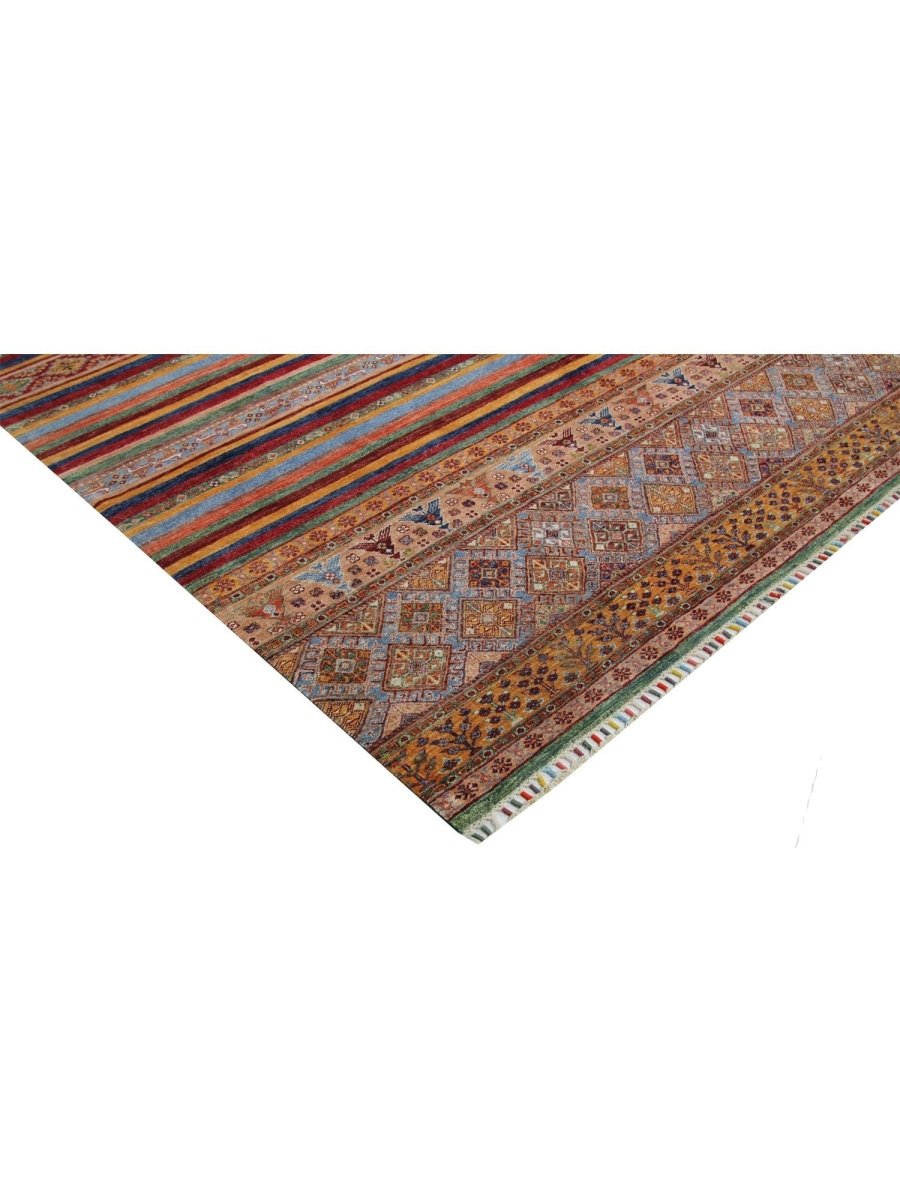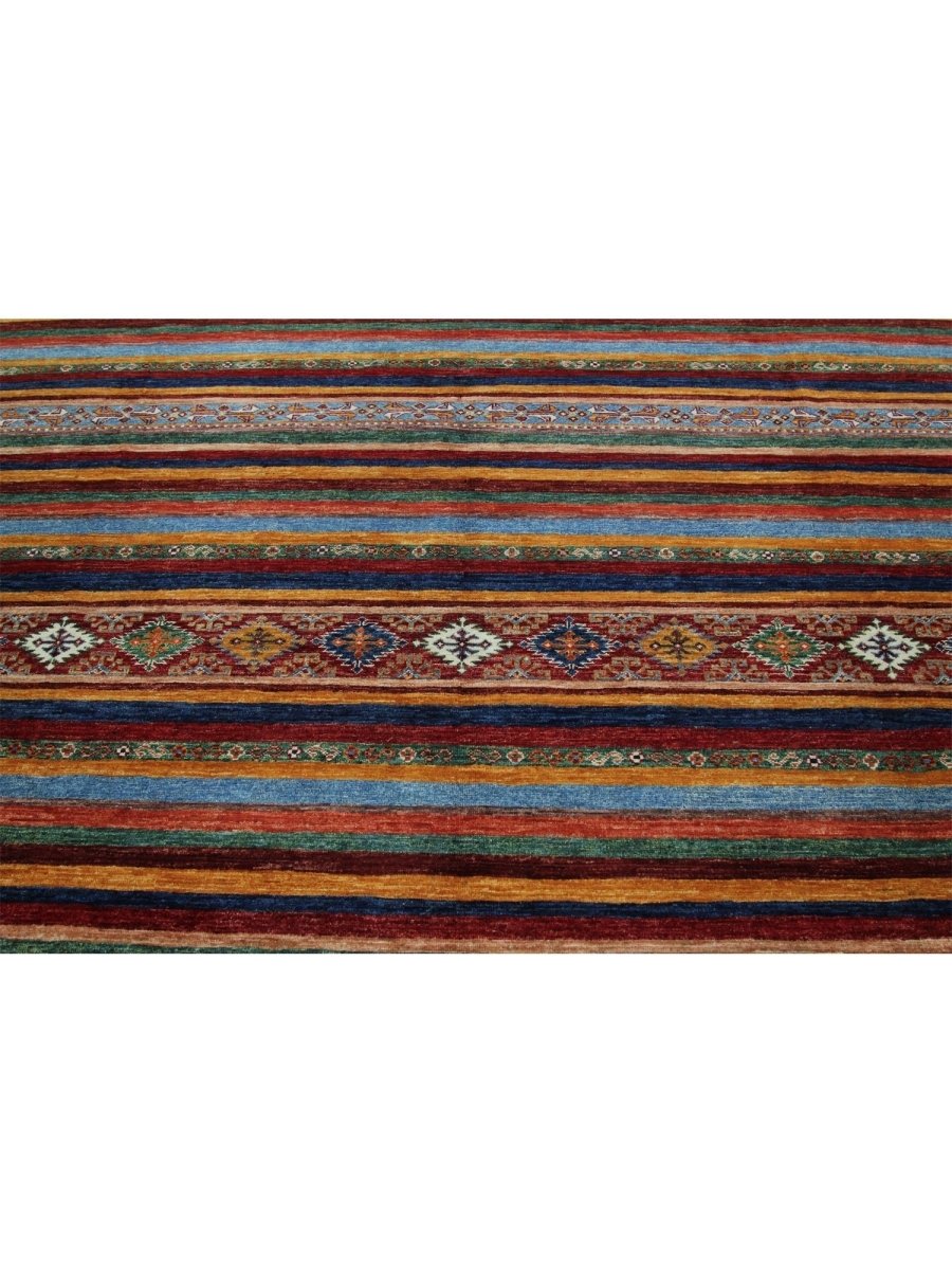 This 8x12 Tribal area rug showcases a vibrant tribal pattern in blue, orange, green, and beige, making it a one-of-a-kind centerpiece for your space. Perfect for living rooms, dining areas, or large bedrooms, it brings a lively touch to your decor. The quality craftsmanship ensures durability while providing comfort underfoot. This rug is designed for high-traffic areas, enhancing your home with style and warmth. Enjoy free shipping in the US.