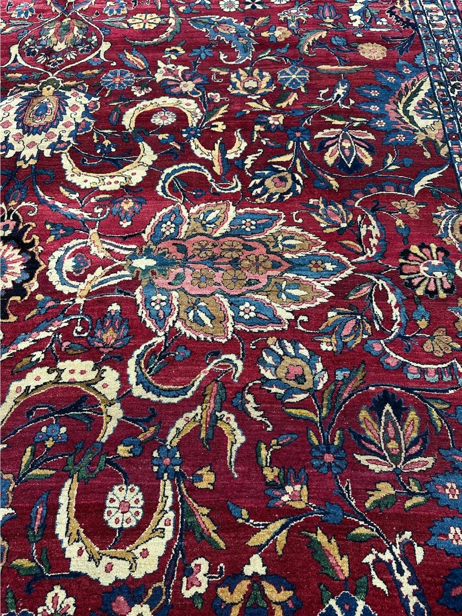 Discover the timeless elegance of this 10x13 Antique Persian Yazd area rug, expertly crafted in Persia. This rug has a traditional central medallion design, nicely framed by floral and vine patterns throughout the field and border. The rich and classic color palette is dominated by red, and intricate motifs are featured in blue, ivory, and gold. Made of high-quality wool, this rug provides remarkable durability and a high-quality feel against your feet. The medallion design is a classic symbol of Persian carpet art, ideal for adding drama to a living room, dining room, or large bedroom. Its large size and elegant finish make it an important addition to any decor. This antique Yazd rug showcases traditional craftsmanship and timeless beauty from Persia. Take advantage of free shipping to the US.