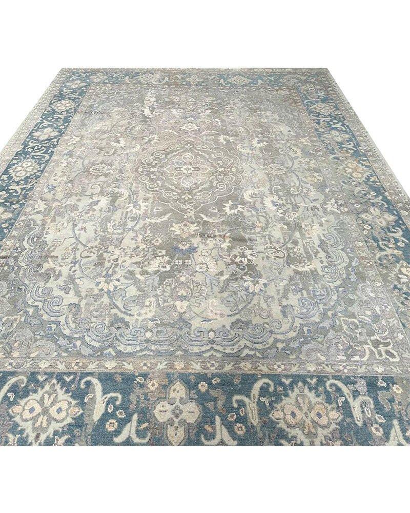 Its generous size makes it an ideal addition to a spacious living room, an elegant dining room, or a serene bedroom. It provides warmth and defines the space with understated elegance. This rug is a true testament to Indian weaving artistry, promising to be a cherished addition that enhances the sophistication and comfort of any home environment.