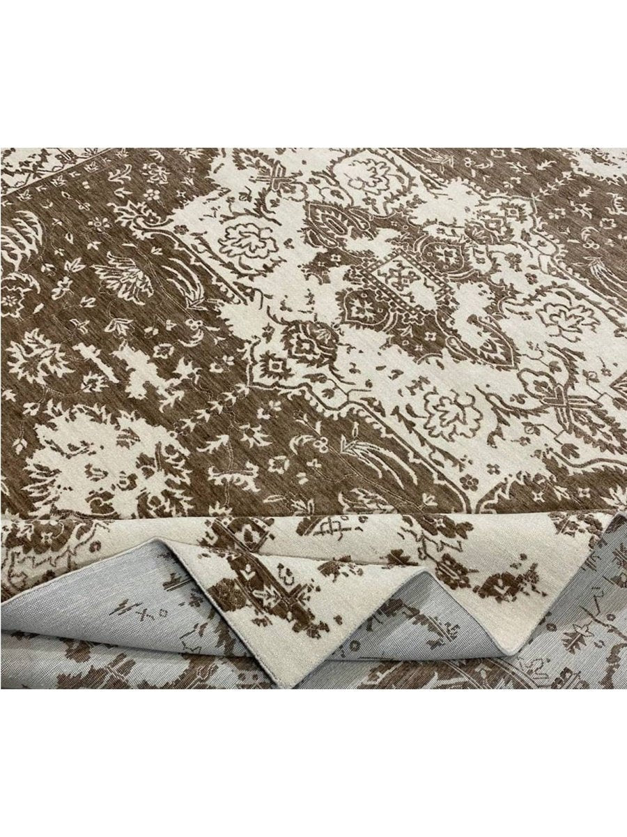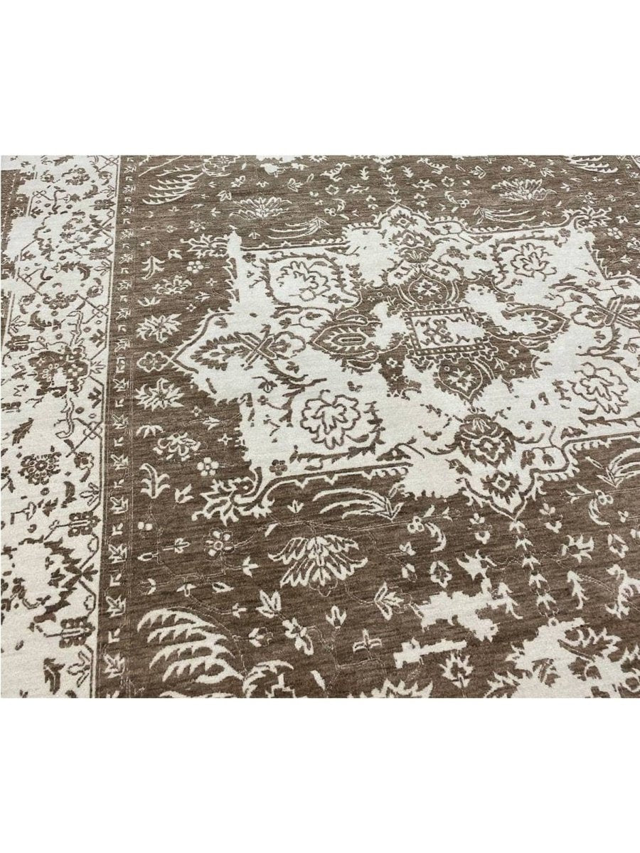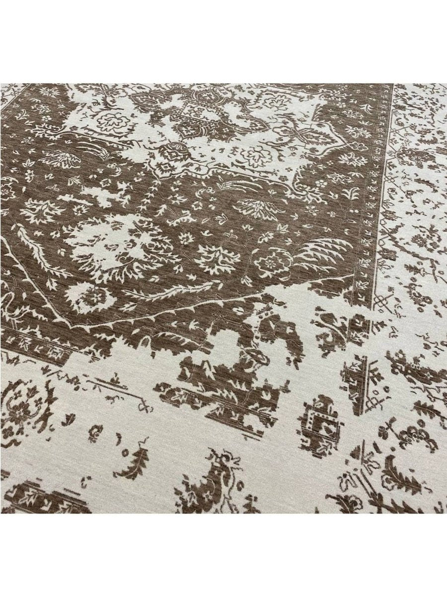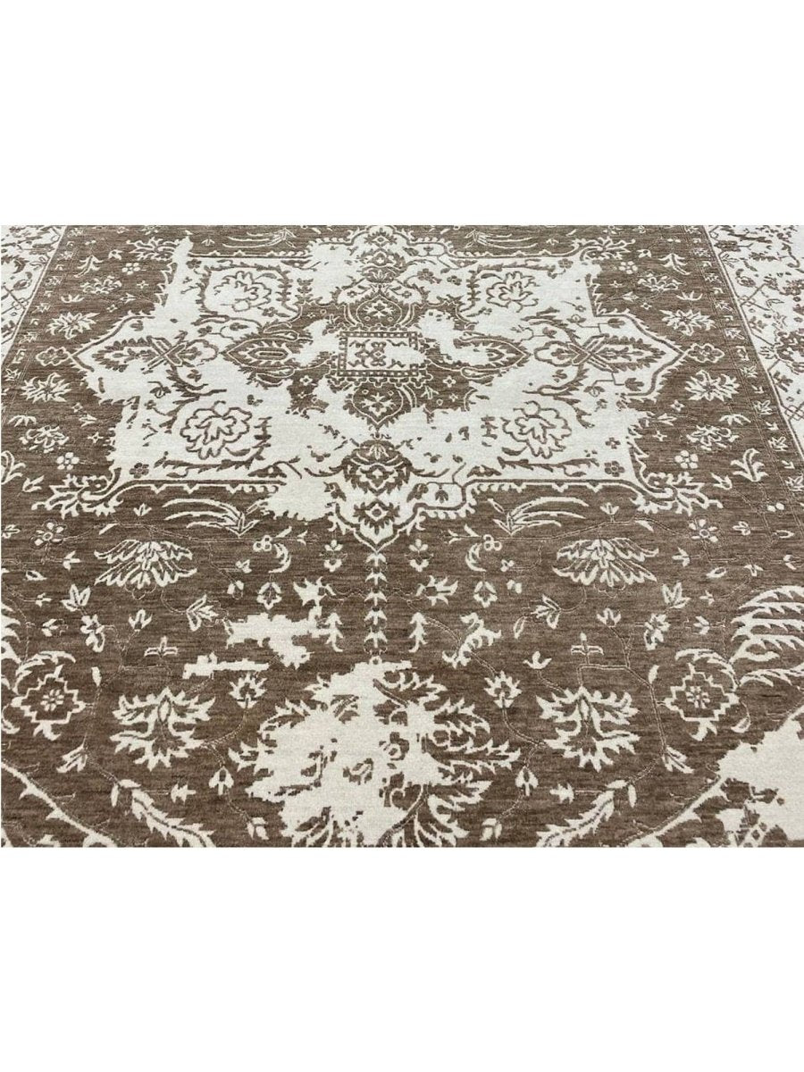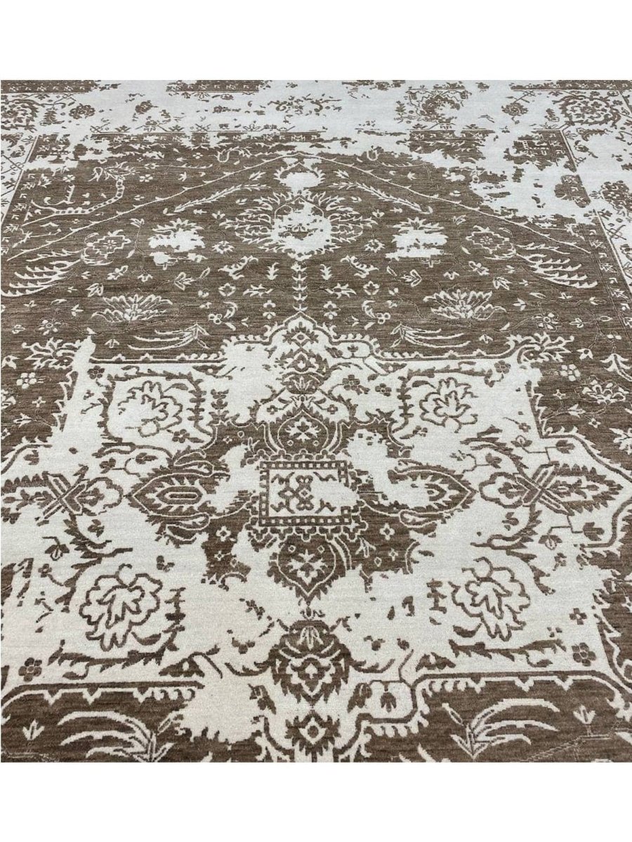 The 9x12 Transitional Heriz Area Rug, is a unique treasure that embodies the rich history of Indian weaving and will elevate your decor. Made from high-quality wool, this gorgeous rug features a medallion design that blends in perfectly with any type of interior design. It provides a friendly atmosphere and is perfect for large dining rooms, comfortable living spaces, or as a chic addition in your workplace. It is a flexible addition to your house because of the rich blend of white, and brown tones that offer depth and character. This amazing rug is a stunning work of art that elevates your living area and goes beyond simple decoration. Take advantage of free US delivery.