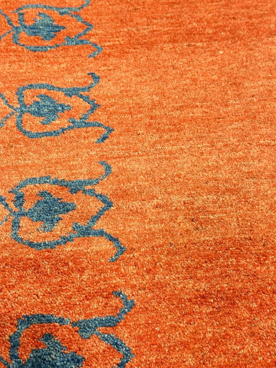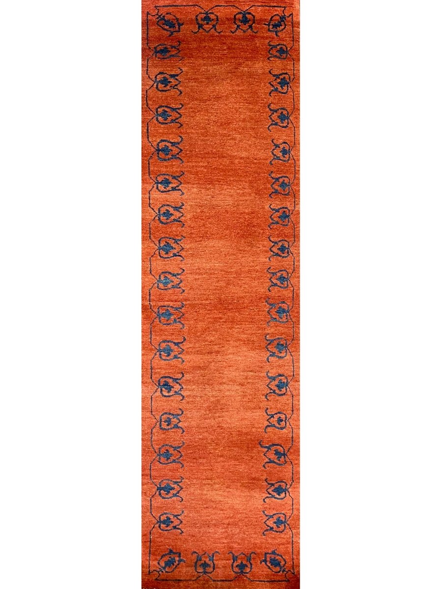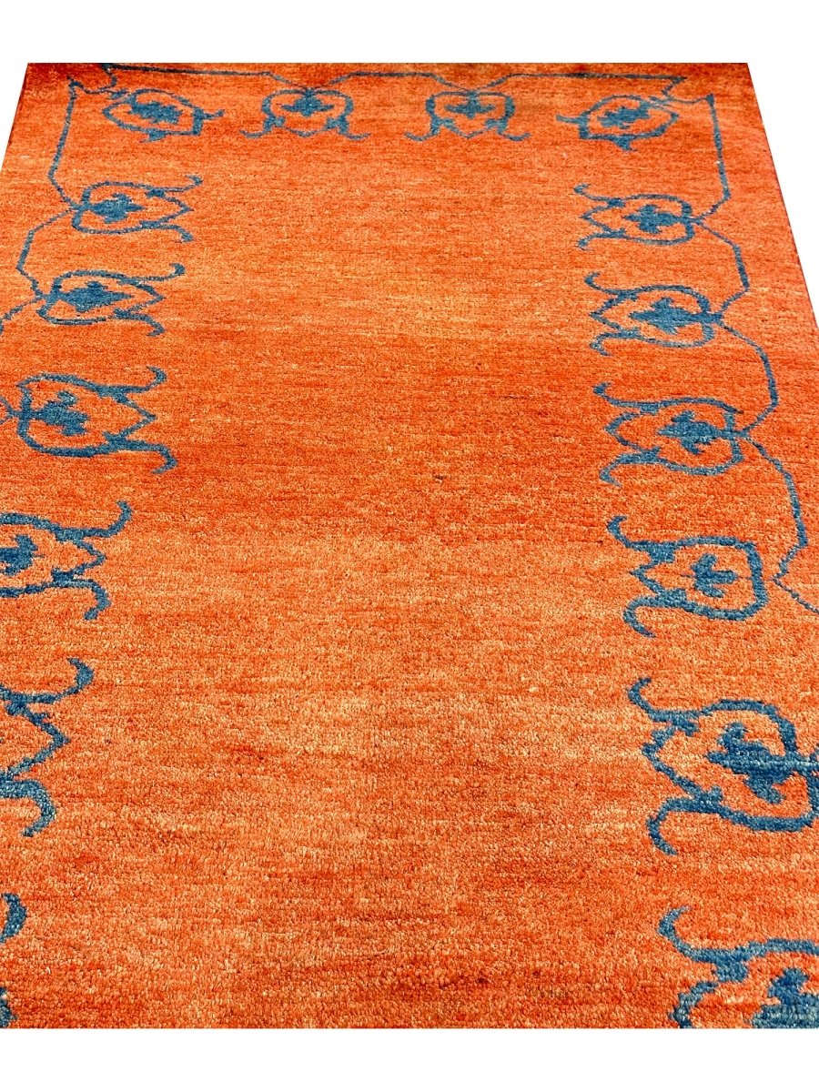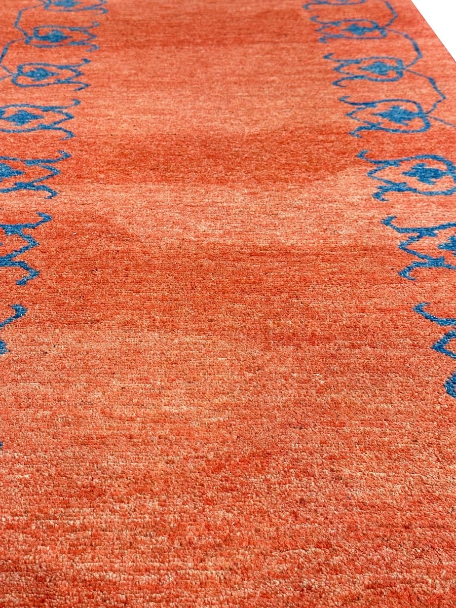 Add a touch of modern style to your home with this 2x10 Blue Modern Contemporary runner rug, crafted in India and with free shipping across the United States. This modern rug features a striking orange and blue geometric pattern, showcasing a modern design. Its durable wool construction ensures longevity and easy care, ideal for longer hallways, between the kitchen island and counters, beside the king bed, and entry corridors. The clean finish reflects quality craftsmanship and modern design. This piece effortlessly brightens, adding warmth, texture, and a relaxed, modern feel to any room.