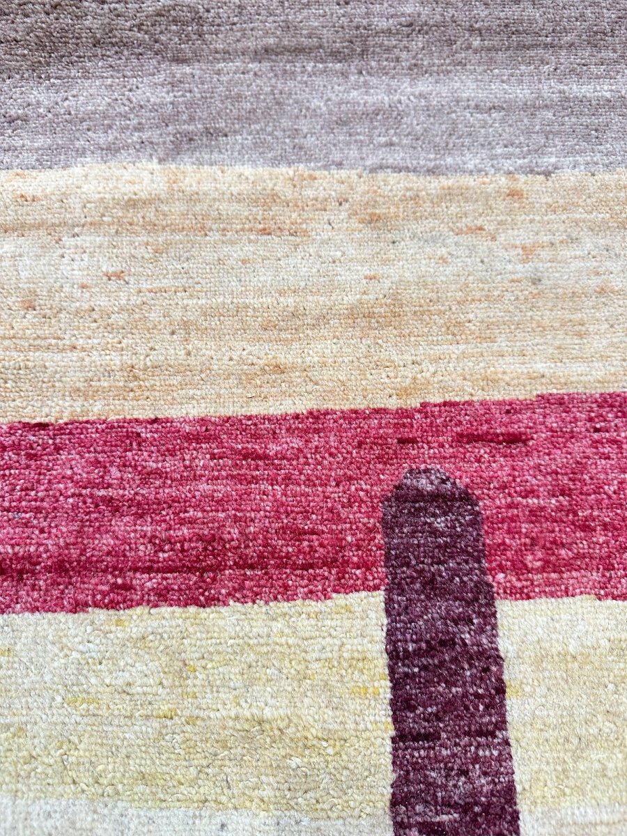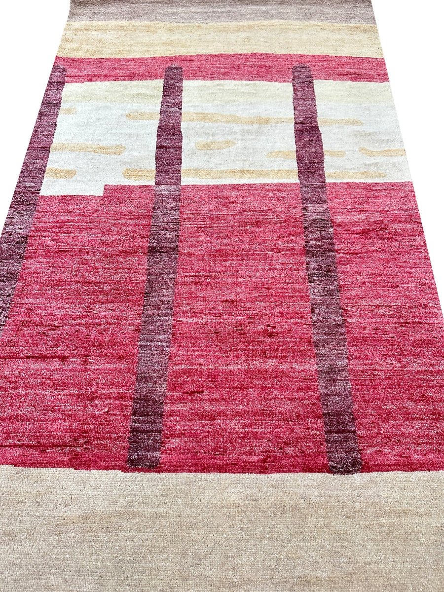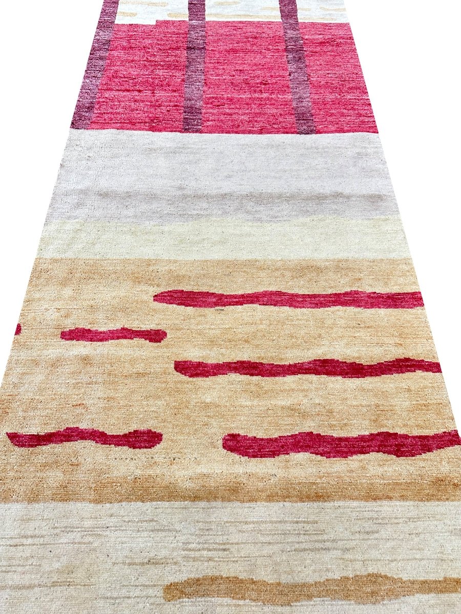 Add a touch of casual style to your home with this handmade 3x11 Modern Tribal Runner Rug, crafted in Pakistan. This gorgeous rug features a captivating geometric pattern, showcasing a simple yet effective design in red, burgundy, beige, brown, gold, and yellow colors. Its durable wool construction ensures longevity and easy care. Ideal for hallways, next to beds, and kitchen runners. The clean finish reflects quality craftsmanship and design. This piece effortlessly brightens, adding warmth, texture, and a relaxed feel. A blend of simple design and function, it easily enhances any space. Enjoy the benefit of free shipping across the United States. Each rug offers a distinct look, with subtle variations inherent to its creation.