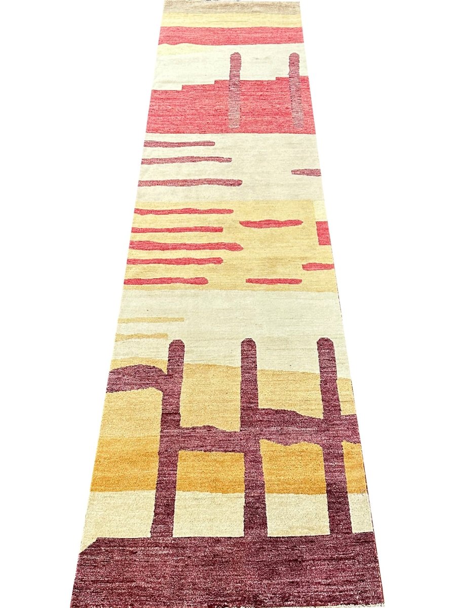 Add a touch of casual style to your home with this 3x11 Modern Tribal Runner Rug, crafted in Pakistan. This classic rug features a captivating geometric pattern, showcasing a simple yet effective design in yellow, gold, beige, brown, and red colors. Its durable wool construction ensures longevity and easy care, perfect for hallways, next to beds, and kitchen runners. The clean finish reflects quality craftsmanship and design. This piece effortlessly brightens, adding warmth, texture, and a relaxed feel. A blend of simple design and function, it easily enhances any space. Enjoy the benefit of free shipping across the United States. Each rug offers a distinct look, with subtle variations inherent to its creation.