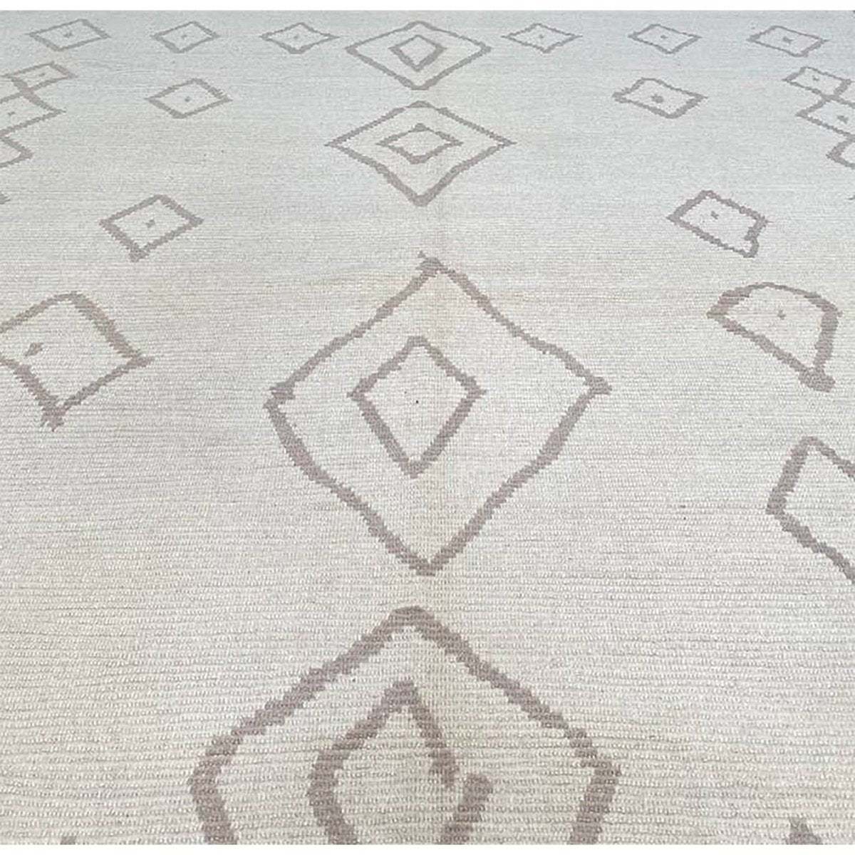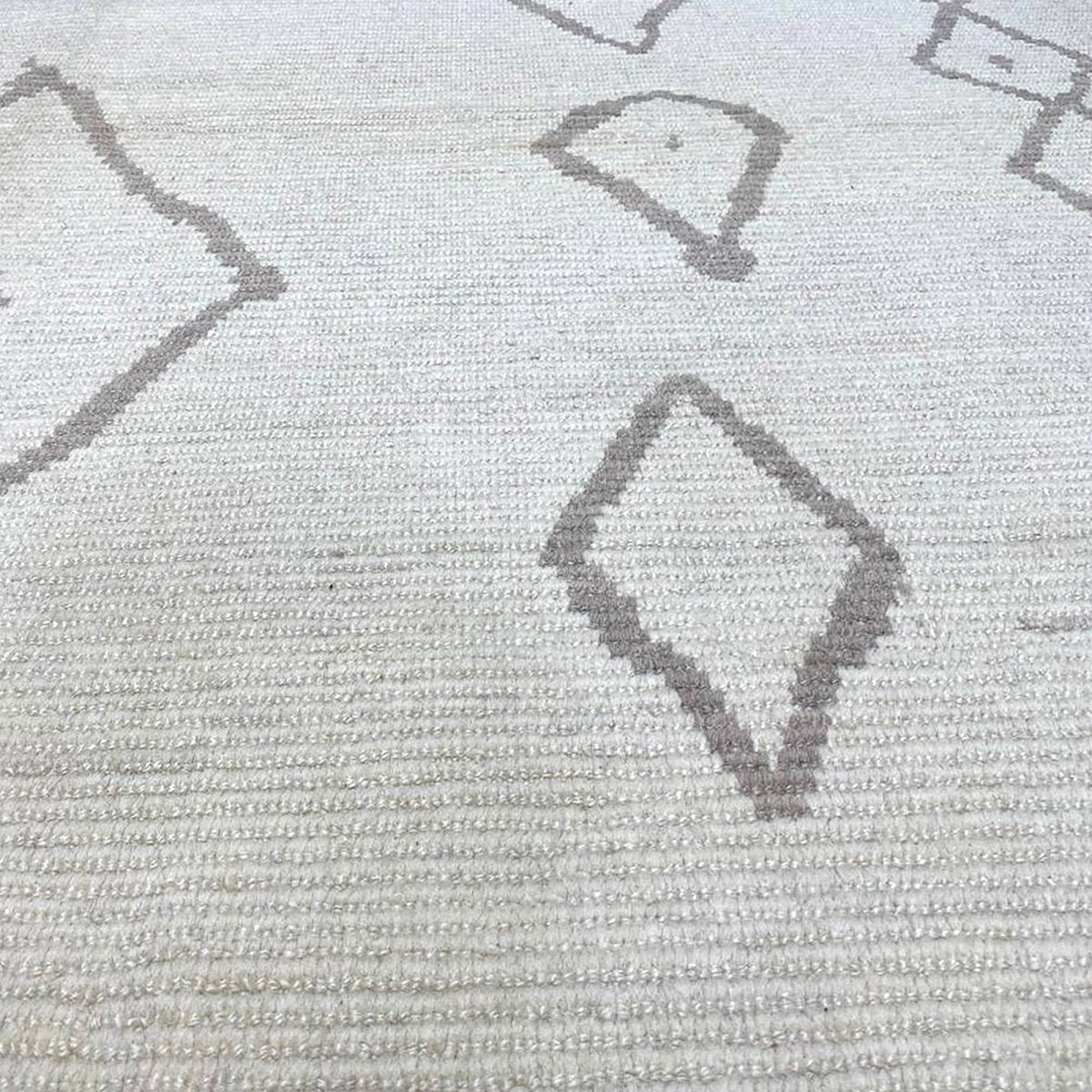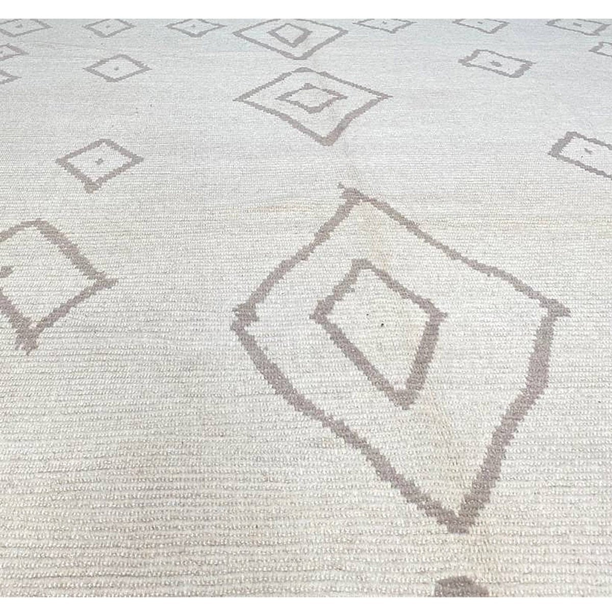 Add warmth and sophistication to your home with this stunning 8'6" x 10'6" Turkish Moroccan area rug. Handwoven with expert craftsmanship, it features a soft ivory background adorned with intricate diamond patterns, symbolizing harmony and balance. The subtle geometric design brings a touch of cultural heritage while maintaining a minimalist and elegant aesthetic.