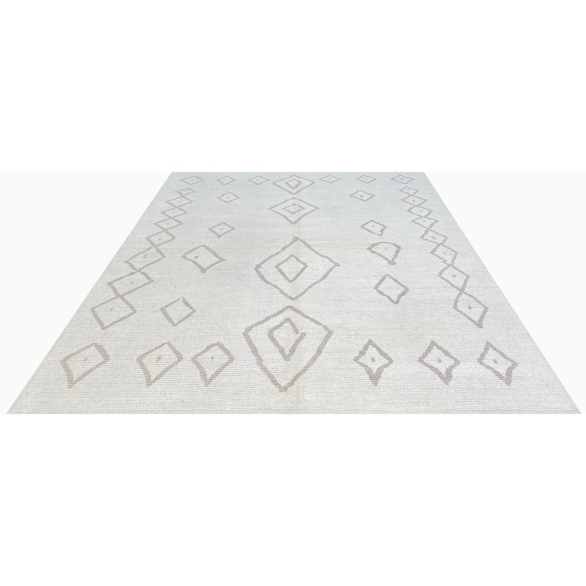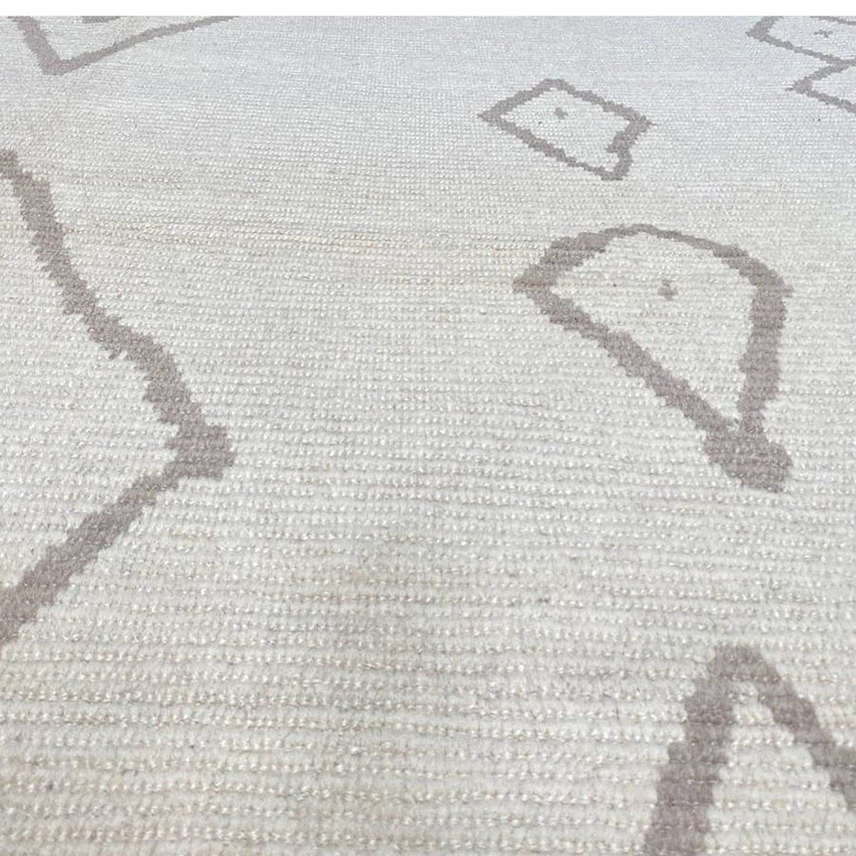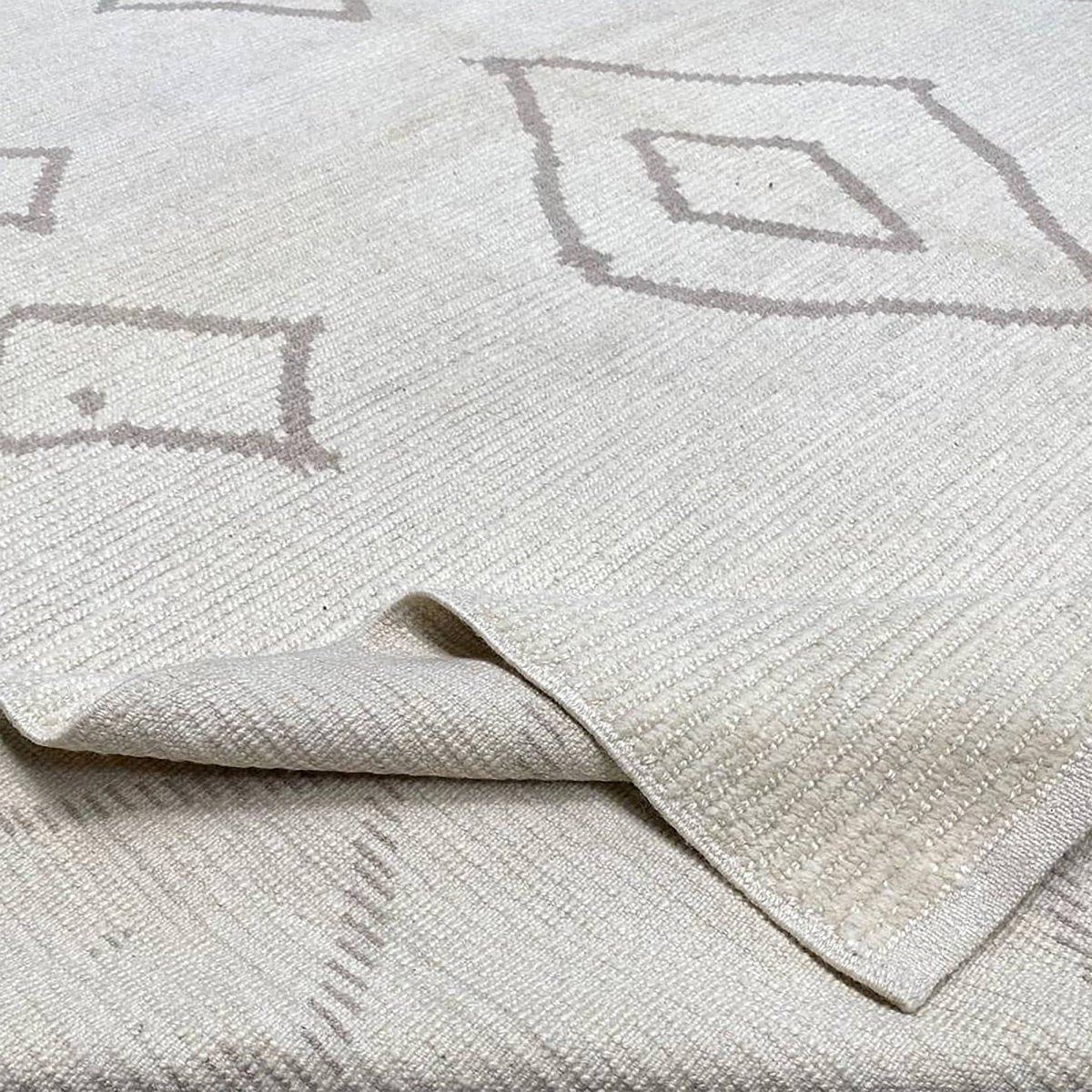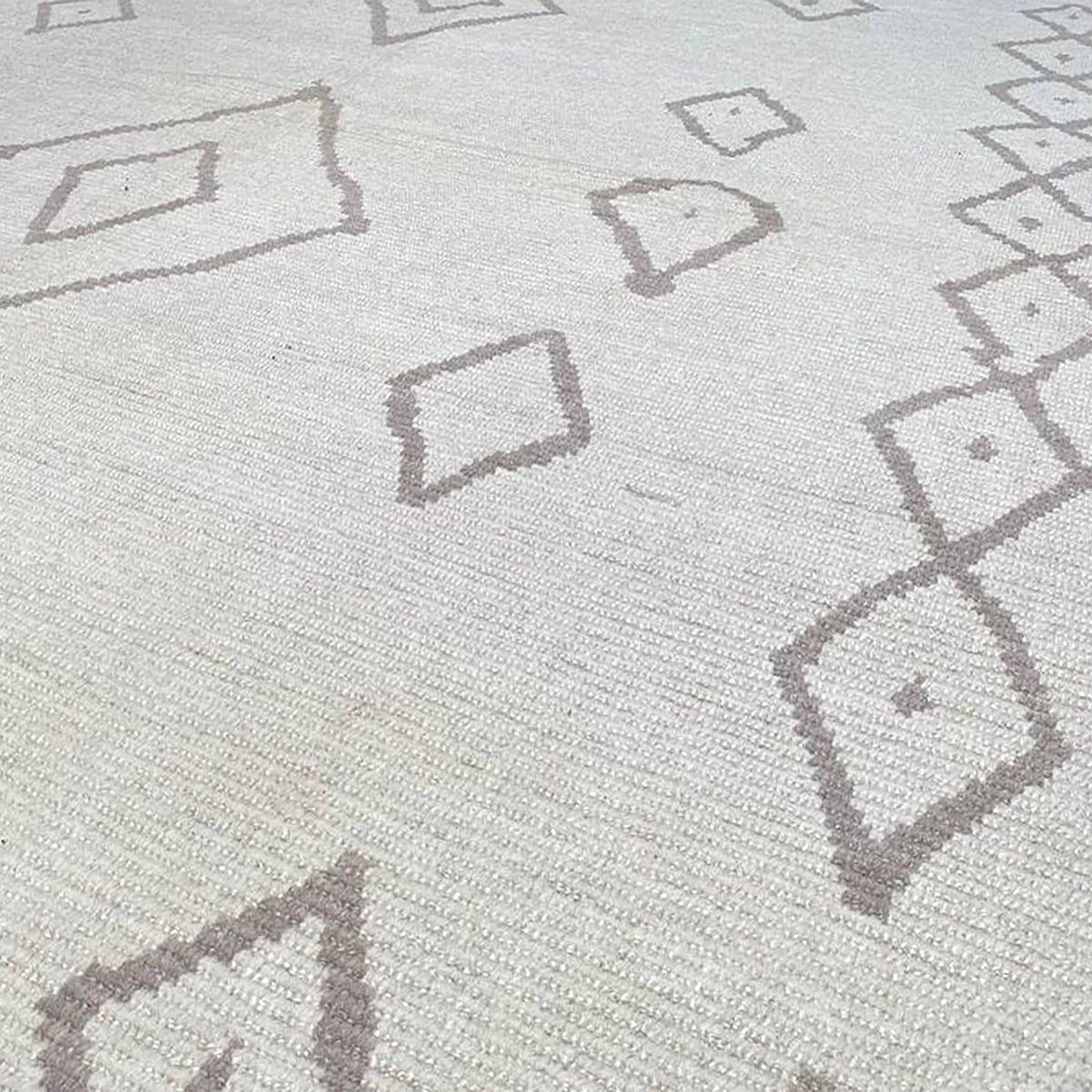 Add warmth and sophistication to your home with this stunning 8'6" x 10'6" Turkish Moroccan area rug. Handwoven with expert craftsmanship, it features a soft ivory background adorned with intricate diamond patterns, symbolizing harmony and balance. The subtle geometric design brings a touch of cultural heritage while maintaining a minimalist and elegant aesthetic.