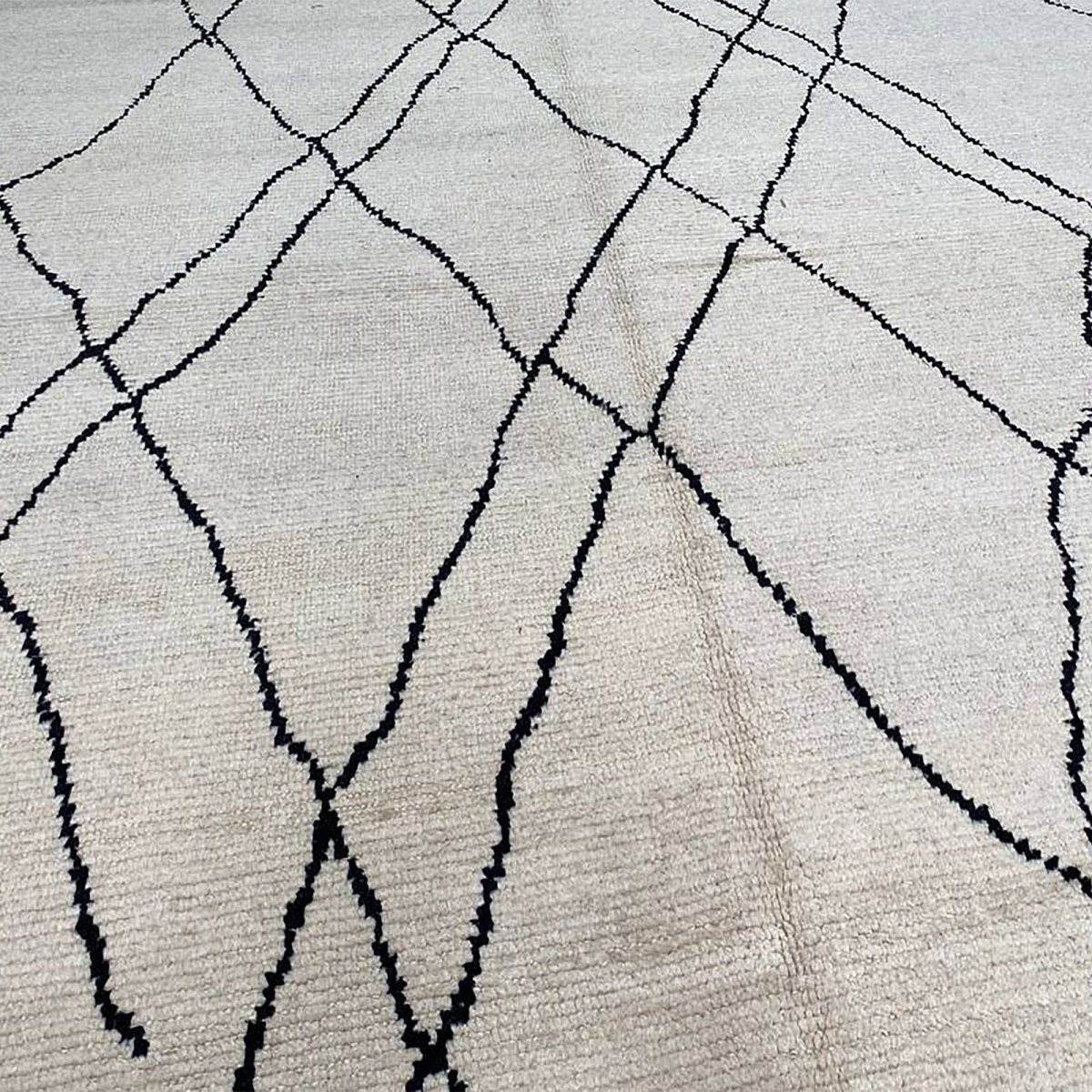 This exquisite 8x10 Turkish Moroccan Style area rug is a true work of craftsmanship, hand-woven in Turkey using premium-quality wool for a soft, inviting feel underfoot. Featuring a striking geometric pattern in timeless beige and black, it brings depth, texture, and a sense of rhythm to any space. The balanced design flows effortlessly across the rug, creating visual interest without overwhelming the room. Whether placed in a relaxed lounge or a polished living area, its understated elegance complements a variety of interior styles. Expertly woven by skilled artisans, this piece offers exceptional durability and comfort, making it a lasting centerpiece that enriches your home with warmth, character, and handcrafted charm.