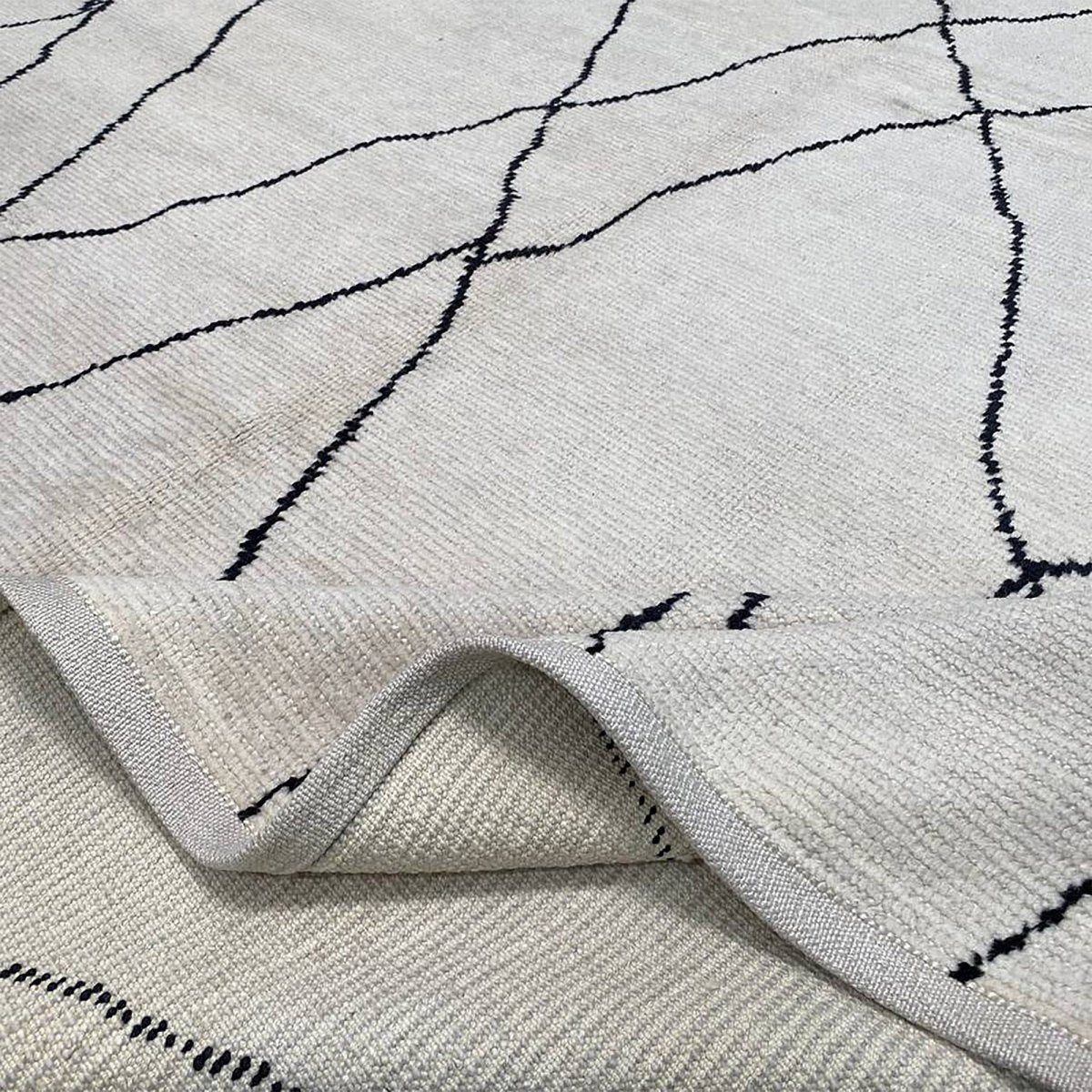 Elevate your space with this beautifully crafted Moroccan-inspired area rug showcasing a geometric pattern in timeless black and ivory tones. Woven with precision in Turkey, this piece combines artistic design with exceptional durability, making it a perfect fit for interiors.