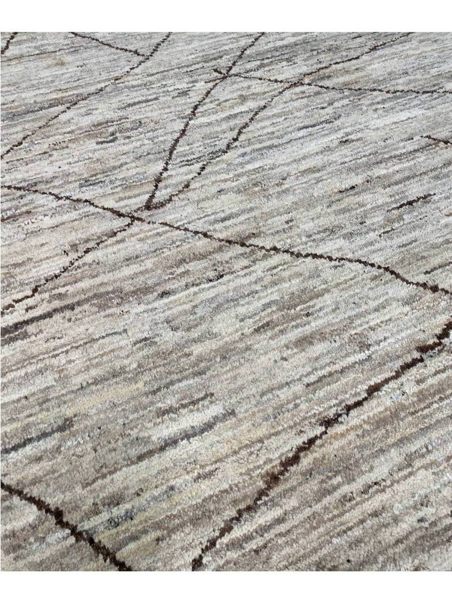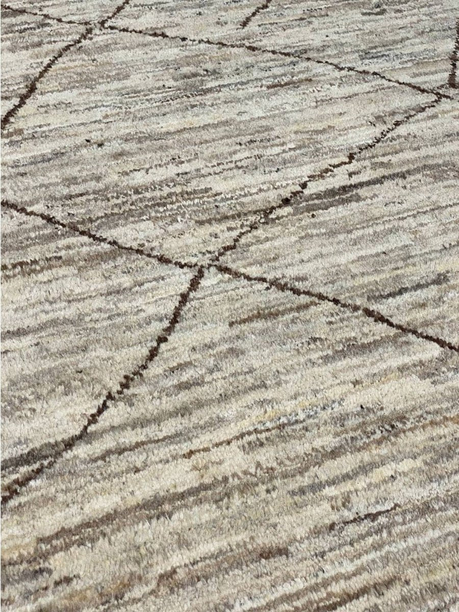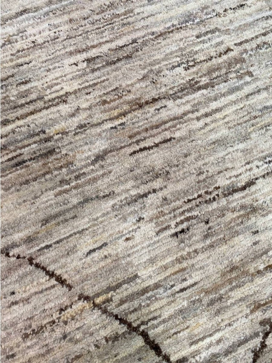 Make a statement in your home with the 9x13 Moroccan Style Area Rug. Hand-knotted in Pakistan from 100% wool, this rug boasts a soft, plush texture and exceptional durability. Its unique design features a striped pattern that adds a touch of Moroccan charm to any room. The warm brown and beige color brings a sense of comfort and coziness, complementing a variety of decor styles. With its exceptional craftsmanship and high-quality materials, this Moroccan area rug brings both sophistication and comfort to your home. Whether placed in a living room, bedroom, or dining room, this rug is sure to be a stunning focal point.
