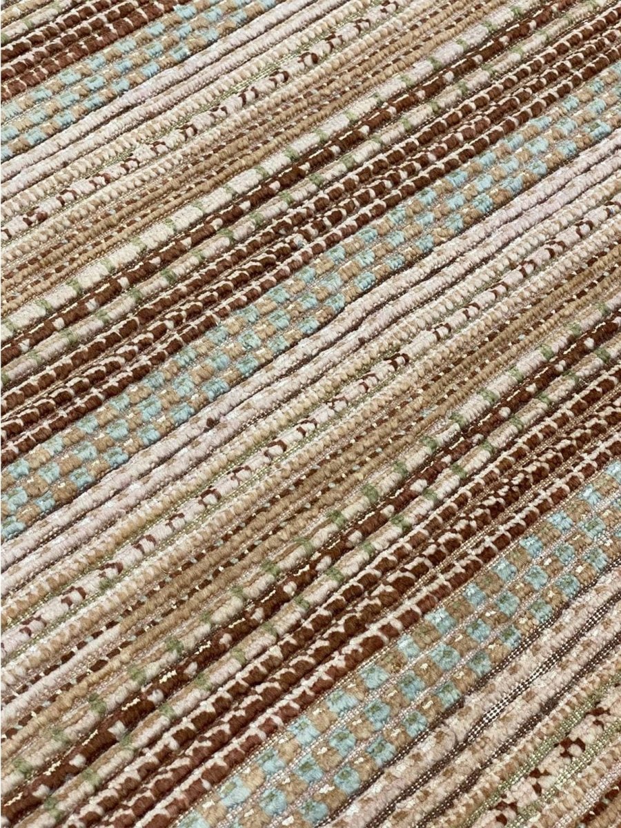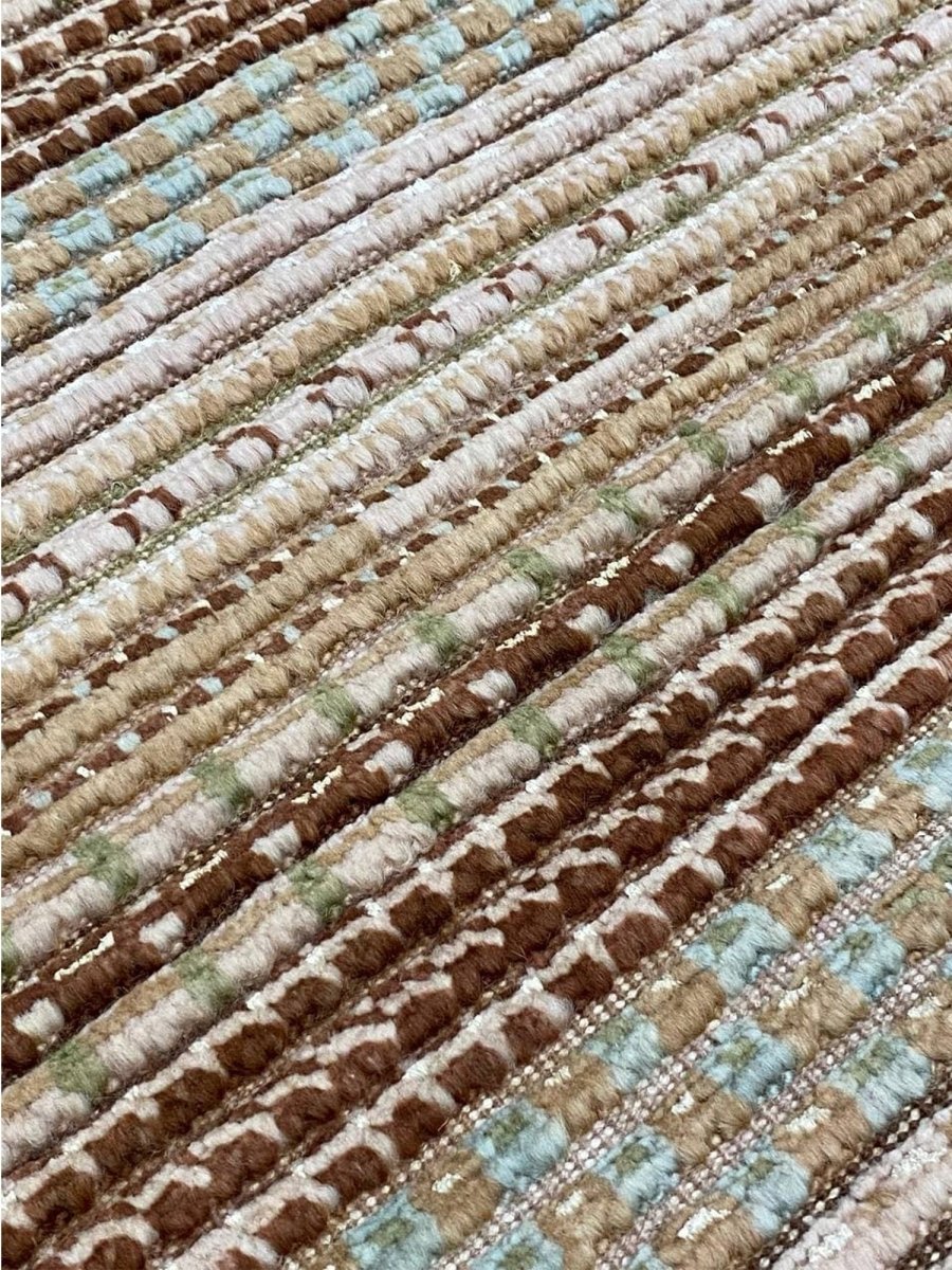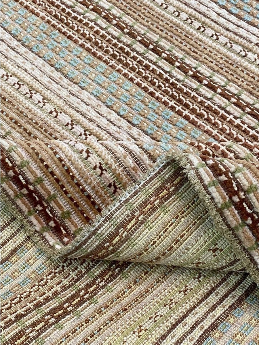 Add a touch of Moroccan flair to your home with the 9x12 Moroccan area rug. Hand-knotted in Pakistan from 100% wool, this rug boasts a soft, plush texture and exceptional durability. Its unique design features multiple layers, lines, and shades of brown and beige, creating a dimensional, textured look with a striped pattern that adds depth and visual interest to any room. The varying shades of brown complement a range of decor styles. Perfect for living rooms, bedrooms, or dining rooms, this rug seamlessly blends with various decor styles. With its exceptional craftsmanship and high-quality materials, this Moroccan area rug brings sophistication and comfort to your home.