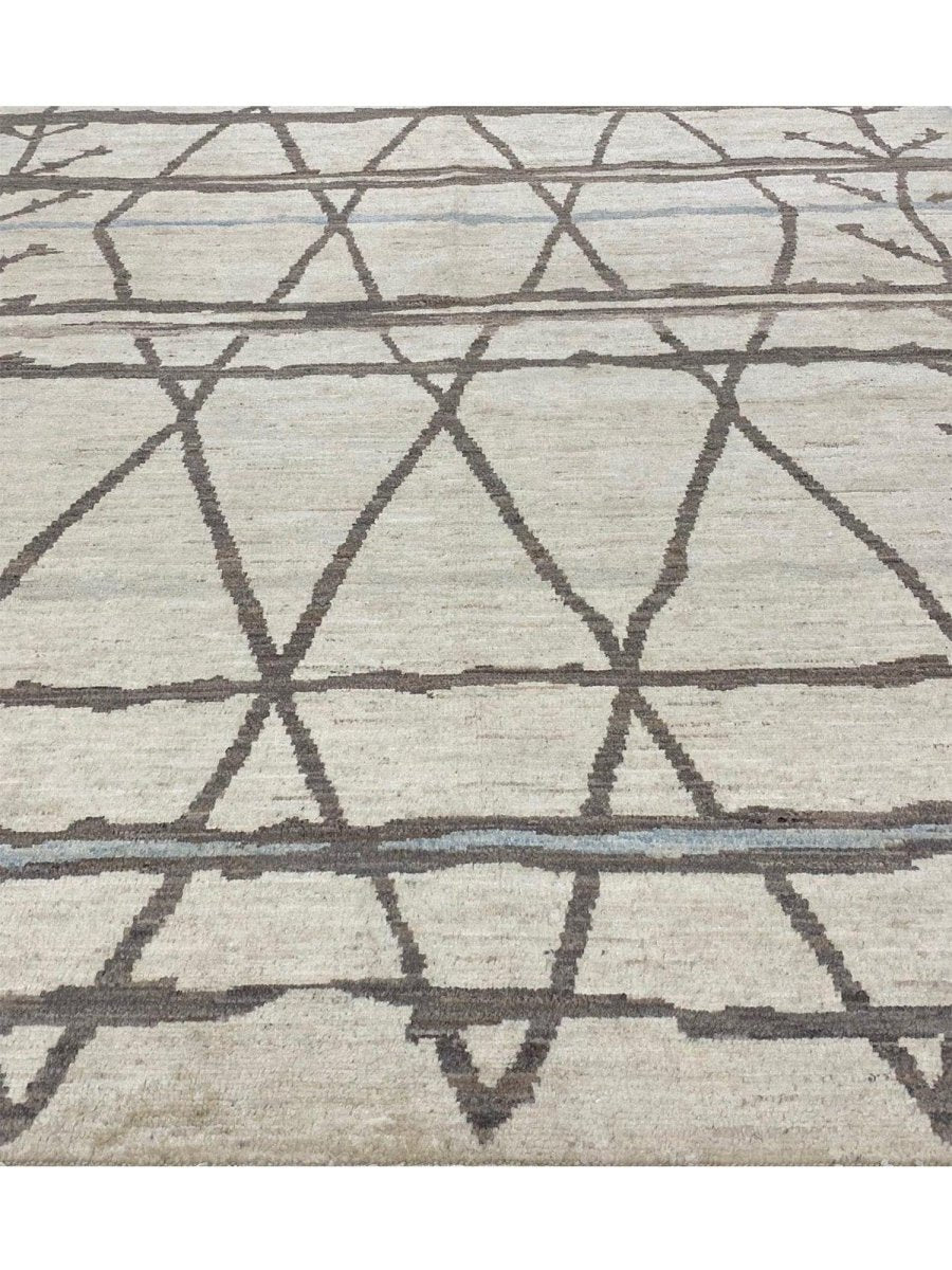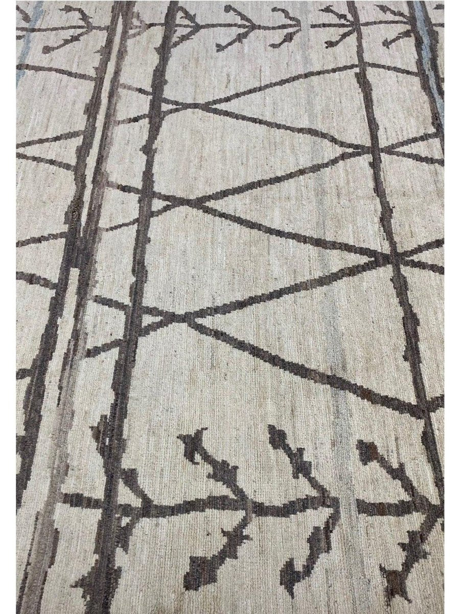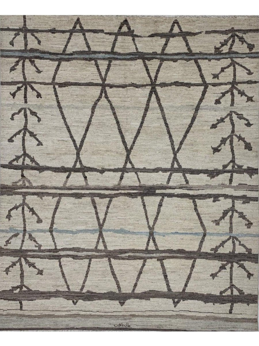 Add a touch of timeless elegance to your space with this 8x10 Moroccan Style Area Rug. Handmade in India, this rug features an intricate striped pattern with nature-inspired motifs, offering a perfect blend of design elements. The earthy beige and brown tones create a warm and inviting ambiance, making it a versatile piece for any room.