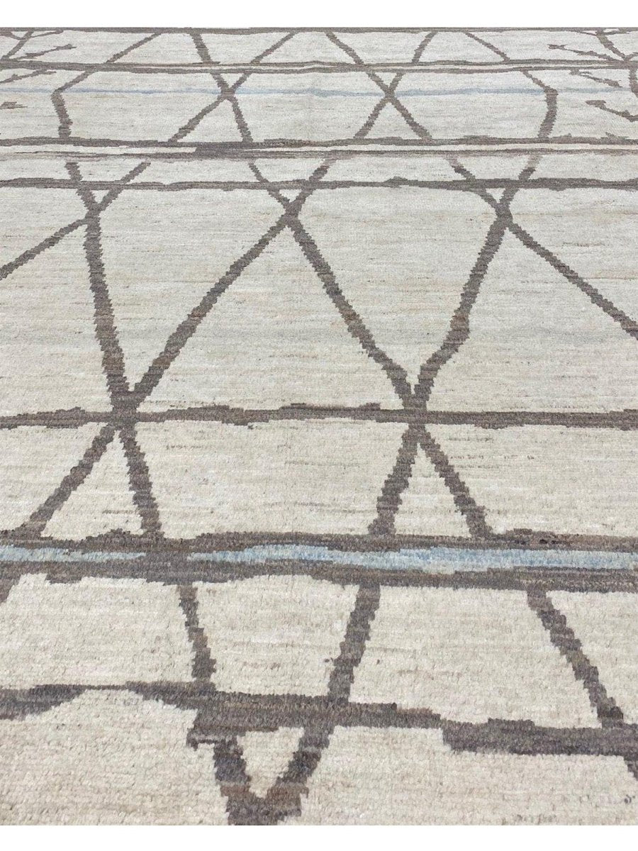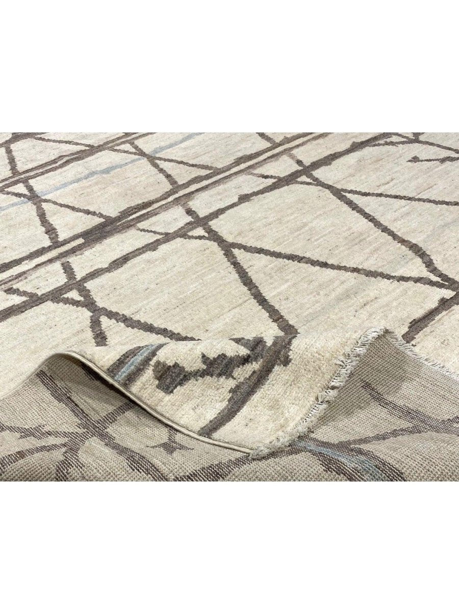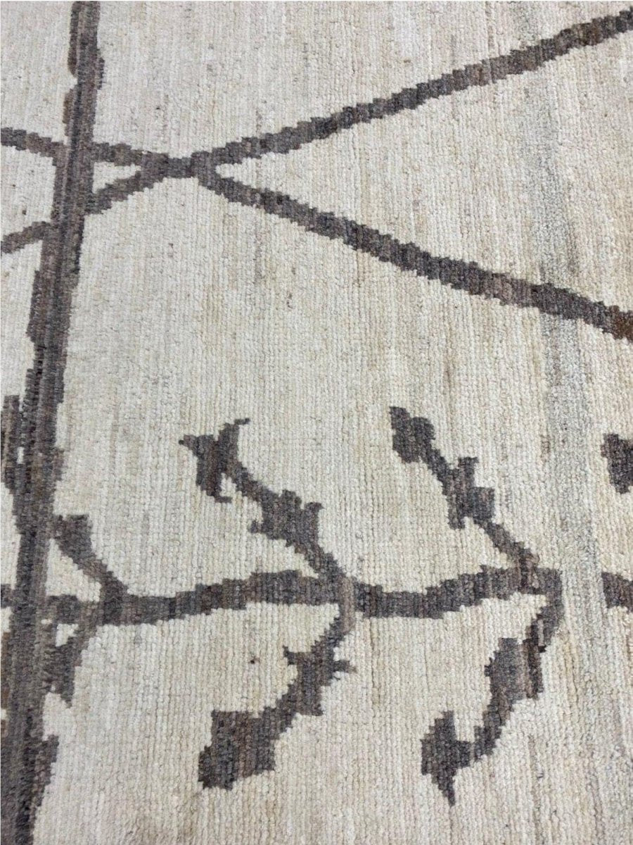 Add a touch of timeless elegance to your space with this 8x10 Moroccan Style Area Rug. Handmade in India, this rug features an intricate striped pattern with nature-inspired motifs, offering a perfect blend of design elements. The earthy beige and brown tones create a warm and inviting ambiance, making it a versatile piece for any room.