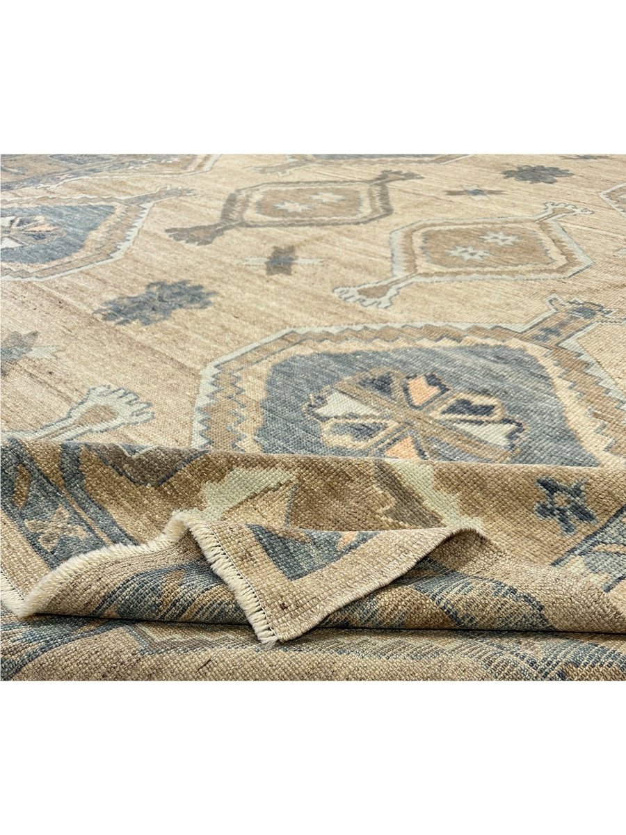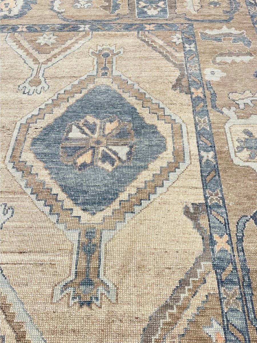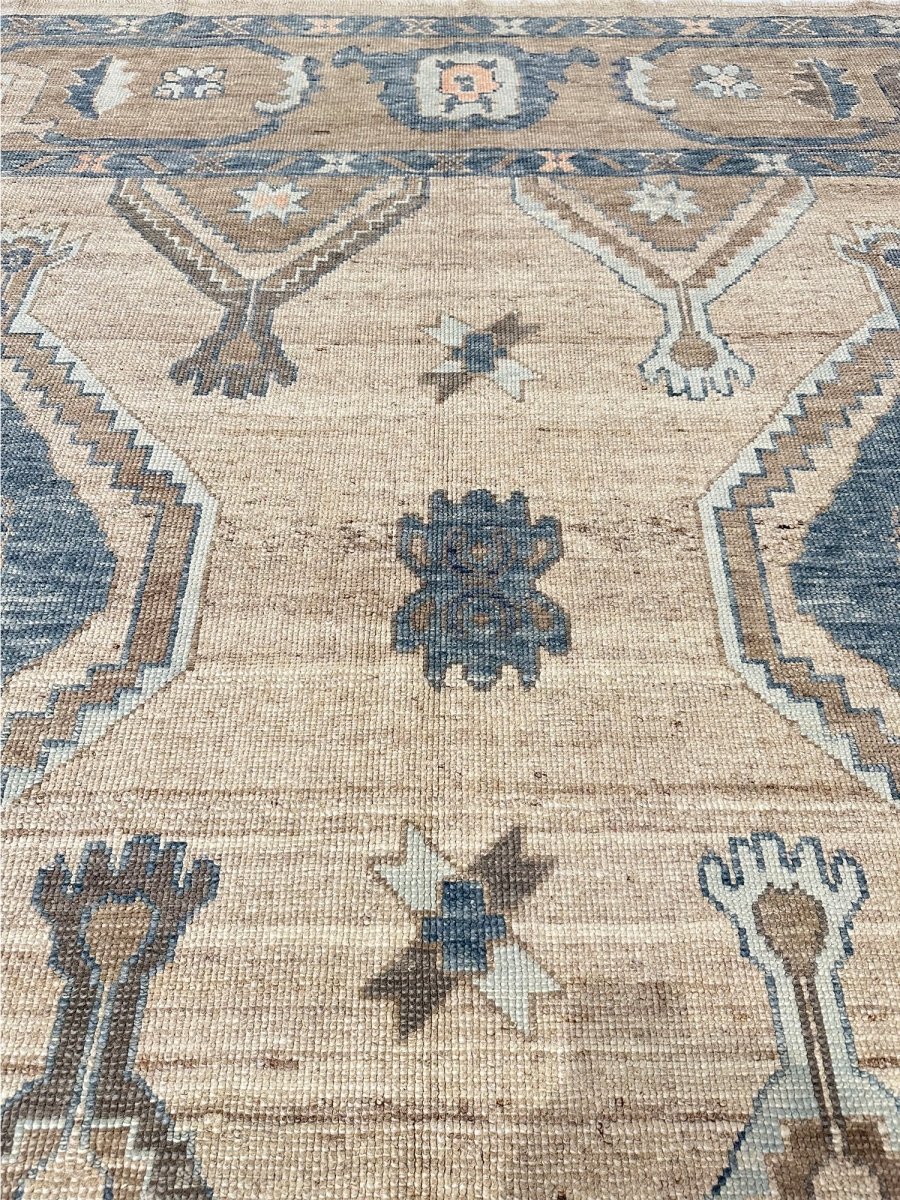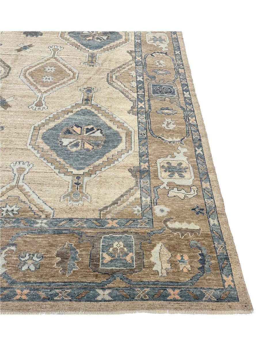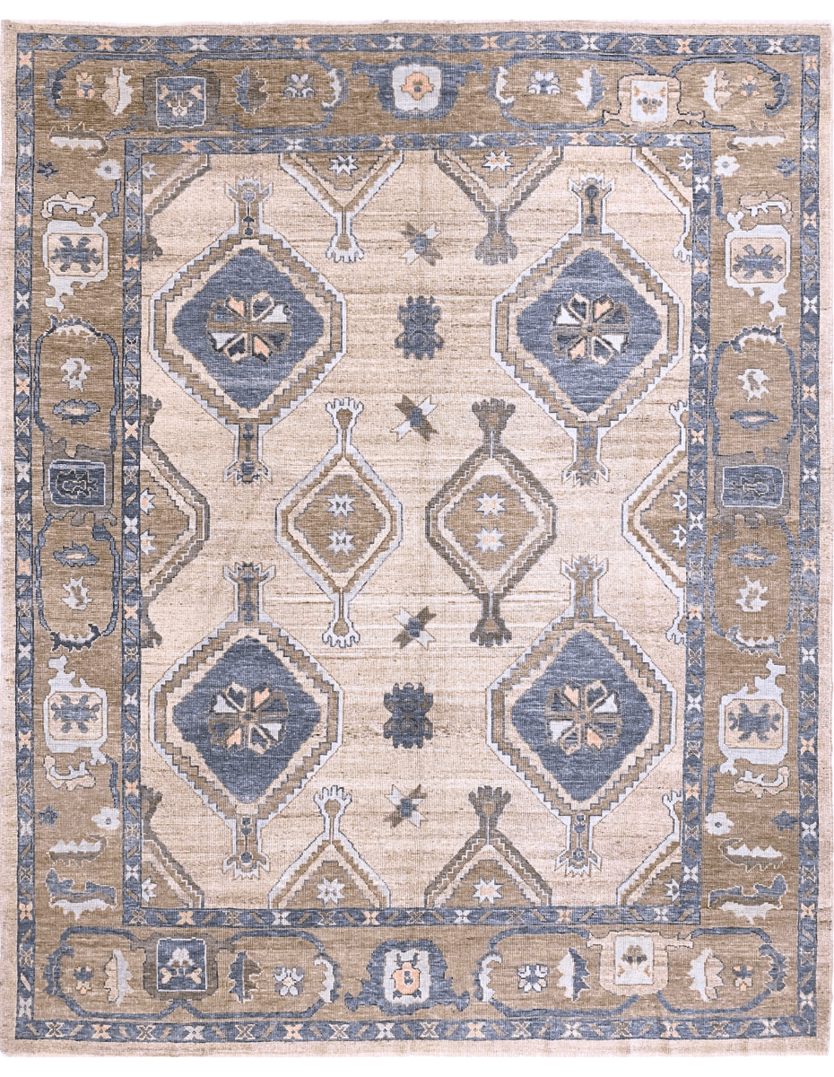 The muted colors of soft creams, dusty blues, and earthy browns make this rug a valuable addition to any contemporary or traditional interiors. Hand-knotted using premium wool, this piece is surely a hallmark of authentic Oushak craftsmanship. Enjoy our free shipping services in the US.