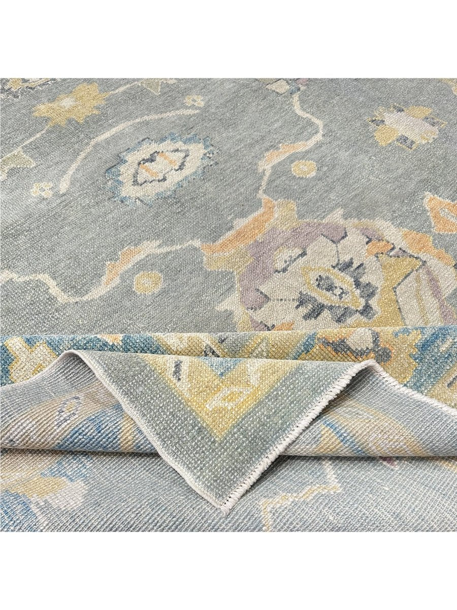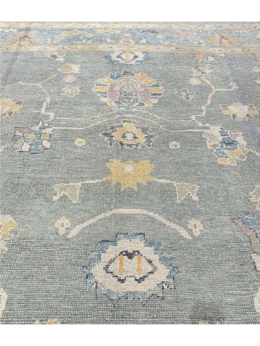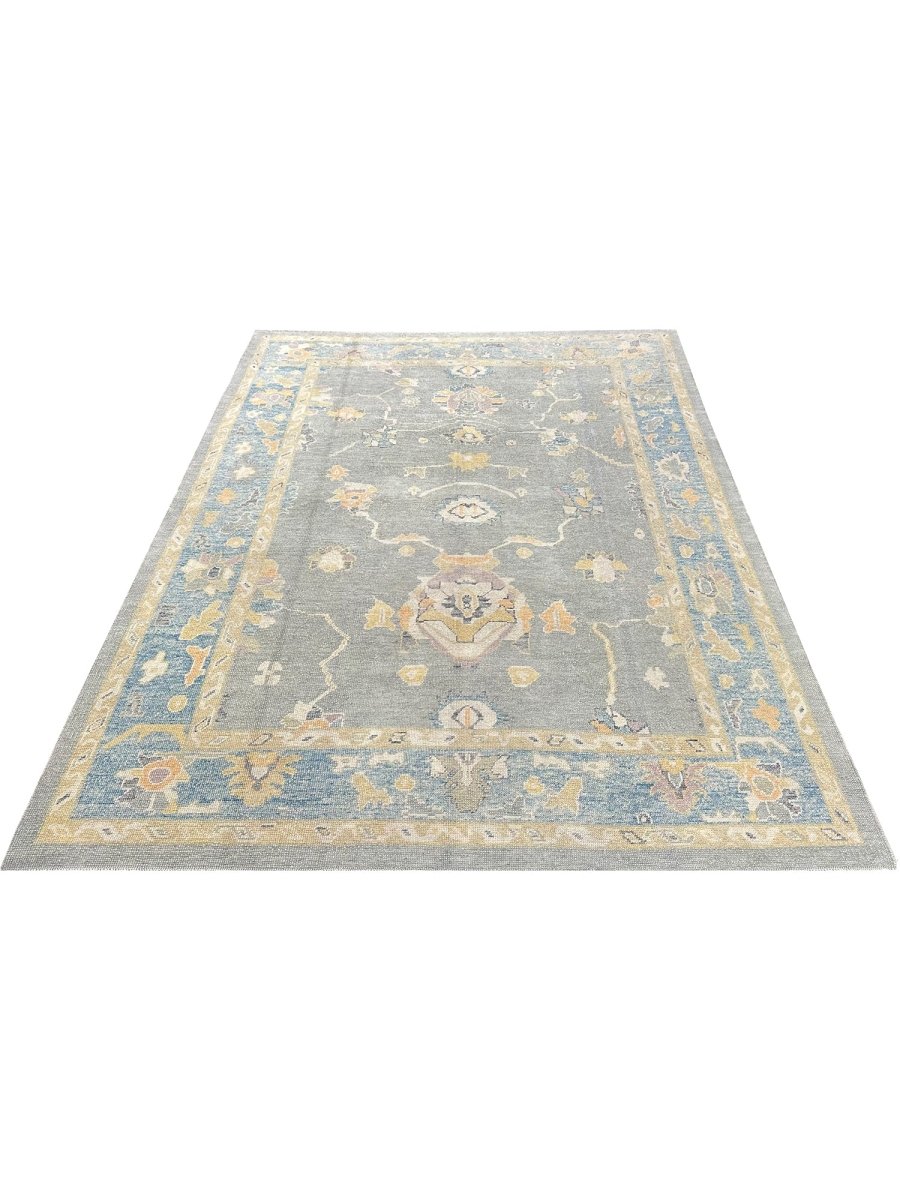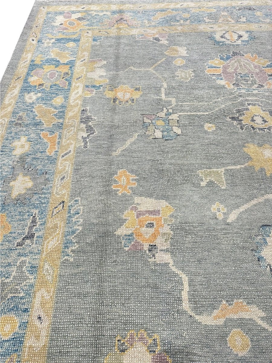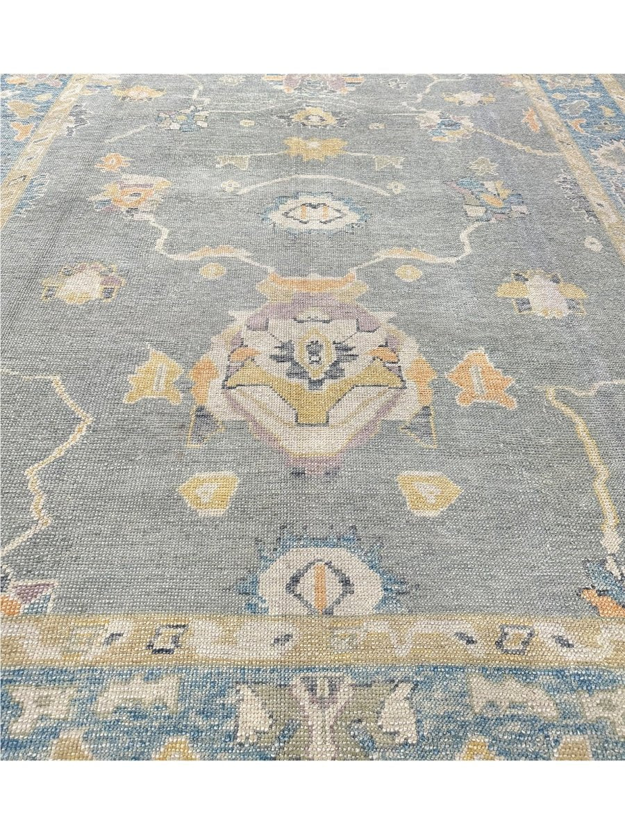 Discover the allure of this 8x10 Turkish Oushak Area Rug, a unique accent that adds classic style to your house. This gorgeous rug is hand-knotted from premium wool and features a geometric design that gives personality to any room. It creates a cozy and welcoming ambiance. It is ideal for spaces such as a living room grouping, under a queen/king bed. It's an amazing combination of beige, blue, gray, and gold tones that makes it a great option for a variety of styles. This outstanding sculpture acts as a stunning piece of art and also enhances your decor. Take advantage of free US delivery.