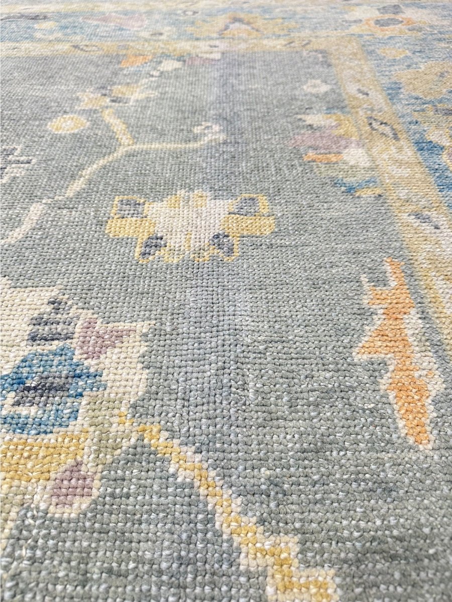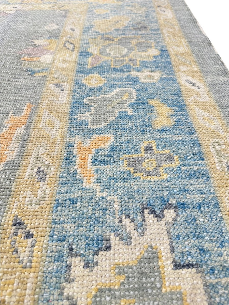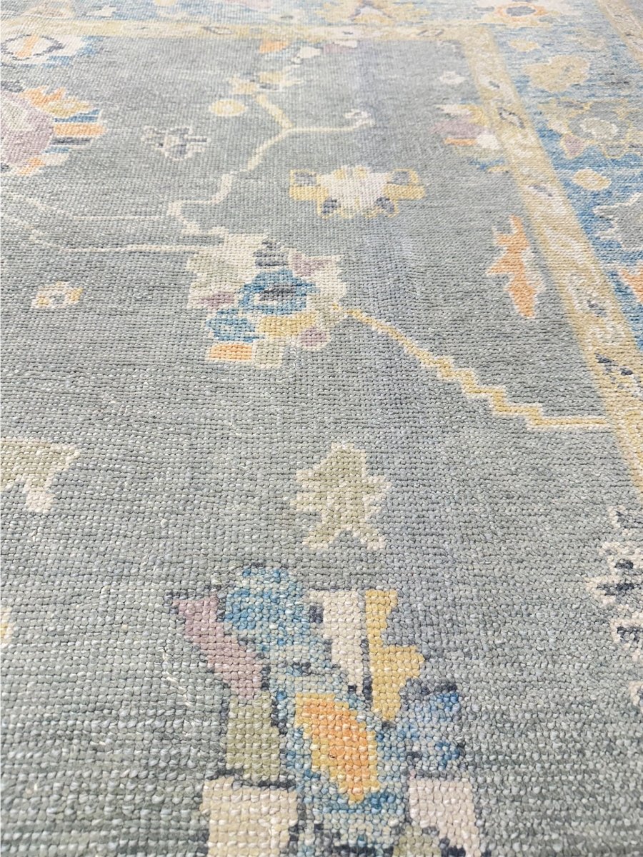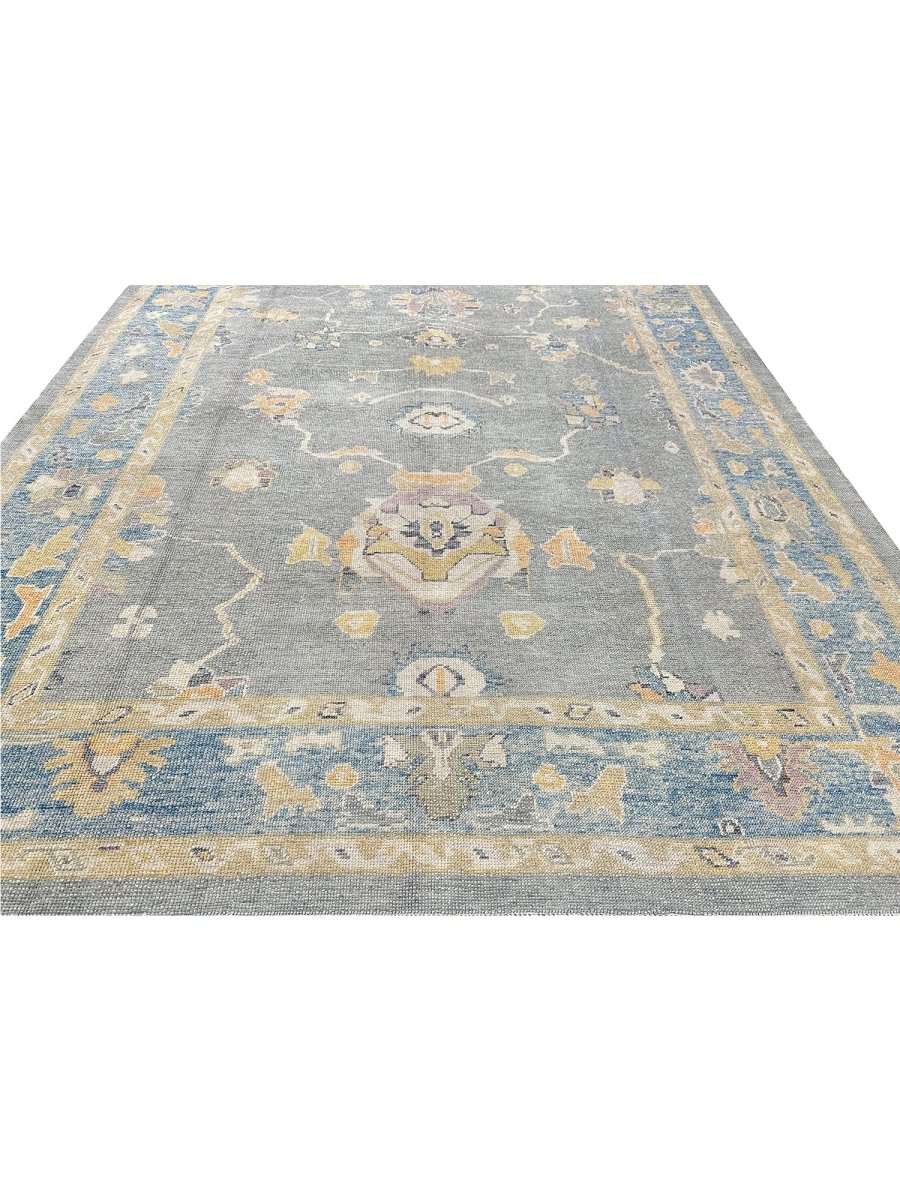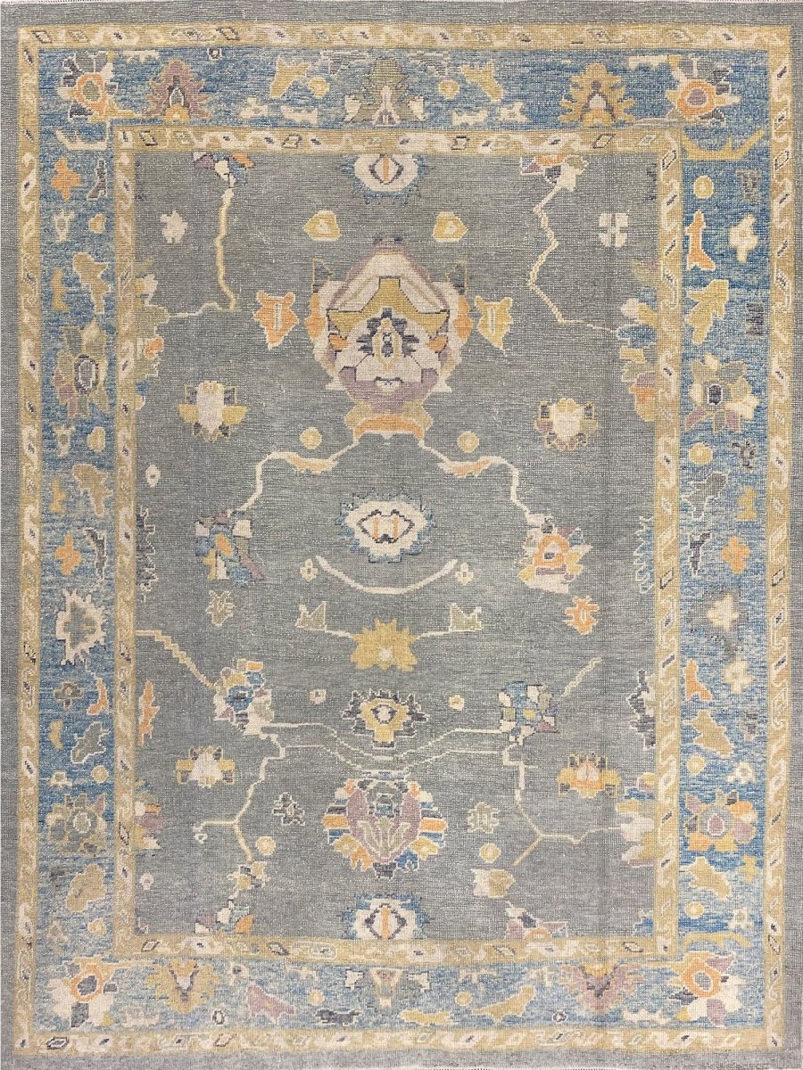 Discover the allure of this 8x10 Turkish Oushak Area Rug, a unique accent that adds classic style to your house. This gorgeous rug is hand-knotted from premium wool and features a geometric design that gives personality to any room. It creates a cozy and welcoming ambiance. It is ideal for spaces such as a living room grouping, under a queen/king bed. It's an amazing combination of beige, blue, gray, and gold tones that makes it a great option for a variety of styles. This outstanding sculpture acts as a stunning piece of art and also enhances your decor. Take advantage of free US delivery.