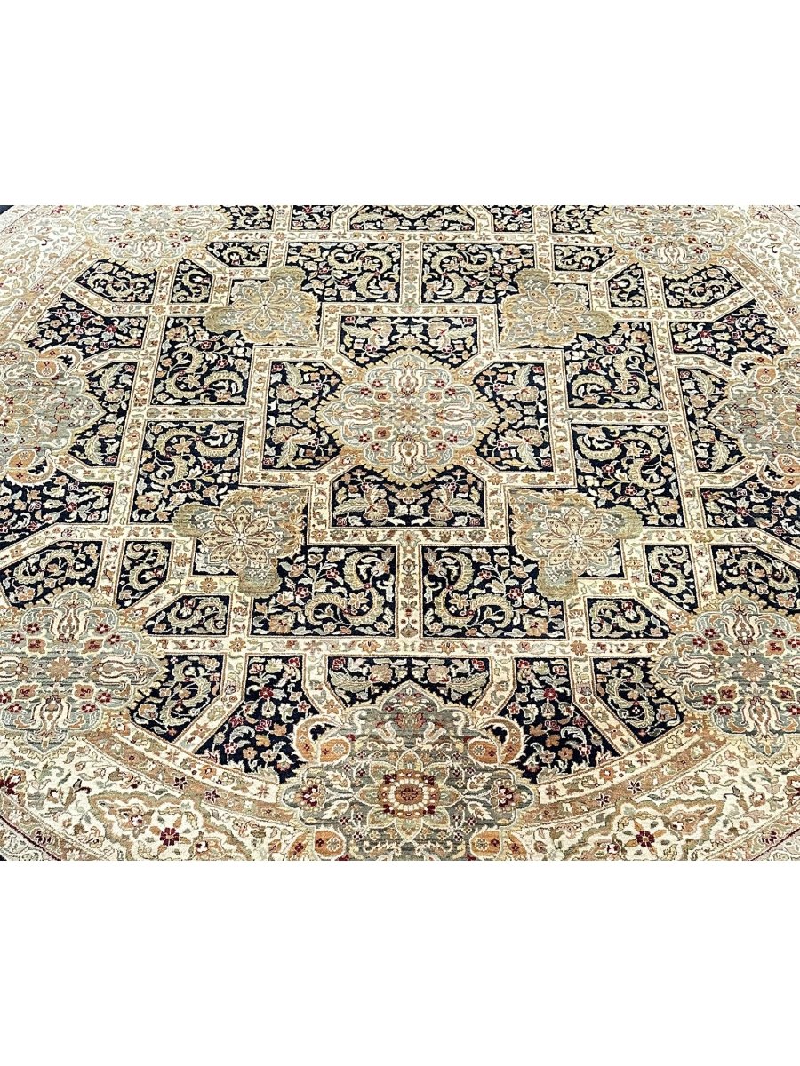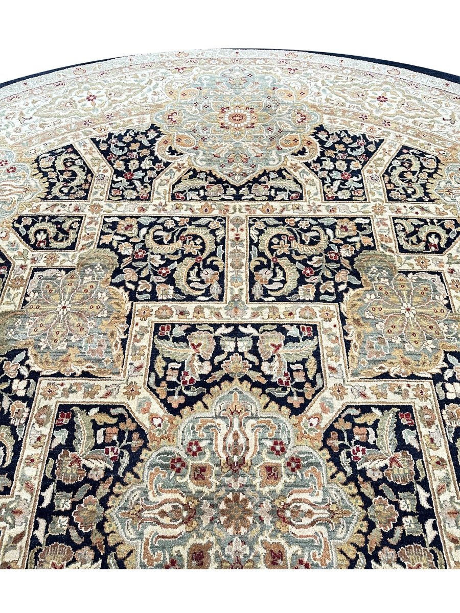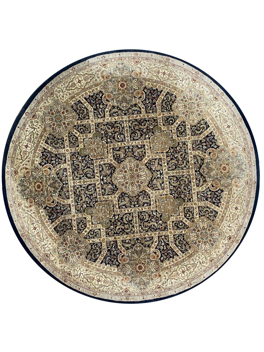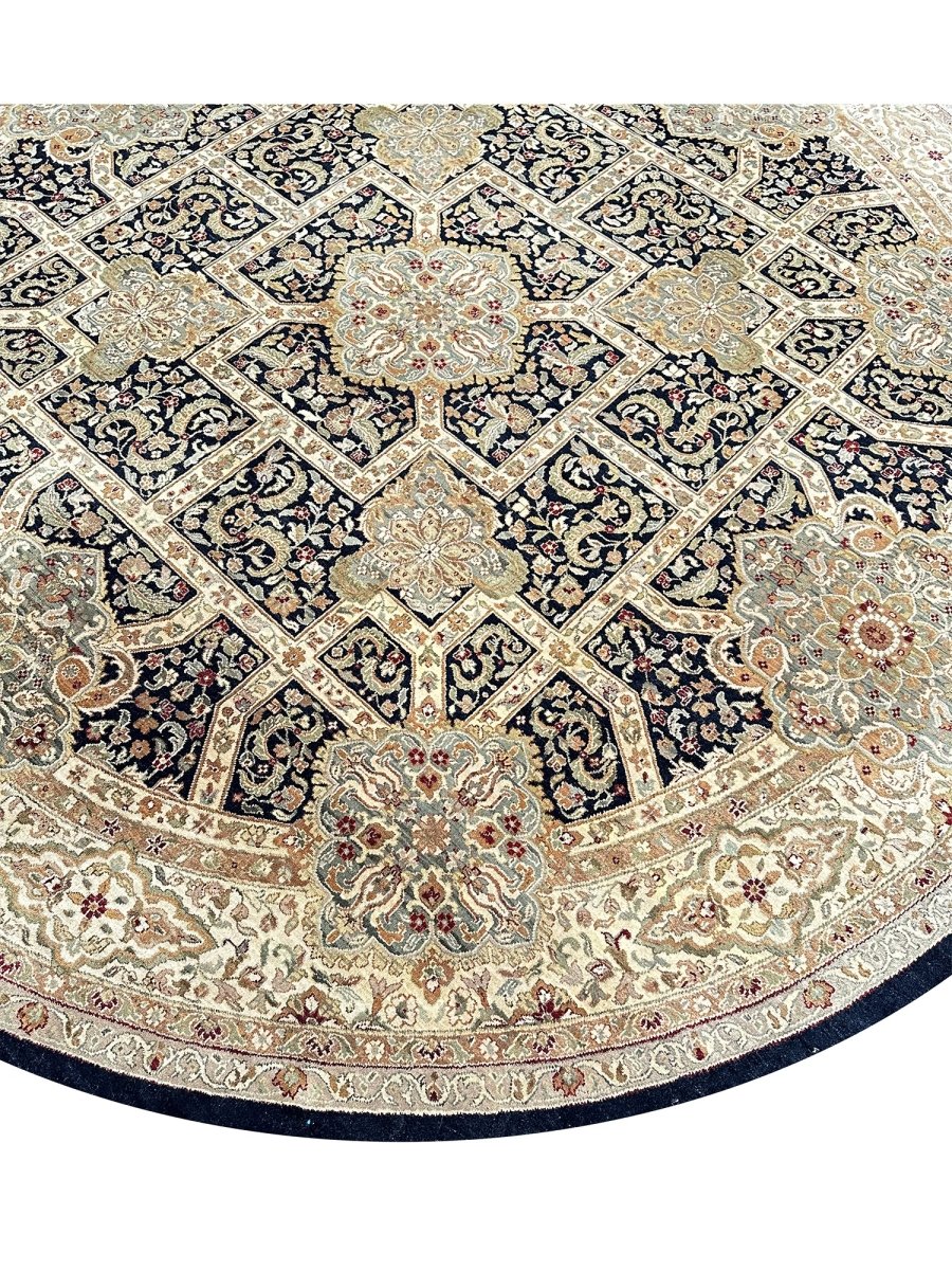 Upgrade your home with the 10' Round Persian Design Area Rug, a unique treasure that adds a touch of classic elegance to any space. Handmade from high-quality wool, this stunning traditional rug features a floral design that enhances your decor. It creates a friendly atmosphere the luxurious colors of black, beige, brown, and green make it a wonderful addition to your home. This amazing rug not only serves a functional purpose but also acts as an eye-catching centerpiece in your room. Enjoy free shipping in the US.