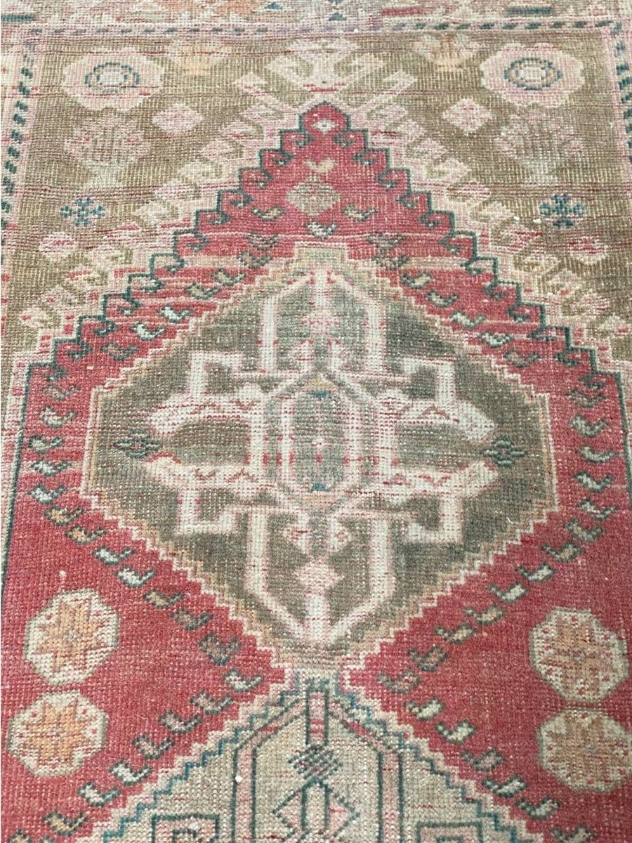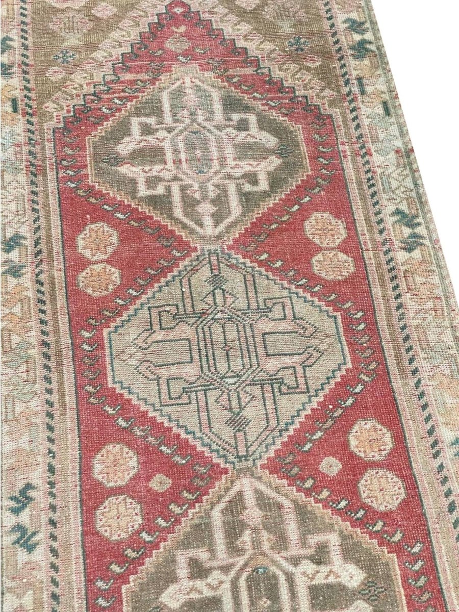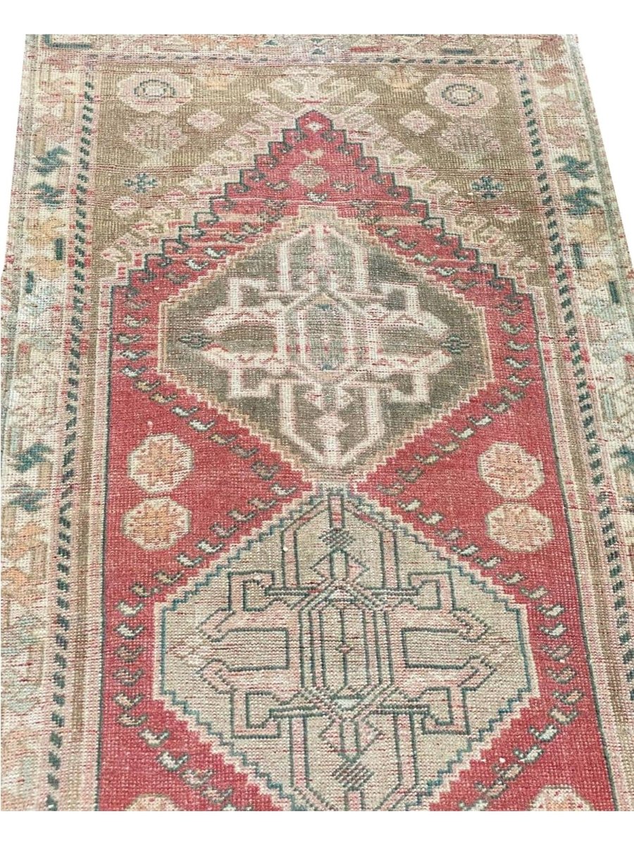 Enhance your home with the timeless charm of this 2x6 Old Persian Shiraz Runner Rug. This runner features a medallion pattern with intricate geometric motifs, reflecting the rich craftsmanship of Persia. The deep red background is complemented by natural tones of beige and hints of green, creating a warm and elegant aesthetic. A detailed border with ornate designs adds to its classic appeal. This rug is handmade in Persia with premium wool and offers durability and a luxurious texture. Perfect for narrow hallways, entryways, or alongside furniture, it brings a touch of authentic Persian heritage to your space. Shop this beautiful rug now and get a complimentary delivery to your doorstep.
