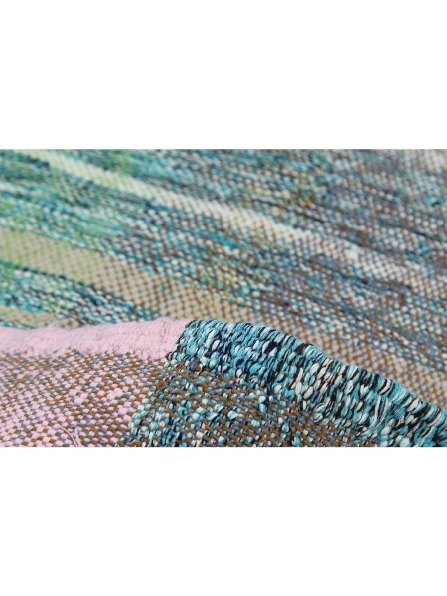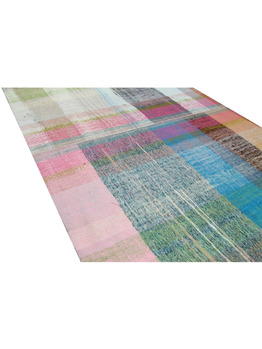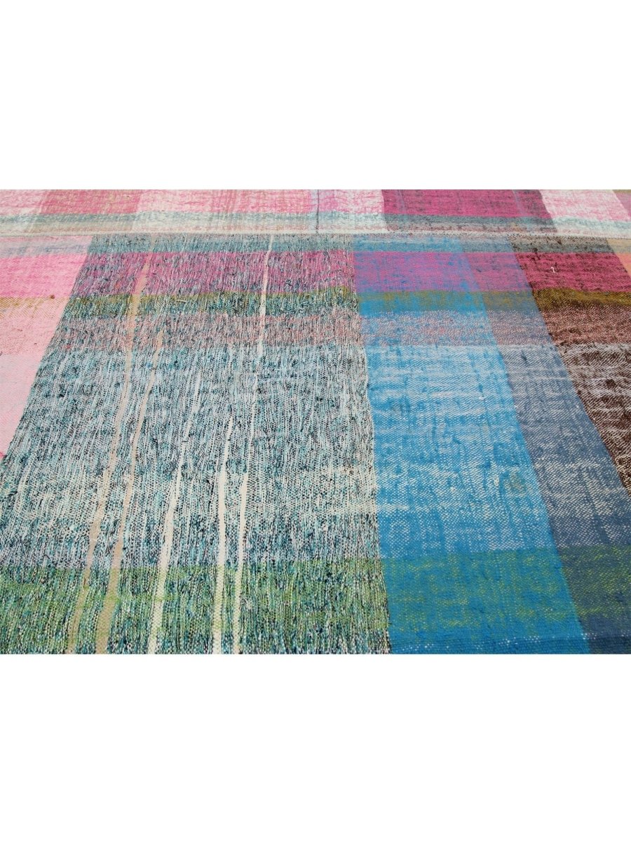 This charming 5x9 Persian Kilim area rug is a delightful addition to any room, boasting a stunning color palette that adds a touch of warmth and sophistication. Made from a high-quality cotton blend using a flat-weave construction, it features a beautiful combination of pink, peach, blue, green, black, ivory, and gray hues, perfectly balanced to create a sense of energy and vitality. The flat-weave design adds a touch of texture and visual interest to the rug's design, which is characterized by subtle motifs and nuanced color gradations. With its generous size of 5'2" x 8'6", this Persian Kilim area rug is perfect for adding a touch of elegance. Its exceptional quality and beautiful design make it a valuable addition to any home. Whether displayed in a formal setting or a cozy retreat, this Persian Kilim area rug is sure to impress.