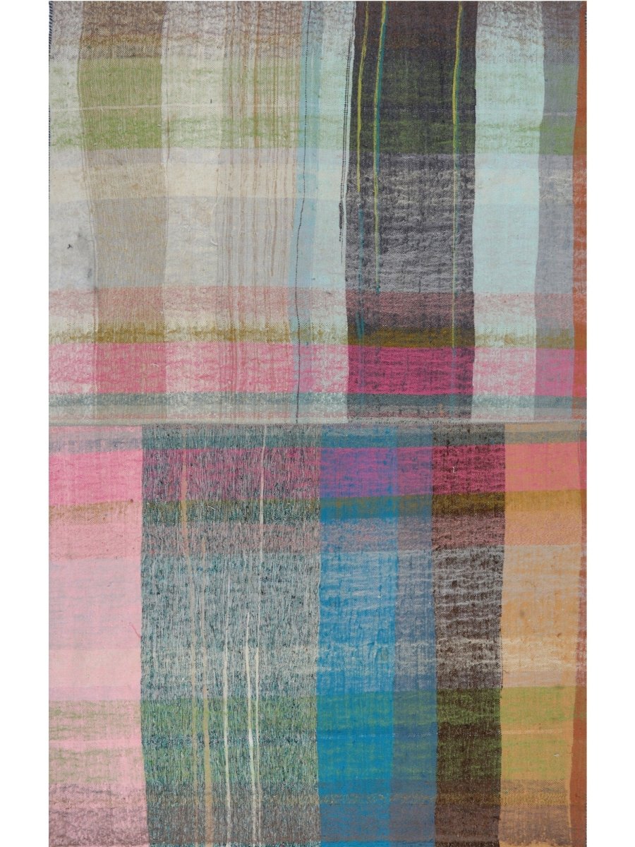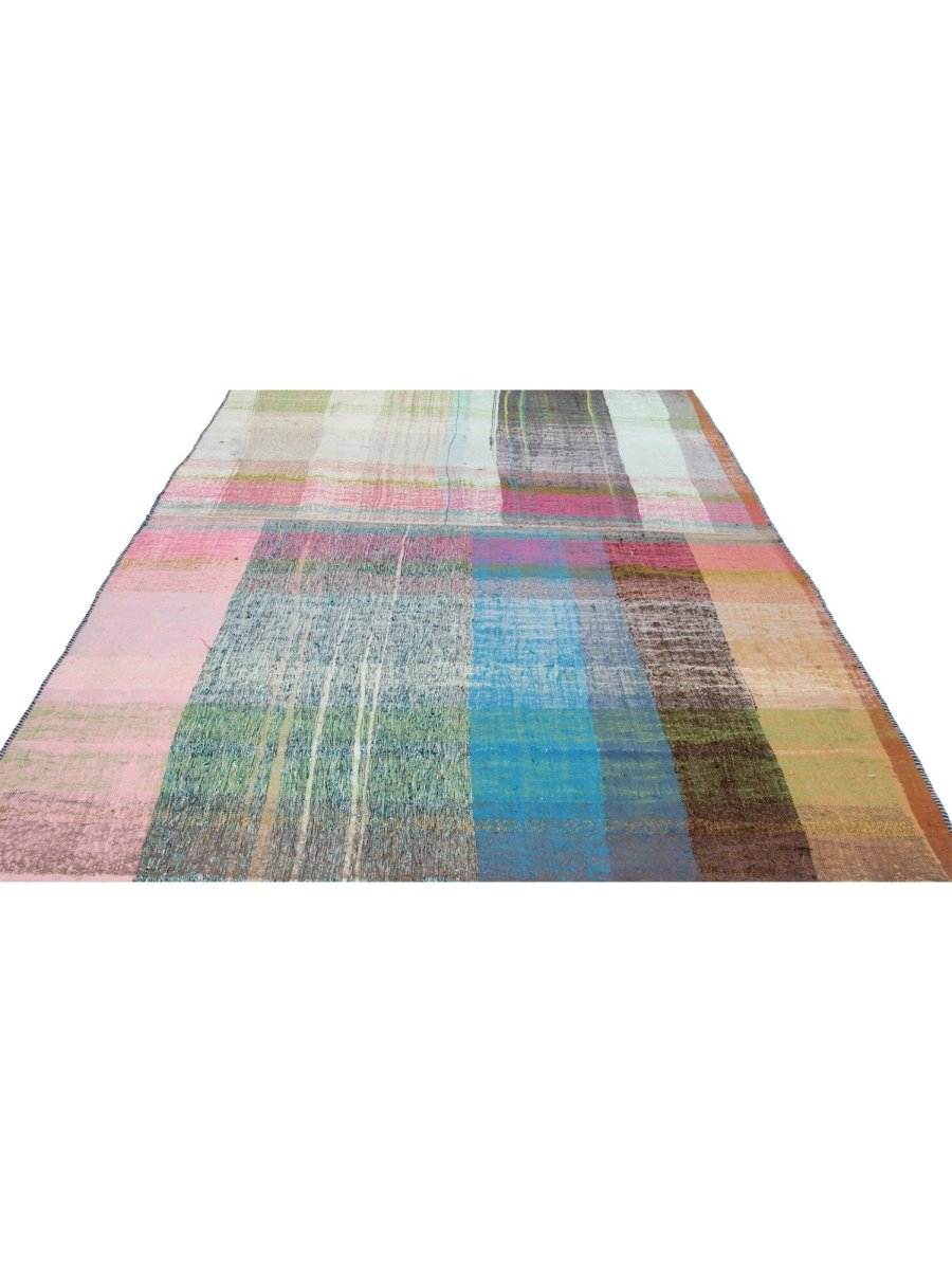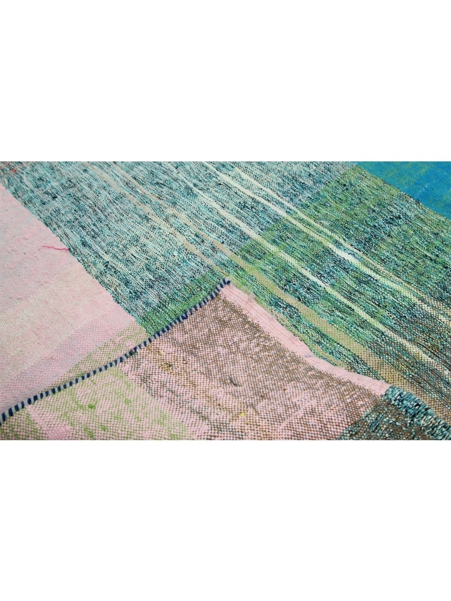 This charming 5x9 Persian Kilim area rug is a delightful addition to any room, boasting a stunning color palette that adds a touch of warmth and sophistication. Made from a high-quality cotton blend using a flat-weave construction, it features a beautiful combination of pink, peach, blue, green, black, ivory, and gray hues, perfectly balanced to create a sense of energy and vitality. The flat-weave design adds a touch of texture and visual interest to the rug's design, which is characterized by subtle motifs and nuanced color gradations. With its generous size of 5'2" x 8'6", this Persian Kilim area rug is perfect for adding a touch of elegance. Its exceptional quality and beautiful design make it a valuable addition to any home. Whether displayed in a formal setting or a cozy retreat, this Persian Kilim area rug is sure to impress.