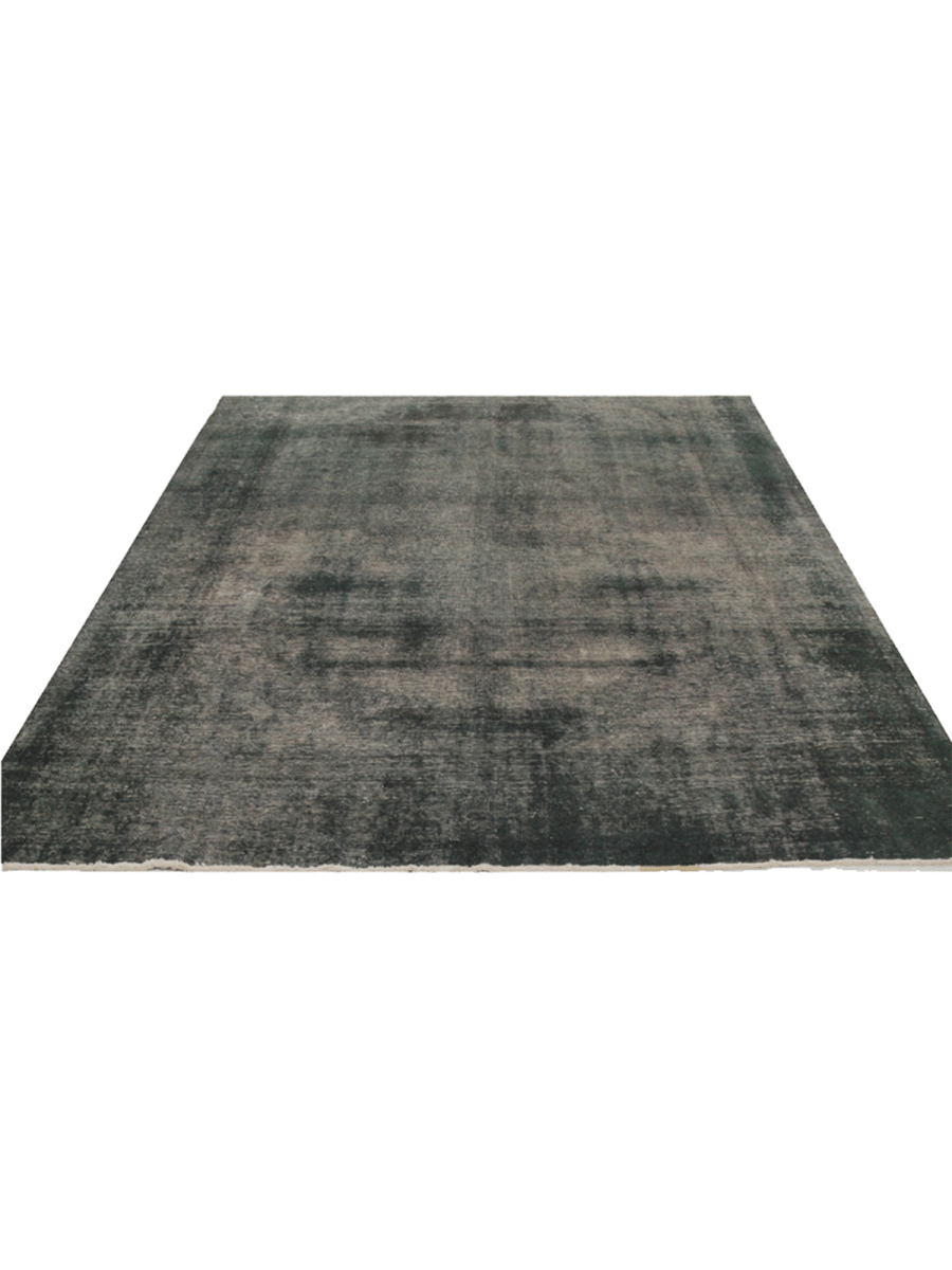 This 10x11 Vintage Distressed Overdyed Persian Area Rug is one of a kind and defined by its deep, earthy tones and atmospheric finish. Hand-knotted in Persia from wool, the rug showcases a geometric pattern that fades seamlessly across its surface. The overdyed brown and charcoal hues give it an understated richness, enhancing the worn elegance of its design.