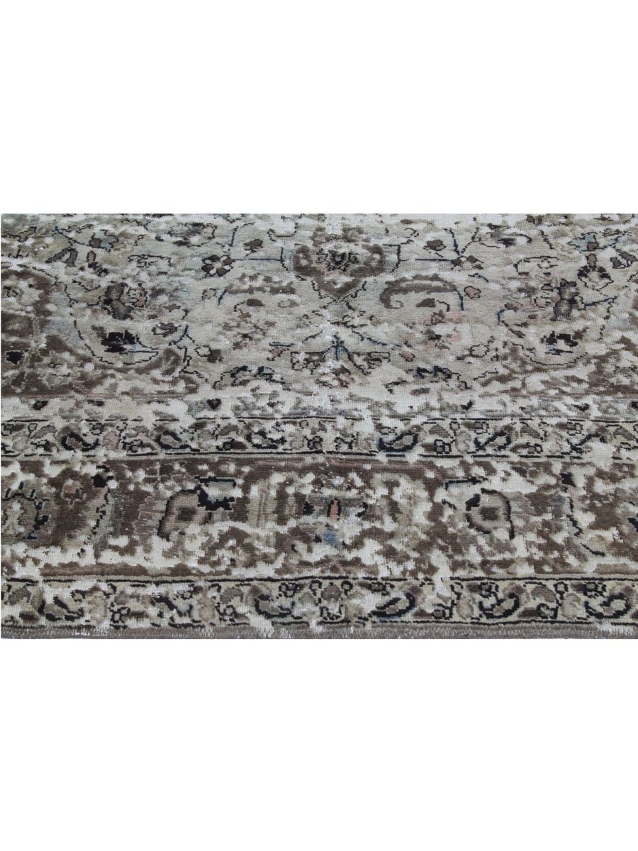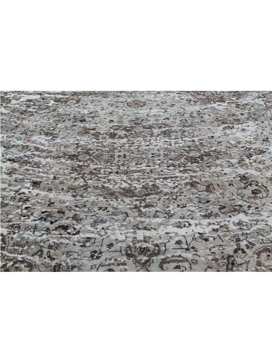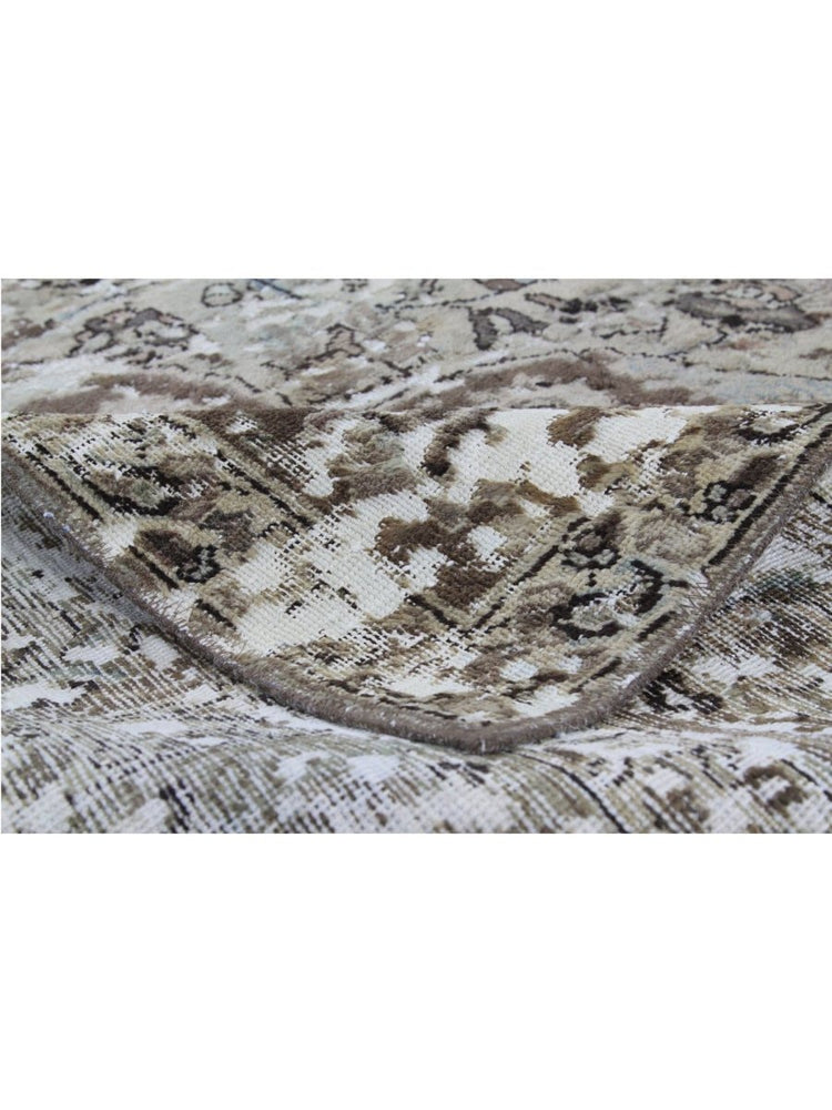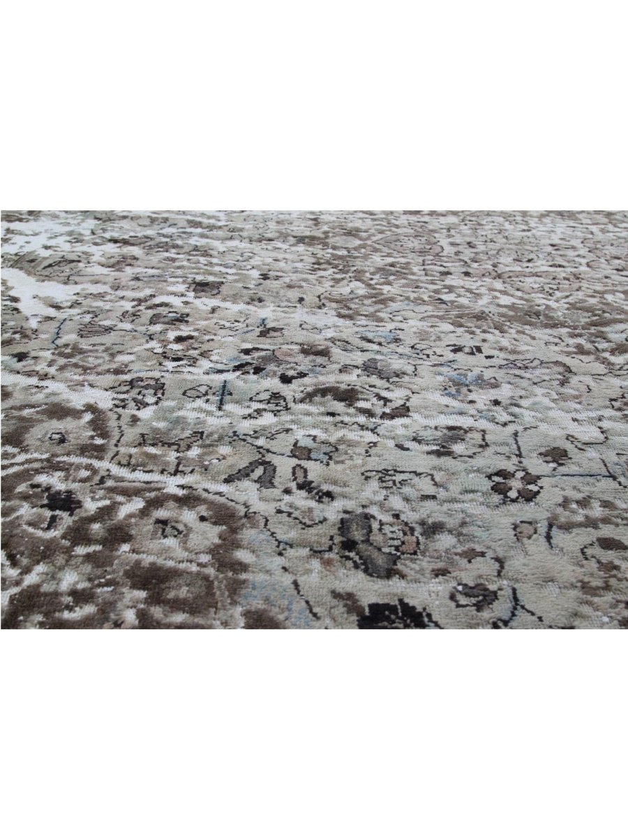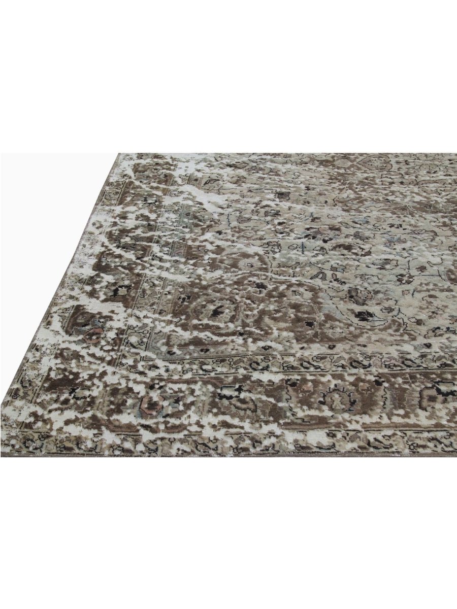 The 10x11 Vintage Distressed Persian Area Rug is a remarkable blend of classical elegance and aged character. This one-of-a-kind hand-knotted high-quality wool rug features intricate floral patterns and ornate borders in earthy tones of beige and brown with soft, distressed accents. The finely detailed medallion design is gracefully softened by the distressed finish, giving it a vintage appeal.