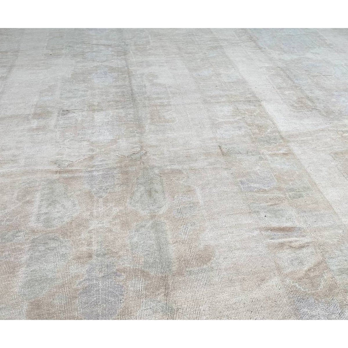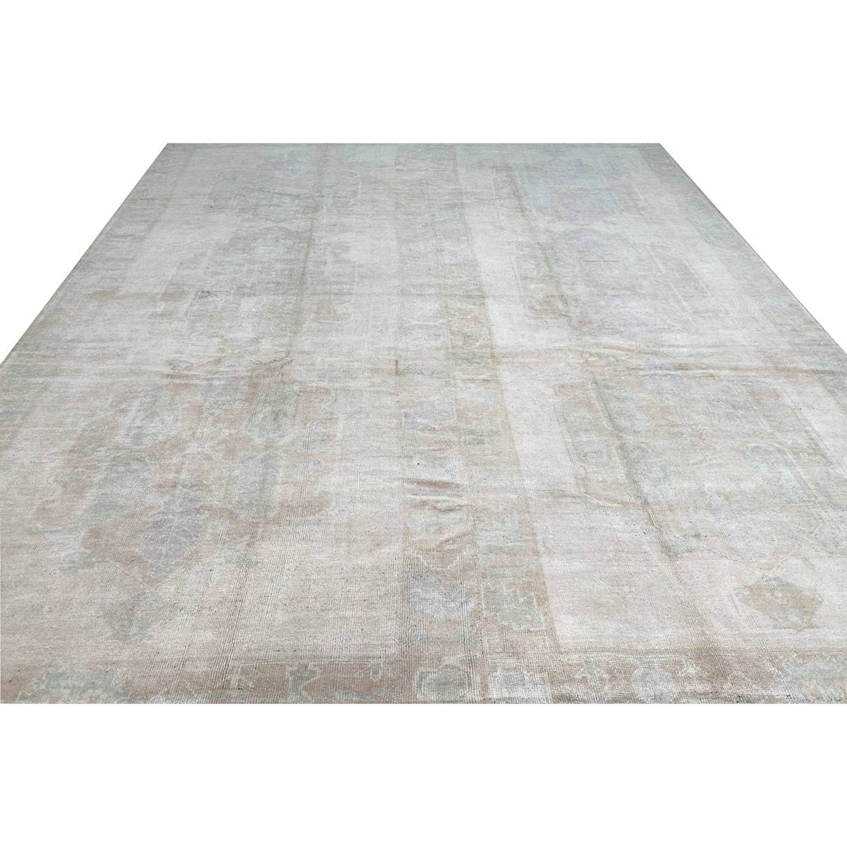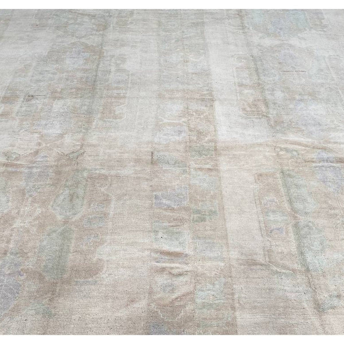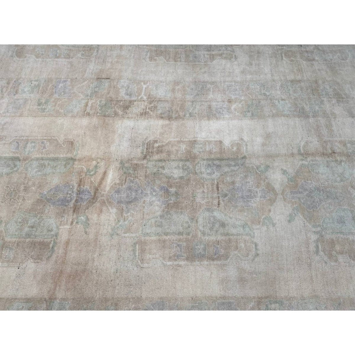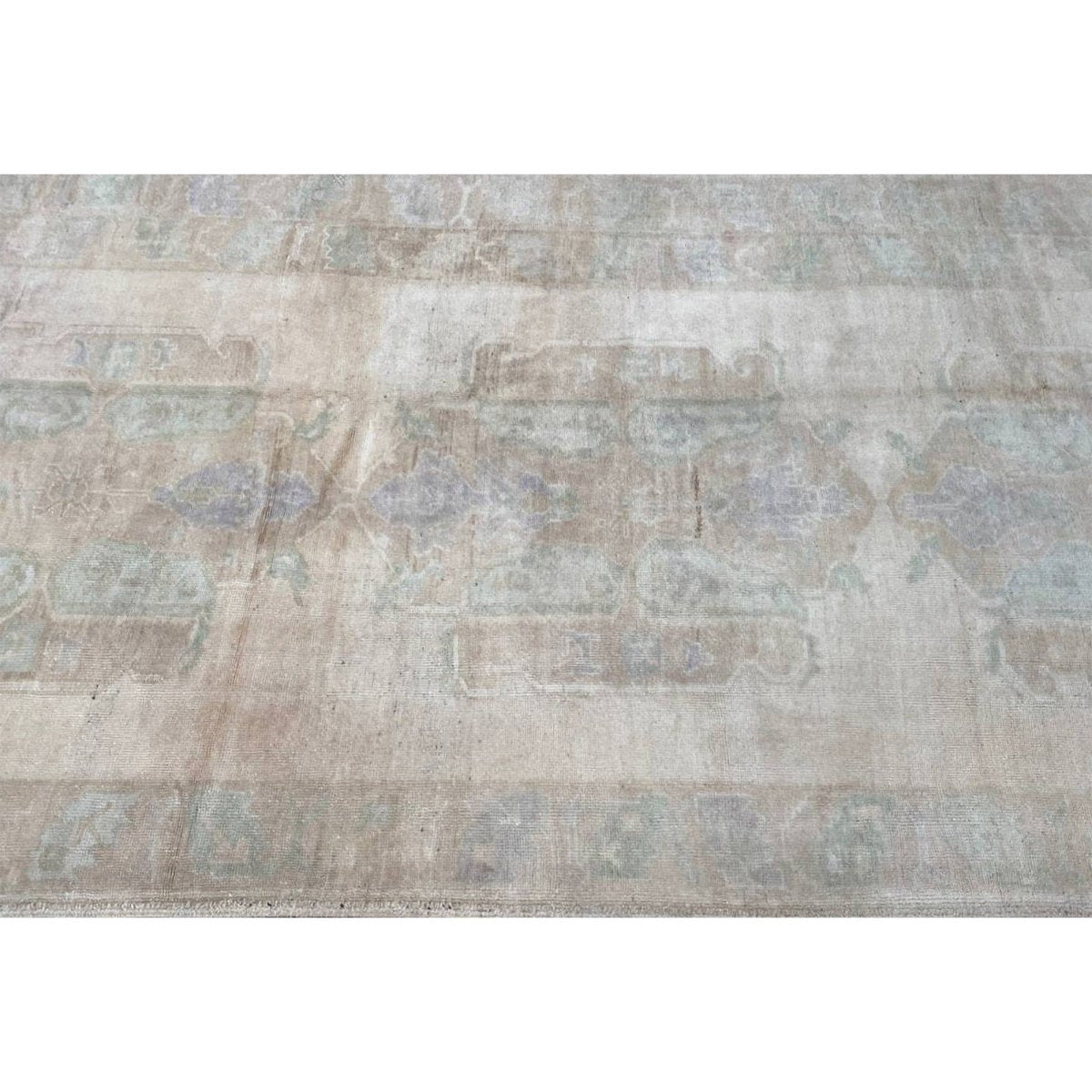 Experience the timeless beauty of traditional Turkish craftsmanship with this 10x12 antique Turkish Oushak area rug, expertly crafted using wool hand-knotted construction. Originating from Turkey, this antique rug boasts exceptional quality and a unique, one-of-a-kind design. The rug's stunning color palette features a beautiful combination of beige and dull brown hues, perfectly accented by subtle hints of blue. The intricate geometric pattern adds a touch of elegance and refinement, creating a sense of warmth and sophistication. With its expansive size of 10'0" x 12'2", this rug is ideal for anchoring large spaces, such as living rooms, dining rooms, or bedrooms. As a genuine antique, this rug is not only a beautiful addition to any room but also a valuable collector's item.