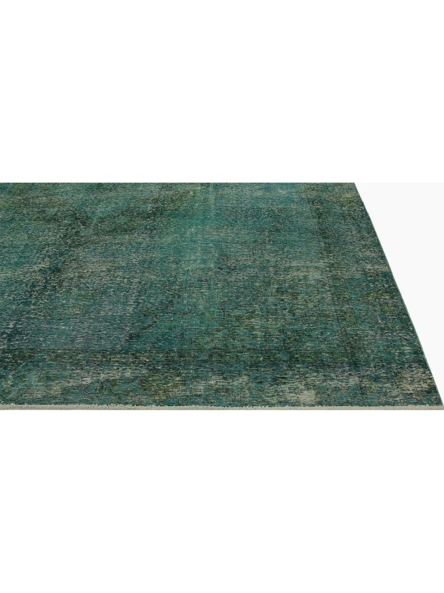 This one-of-a-kind exquisite overdyed rug features a rich blend of teal and deep forest green hues. The intricate Persian-inspired design is softened by the distressed finish, lending a vintage aesthetic while retaining its sophisticated appeal. Crafted from high-quality wool and hand-knotted for durability, this rug offers both comfort and longevity.