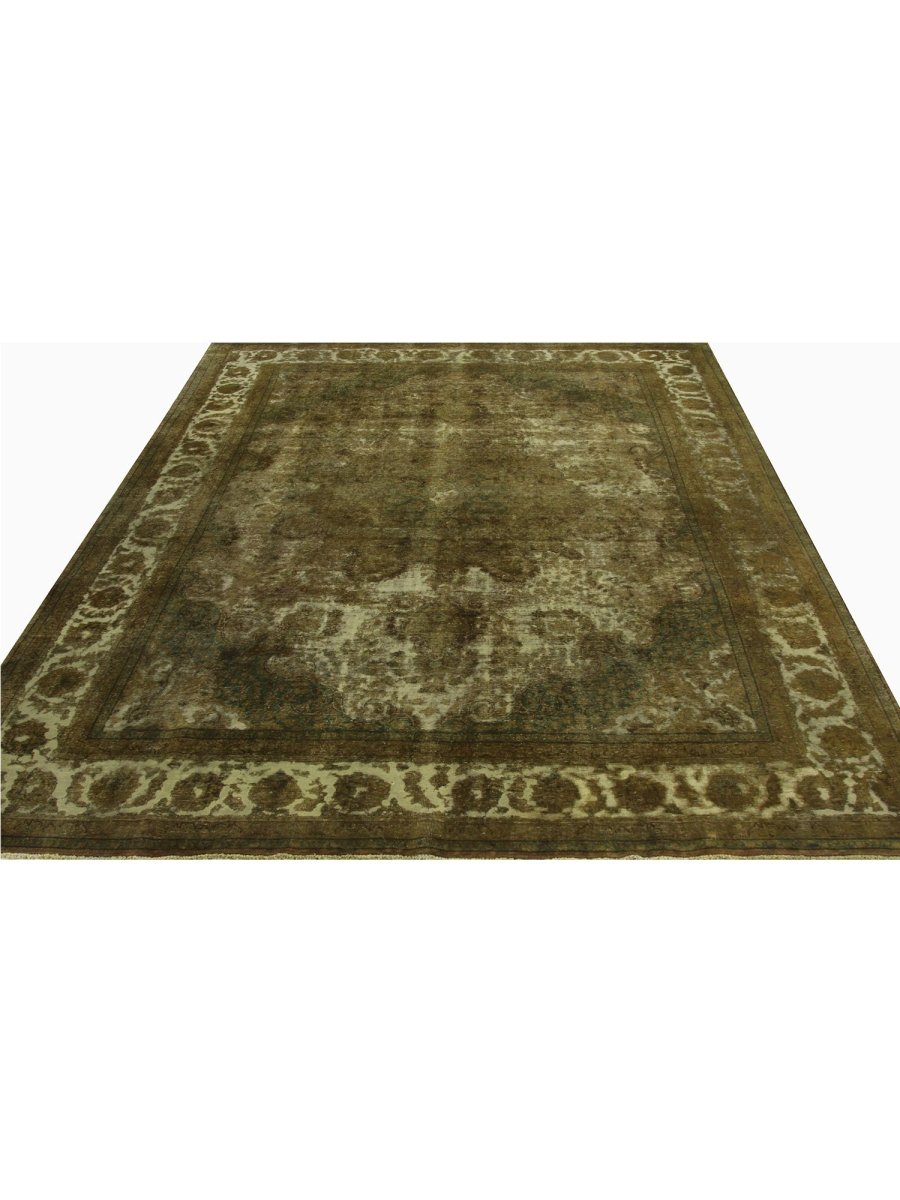 This vintage Persian area rug is hand-knotted in Persia using high-quality wool, showcasing a beautifully intricate medallion pattern that highlights expert craftsmanship. The warm tones of green, brown, and beige blend seamlessly to create a welcoming and timeless atmosphere. With its vintage charm and unique character, this rug brings a sense of history and elegance to any room. Whether placed in a high-traffic area or used as a focal point beneath furniture, it adds texture, warmth, and personality. Its durability ensures it will remain a beloved piece in your home for years to come—a true fusion of beauty and function. Offers free US shipping.