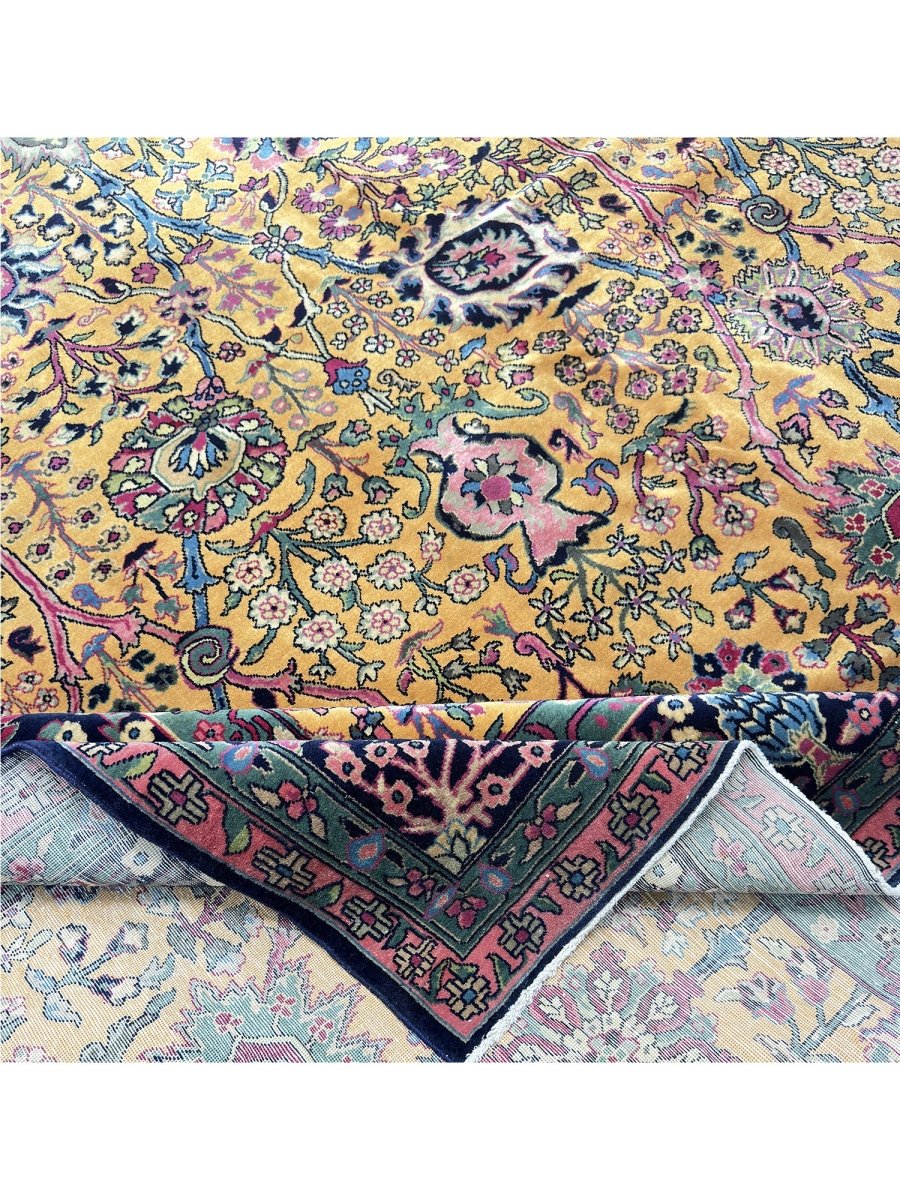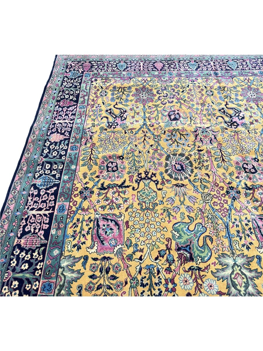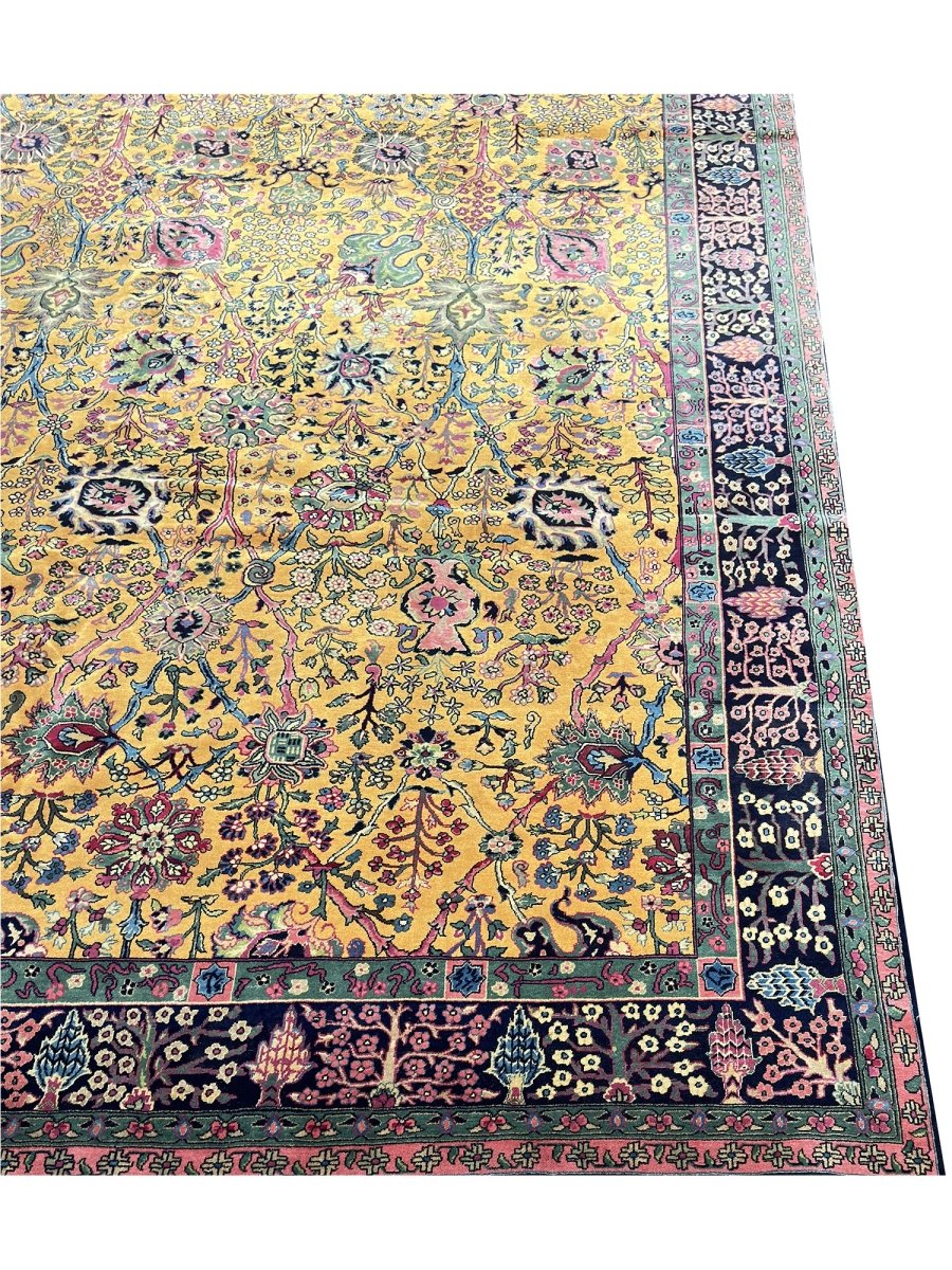 Experience the charm of the 10x13 Antique Indian Agra Area Rug, a unique addition that brings traditional elegance to your home. Hand-knotted from high-quality wool, this stunning rug features a floral design that adds character to any space. Perfect for large living rooms, dining areas, or as a statement piece in your study, it creates a warm and inviting atmosphere. The exquisite blend of yellow, blue, green, and pink tones makes it a versatile choice for various styles. This exceptional piece not only enhances your decor but also serves as a beautiful work of art. Enjoy free shipping in the US.
