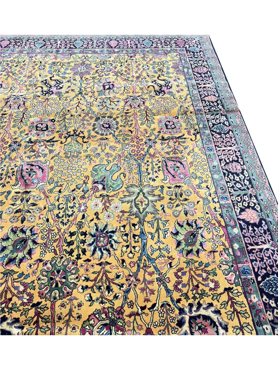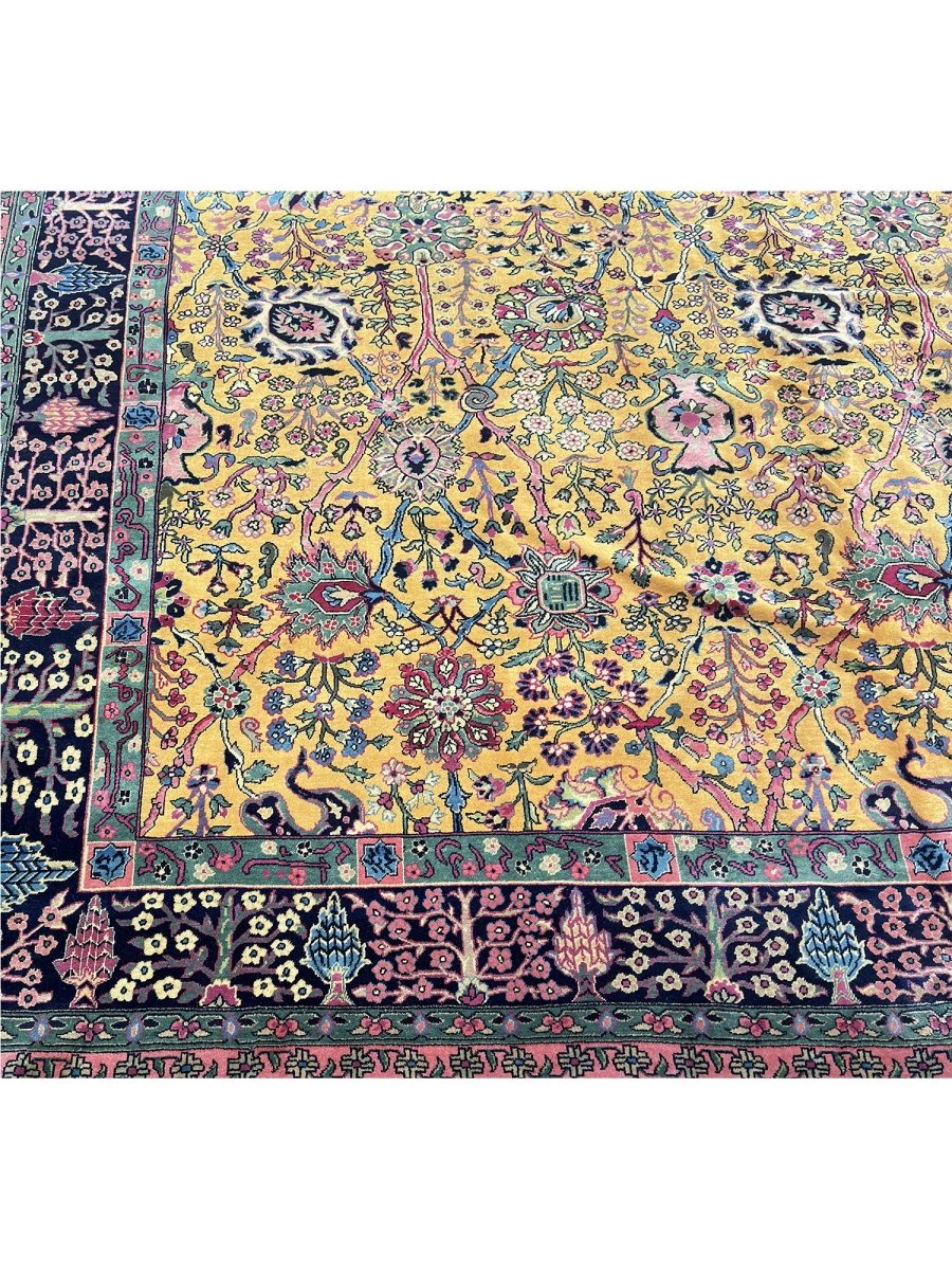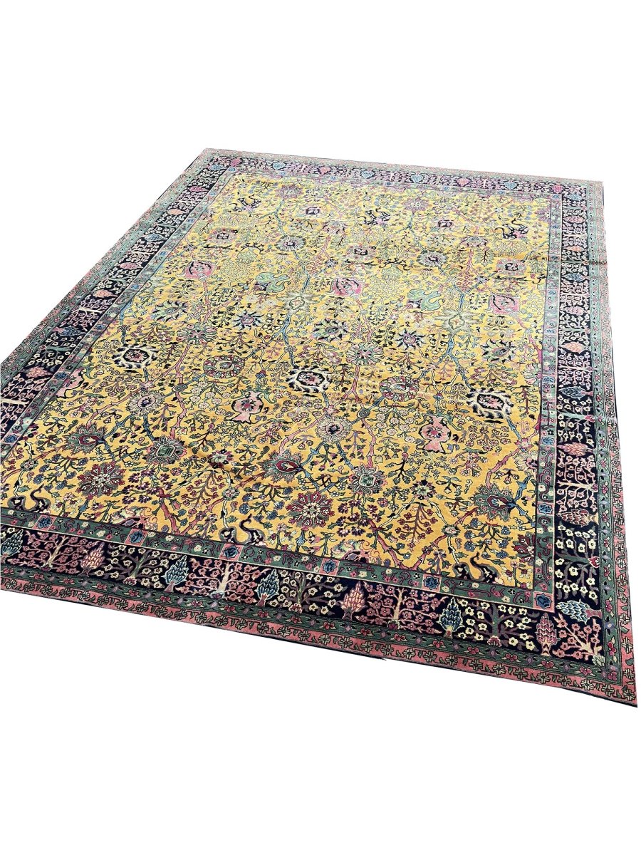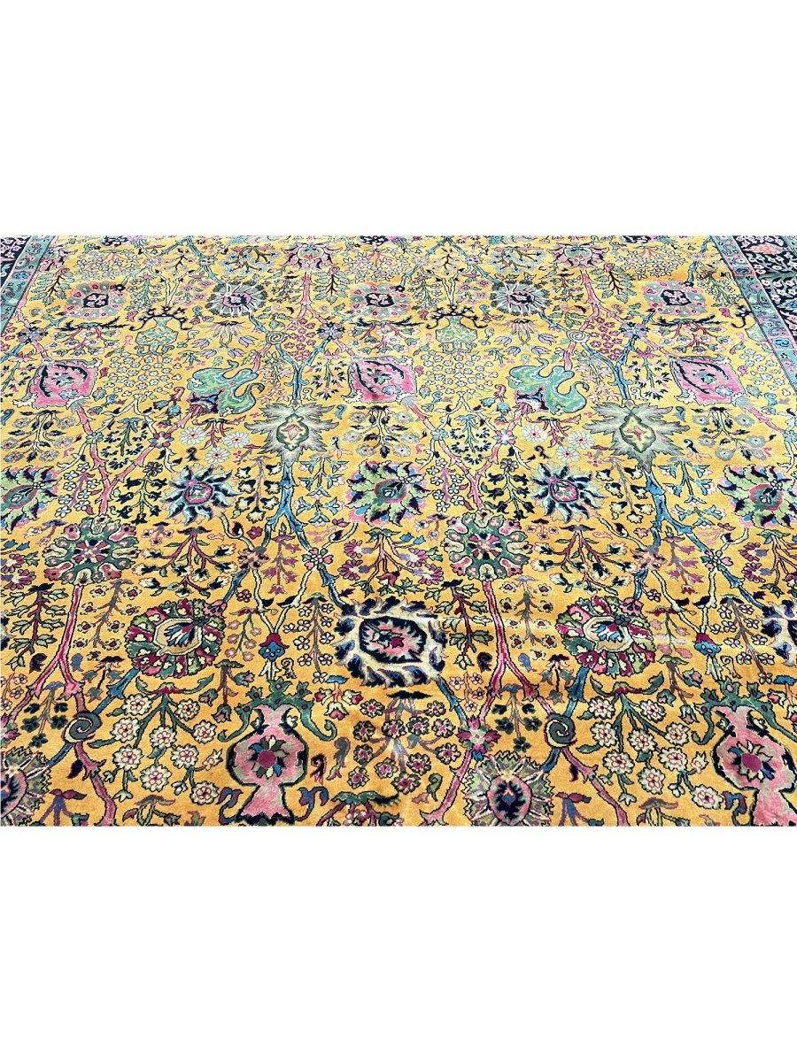 Experience the charm of the 10x13 Antique Indian Agra Area Rug, a unique addition that brings traditional elegance to your home. Hand-knotted from high-quality wool, this stunning rug features a floral design that adds character to any space. Perfect for large living rooms, dining areas, or as a statement piece in your study, it creates a warm and inviting atmosphere. The exquisite blend of yellow, blue, green, and pink tones makes it a versatile choice for various styles. This exceptional piece not only enhances your decor but also serves as a beautiful work of art. Enjoy free shipping in the US.