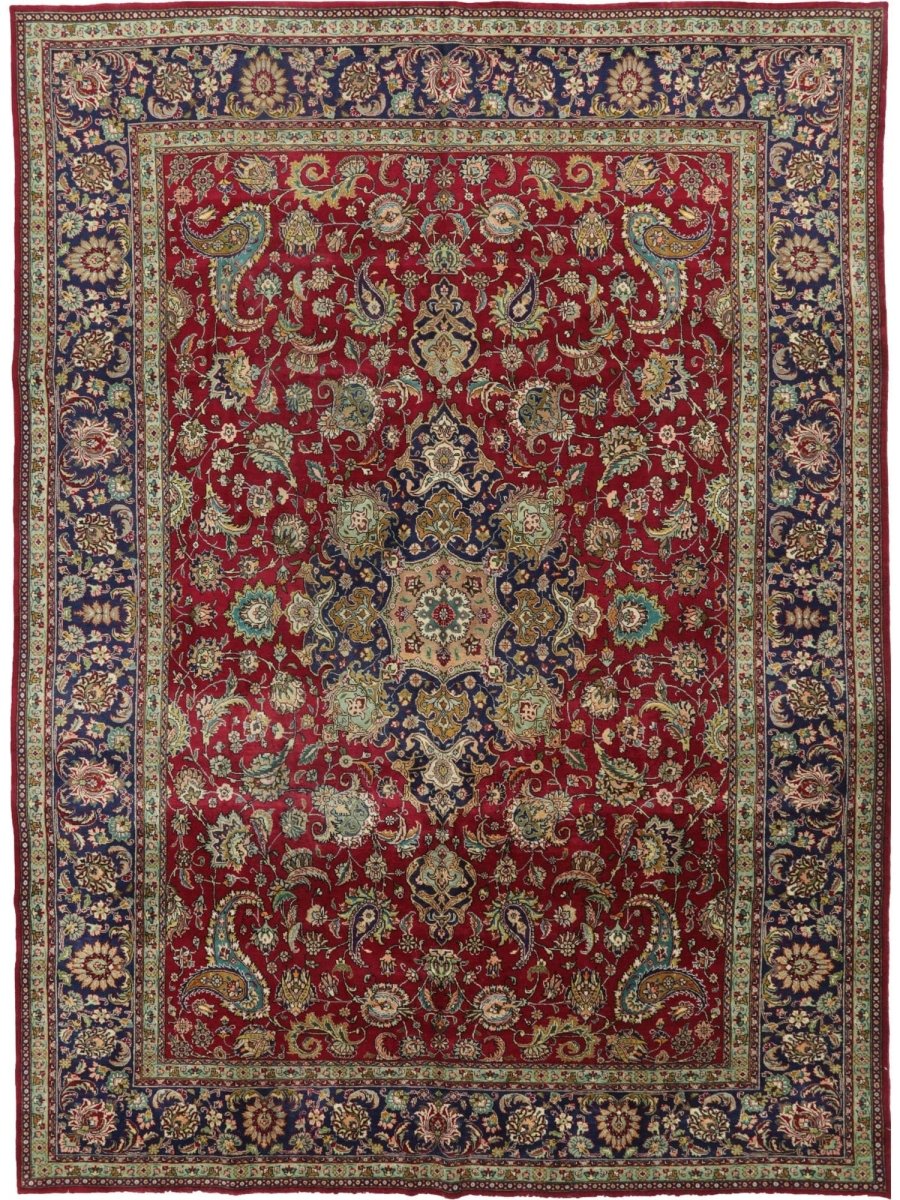 Add a touch of casual style to your home with 10x13 Old Persian Tabriz Area Rug, crafted in Persia. This rug features a captivating medallion pattern, showcasing a simple yet effective design in a burgundy, navy, pink, gray, beige, and olive-green palette. Its durable wool construction ensures longevity and easy care, perfect for living rooms, bedrooms, and dining spaces. The clean finish reflects quality craftsmanship and design. This piece effortlessly brightens, adding warmth, texture, and a relaxed feel. A blend of simple design and function, it easily enhances any space. Enjoy the benefit of free shipping across the United States. Each rug offers a distinct look, with subtle variations inherent to its creation.