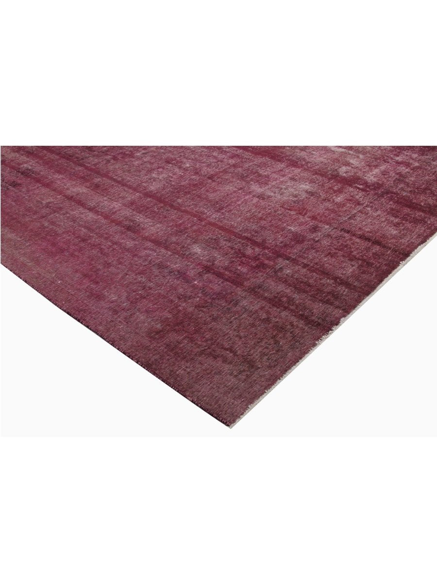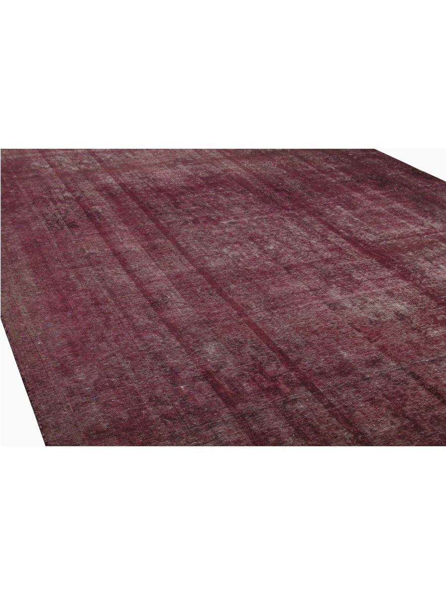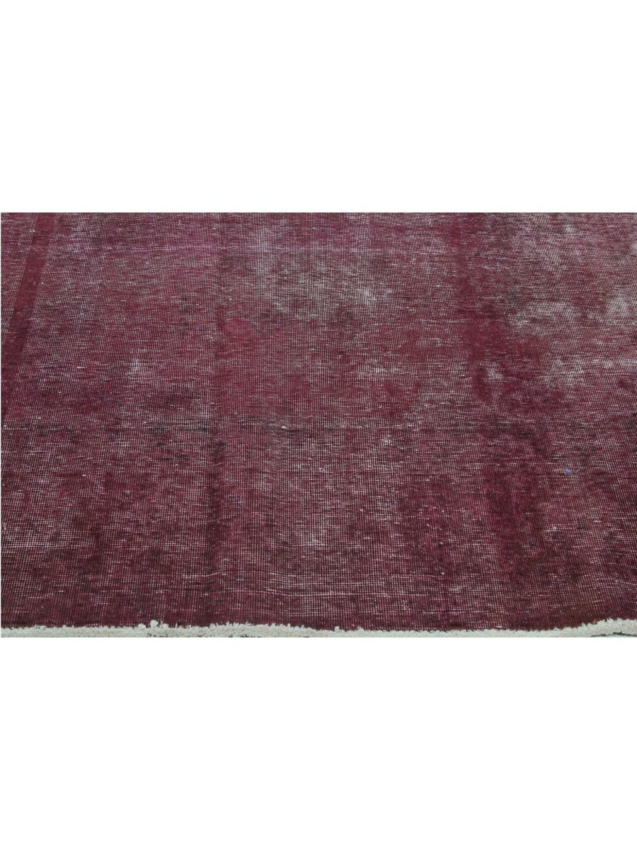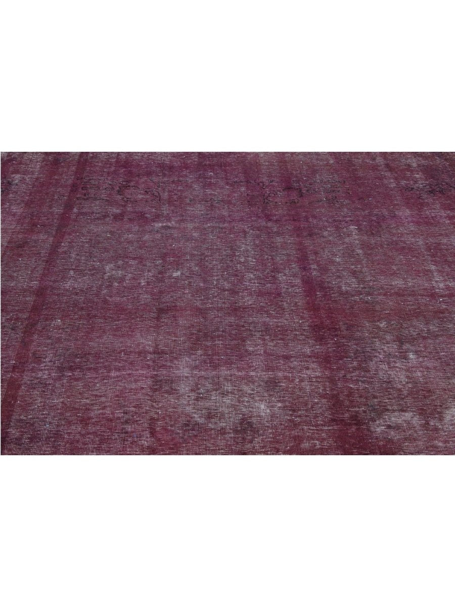 This one-of-a-kind 10x13 Vintage Distressed Overdyed Persian Area Rug is a masterful blend of classical craftsmanship and sleek design. Hand-knotted from durable wool in Persia, this rug features rich burgundy tones, creating a captivating over-dyed effect. The distressed finish reveals intricate underlying geometric patterns with no border, adding depth and character to the rug’s design.