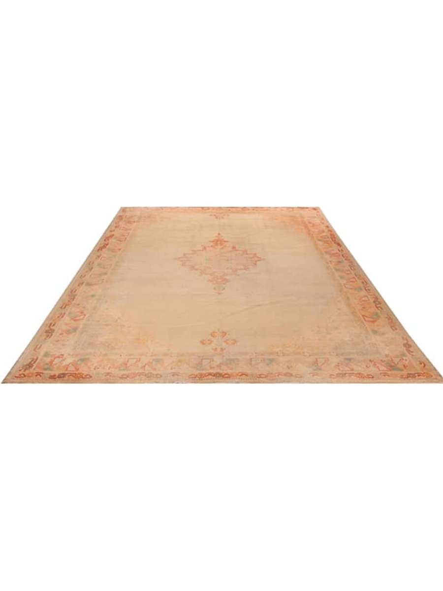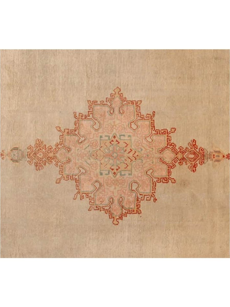 Enrich your grand living areas, formal dining spaces, and expansive bedrooms with the distinct allure of this 10x14 Antique Turkish Oushak area rug. Meticulously hand-knotted in Turkey from fine wool, this exquisite rug displays a magnificent medallion motif with intricate patterns. The elegant color scheme, showcasing soft beige, pale red, and orange, bestows refined grace upon any interior. Fashioned for both resilience and timeless style, this Oushak rug promises to be a treasured heirloom in your abode. Its plush texture and elaborate detailing render it a cozy yet sophisticated selection for bustling zones. Acquire yours now and enjoy complimentary delivery directly to your United States doorstep. Discover exceptional design and utmost comfort in this singular, elegant piece.