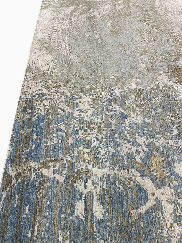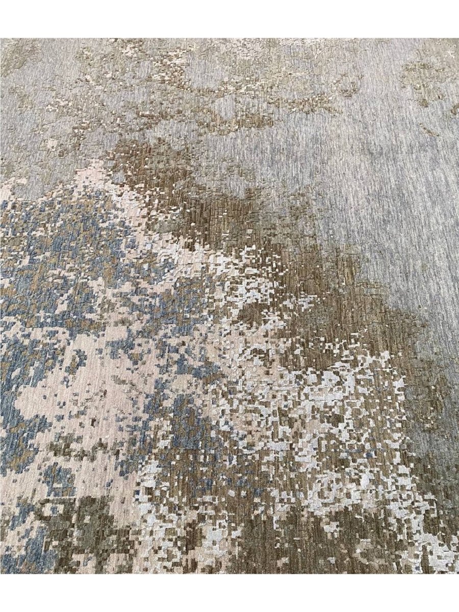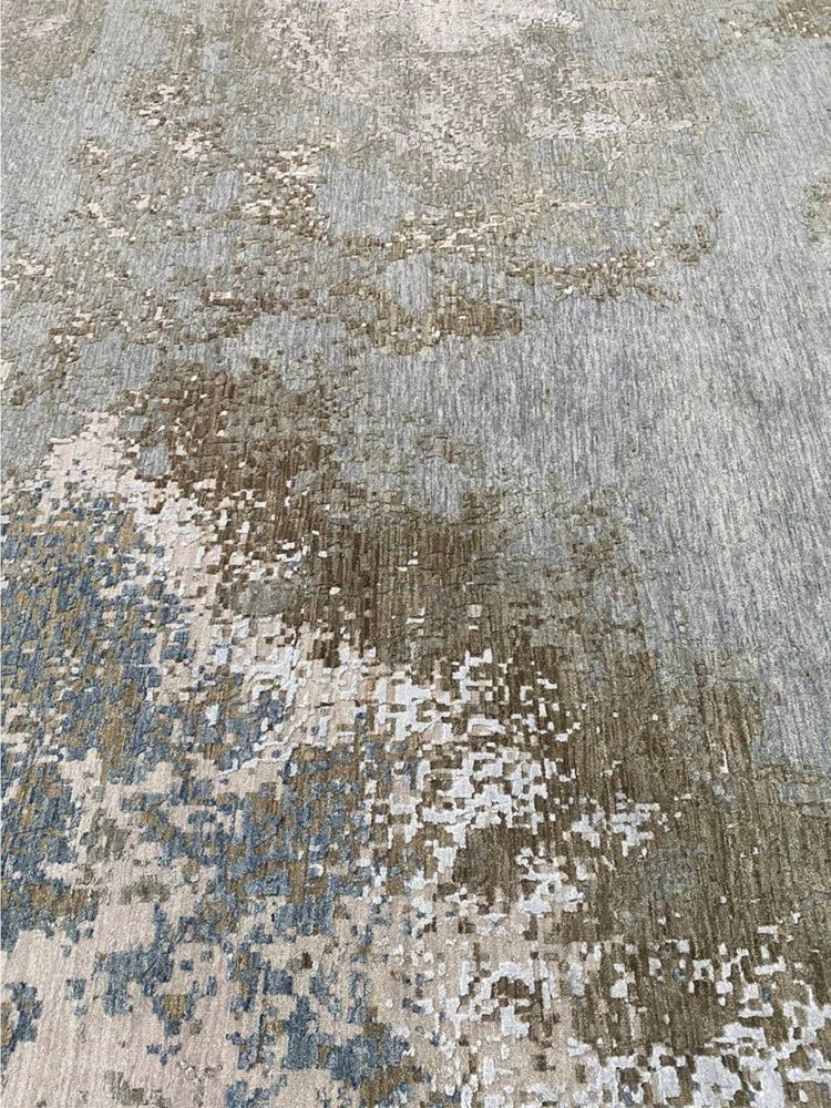 The 10x14 Gray and Gold Modern Abstract Area Rug is a unique treasure that embodies the rich history of Indian weaving. It will elevate your decor. Made from high-quality wool and bamboo silk, this gorgeous rug features an abstract design that blends with any type of interior design. It provides a friendly atmosphere. It is a flexible addition to your house with the rich blend of gray, gold, and grayish-blue tones that offer depth and character. This rug is a stunning work of art that elevates your living area and goes beyond simple decoration. Take advantage of free US delivery.