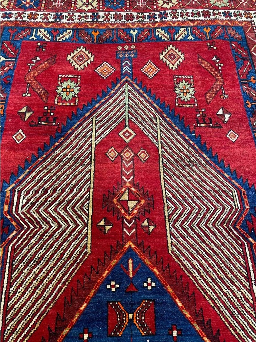 Experience the elegance of the 5x14 Old Persian Heriz Runner Rug, a unique piece that brings classic beauty to your home. Hand-knotted from quality wool, this beautiful rug boasts a medallion pattern that adds charm to any room. Ideal for hallways, entryways, or as a focal point in your entranceway, it makes any space feel cozy and inviting. The stunning combination of red, brown, blue, yellow, orange, and ivory colors make it a great option for any style. This outstanding item not only beautifies your space but also stands as a stunning piece of art. Get free shipping in the US.