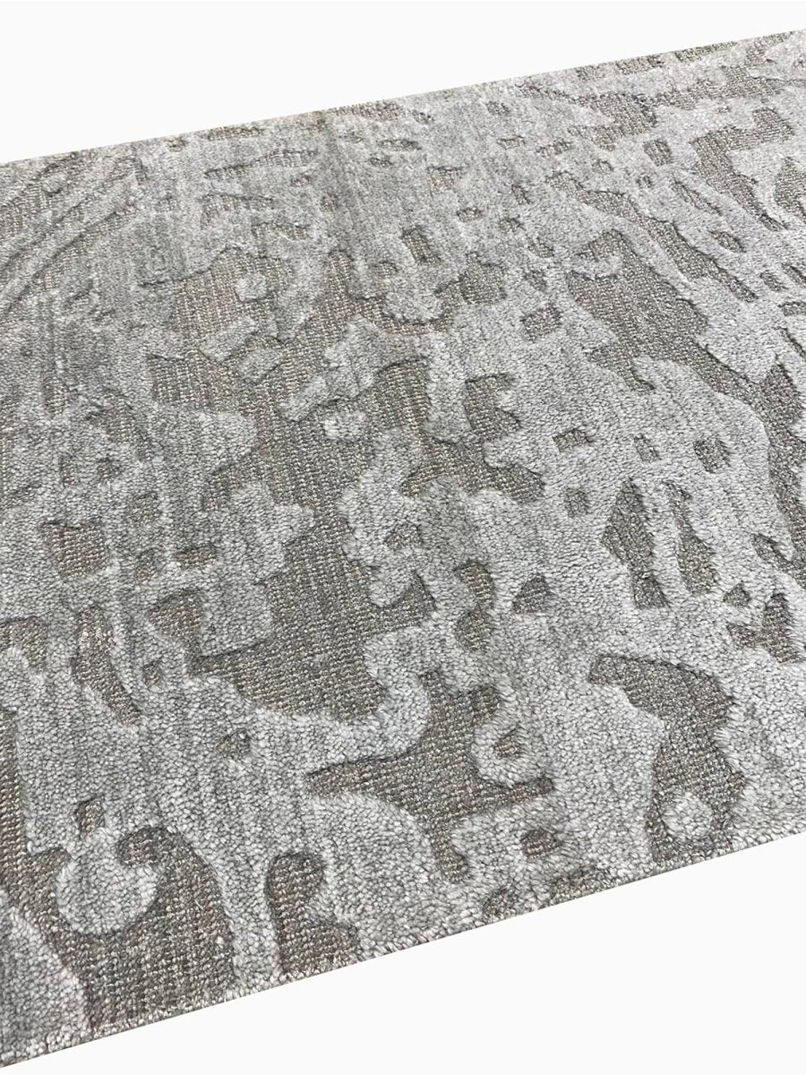 This 2x3 Modern Abstract Area Rug blends refined craftsmanship with striking modern style. Crafted from a premium blend of high-quality wool and luminous bamboo silk, this hand-loomed rug originates from India, showcasing exceptional artistry and a captivating abstract pattern. It features a dynamic flow of organic shapes and shades. The sophisticated color palette, meticulously observed from the rug, highlights various tones of light gray and dark gray, collectively creating a visually engaging rug.