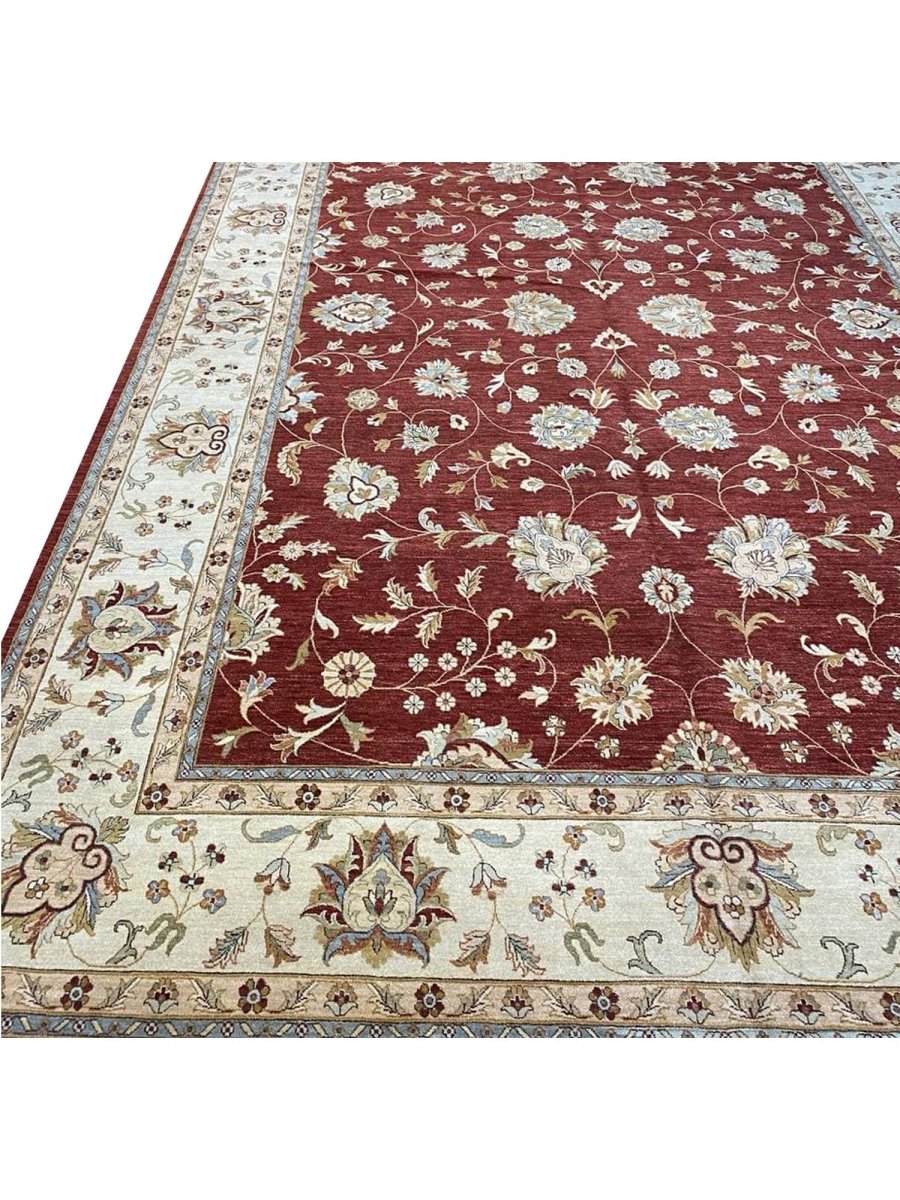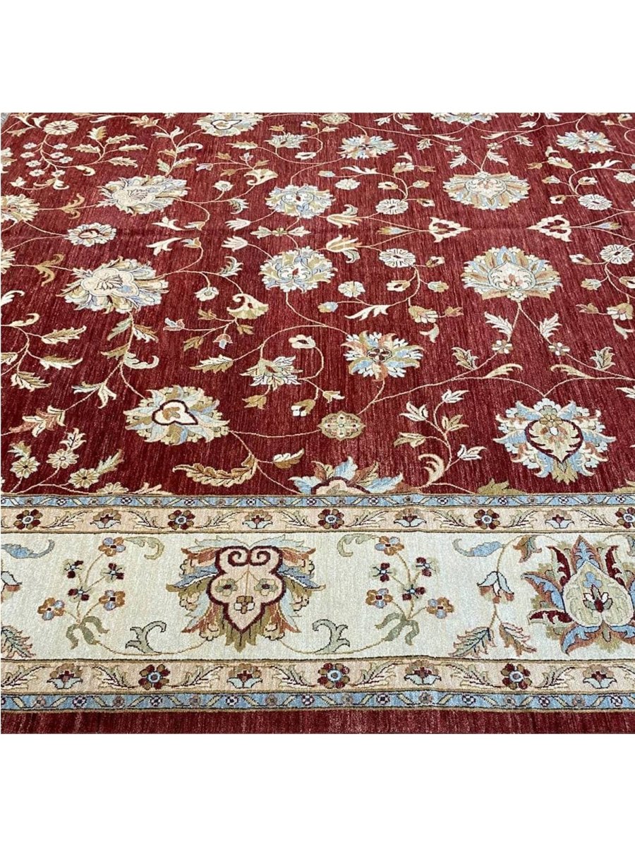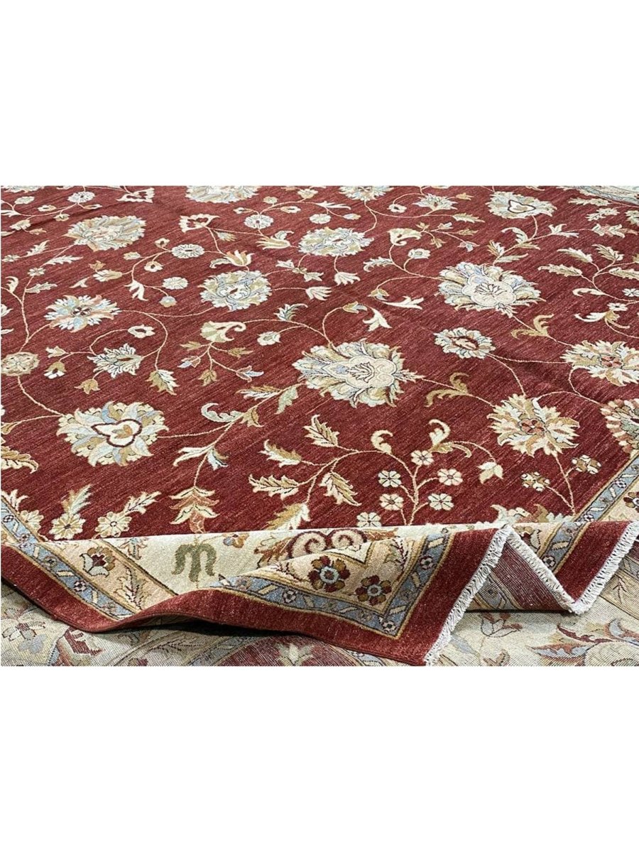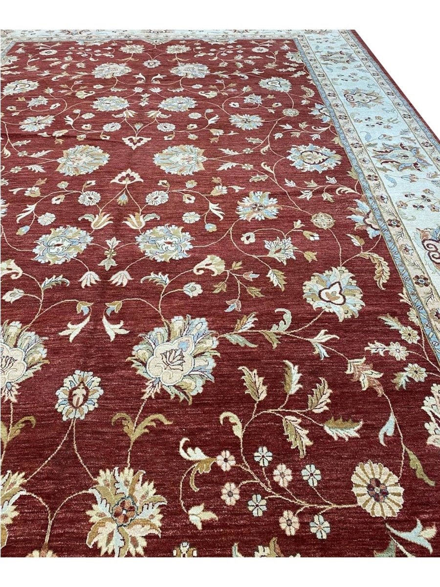 The 12x18 Handwoven Persian Style Rug, is a unique treasure that embodies the rich history of Indian weaving and will elevate your decor. Made from high-quality wool, this gorgeous rug features a geometric design that blends in perfectly with any type of interior design. It provides a friendly atmosphere and is perfect for large dining rooms, comfortable living spaces, or as a chic addition in your workplace. It is a flexible addition to your house because of the rich blend of rust, beige, and brown tones that offer depth and character. This amazing traditional rug is a stunning work of art that elevates your living area and goes beyond simple decoration. Take advantage of free US delivery.