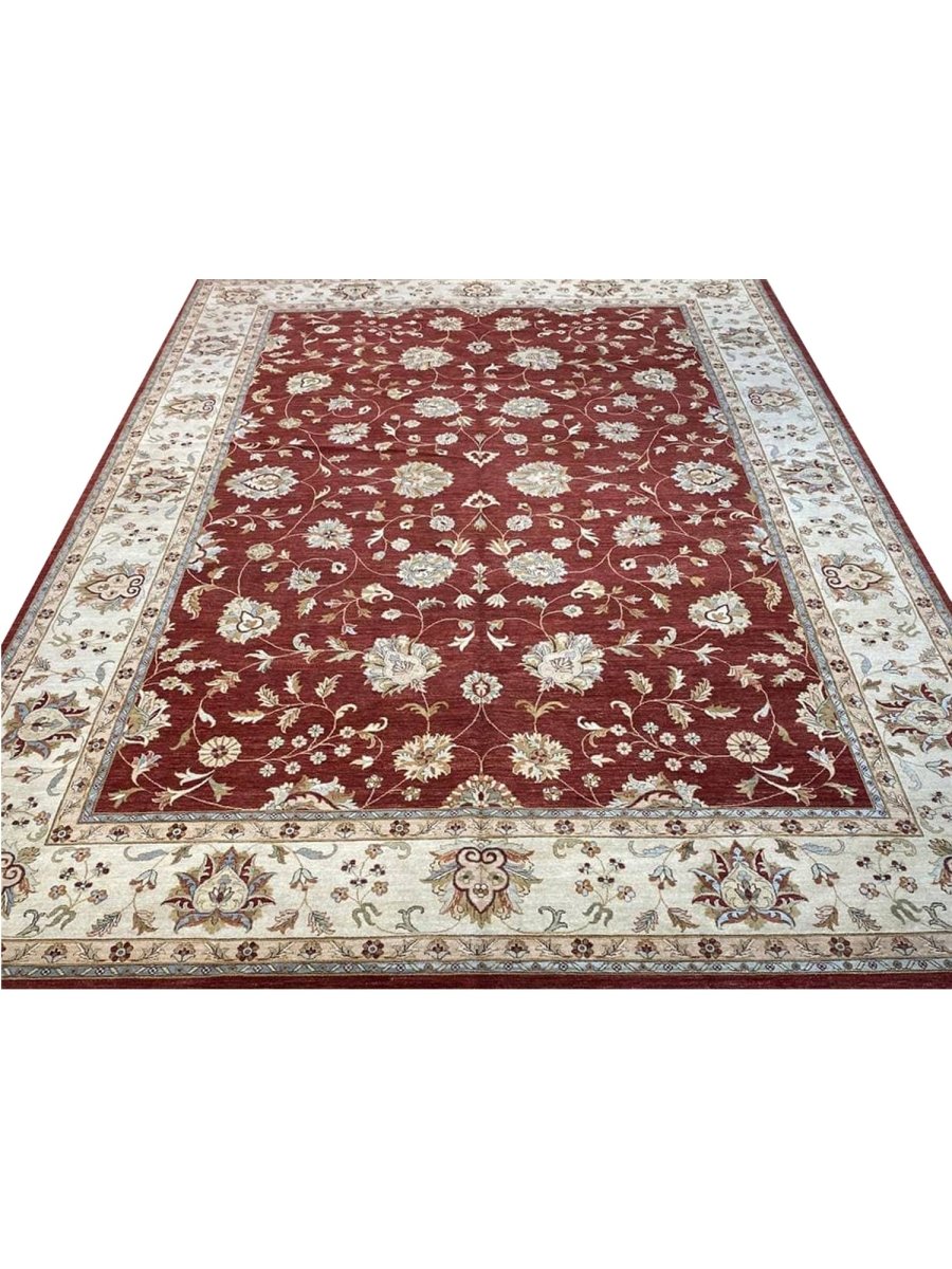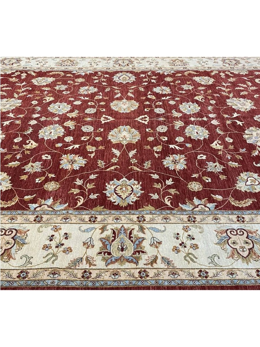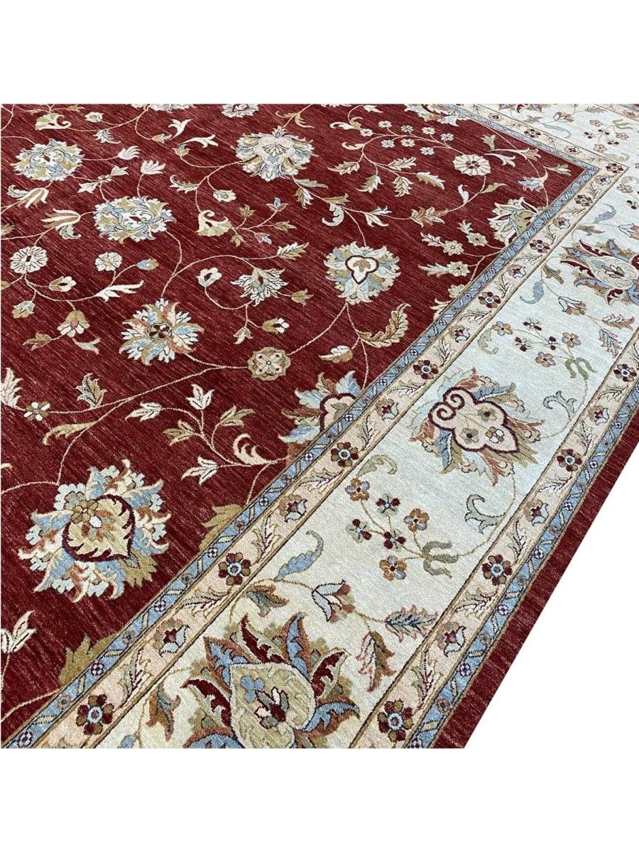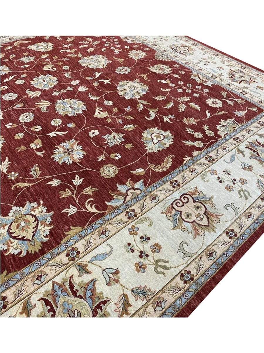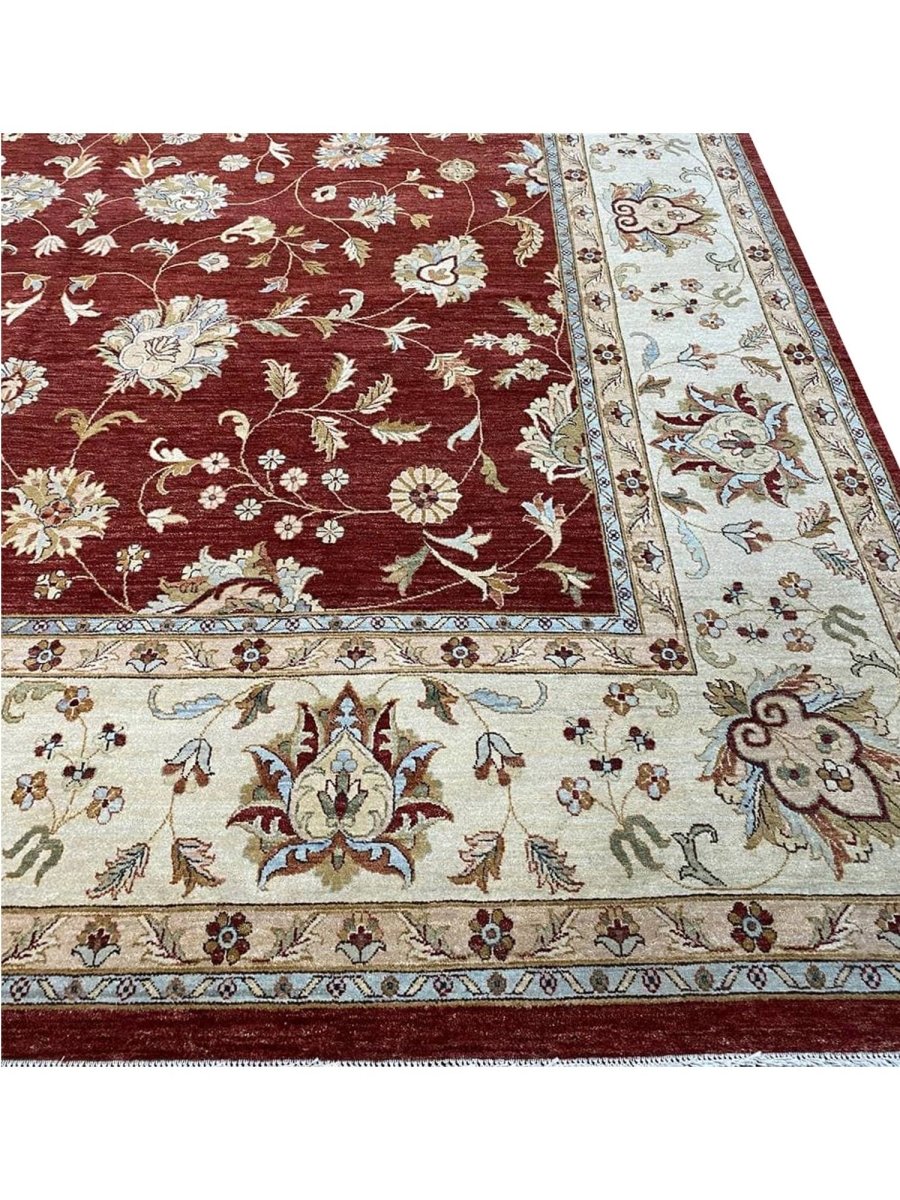 The 12x18 Handwoven Persian Style Rug, is a unique treasure that embodies the rich history of Indian weaving and will elevate your decor. Made from high-quality wool, this gorgeous rug features a geometric design that blends in perfectly with any type of interior design. It provides a friendly atmosphere and is perfect for large dining rooms, comfortable living spaces, or as a chic addition in your workplace. It is a flexible addition to your house because of the rich blend of rust, beige, and brown tones that offer depth and character. This amazing traditional rug is a stunning work of art that elevates your living area and goes beyond simple decoration. Take advantage of free US delivery.