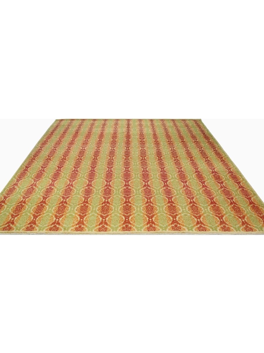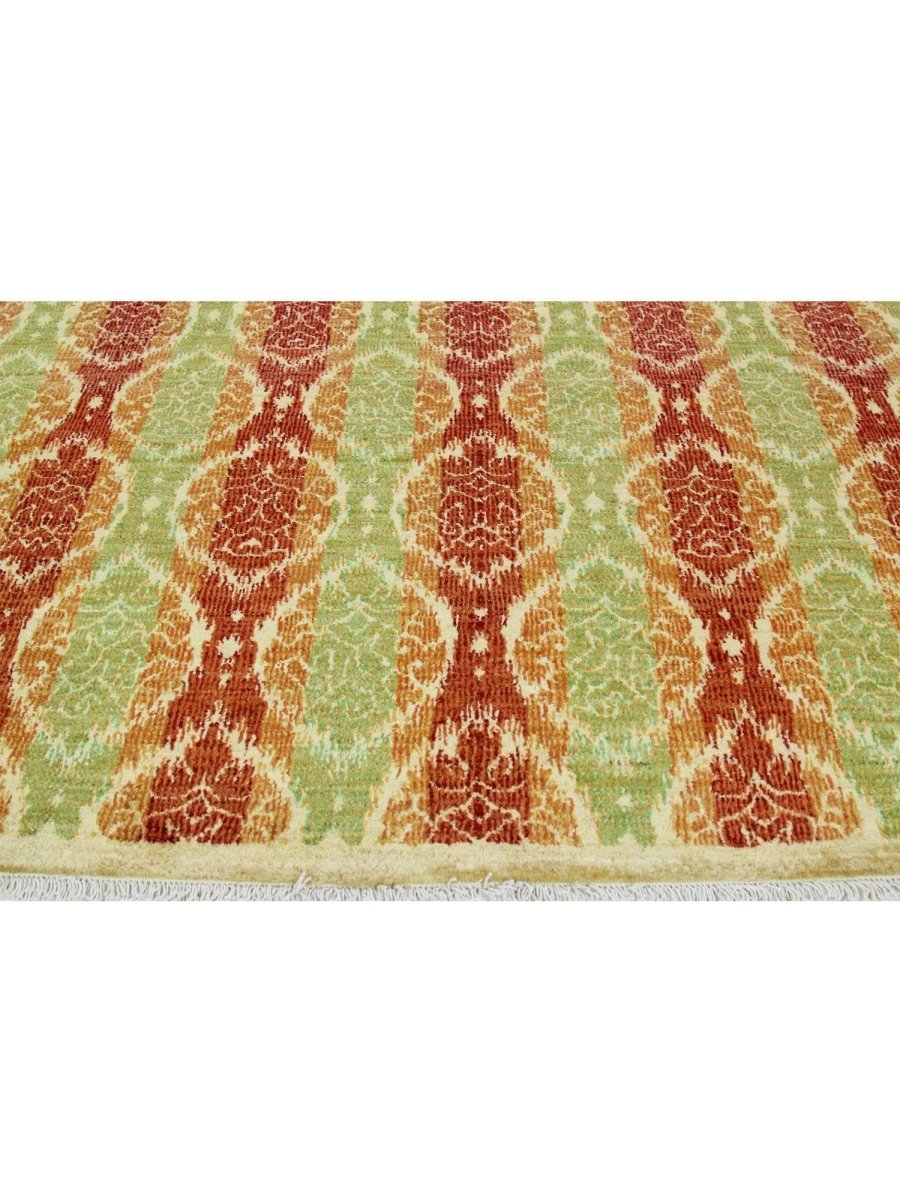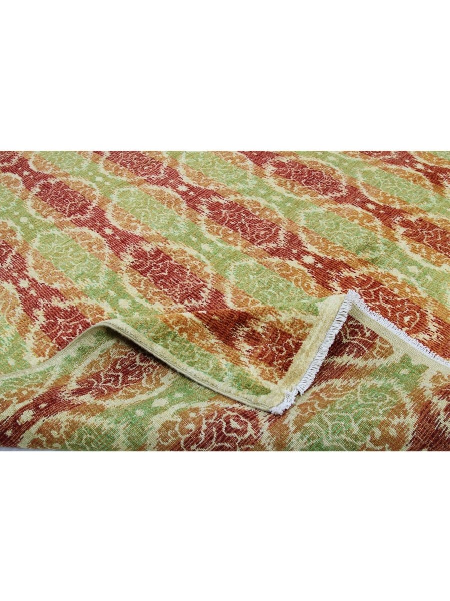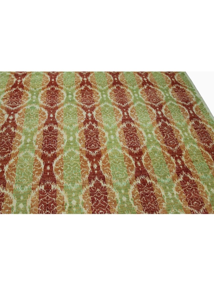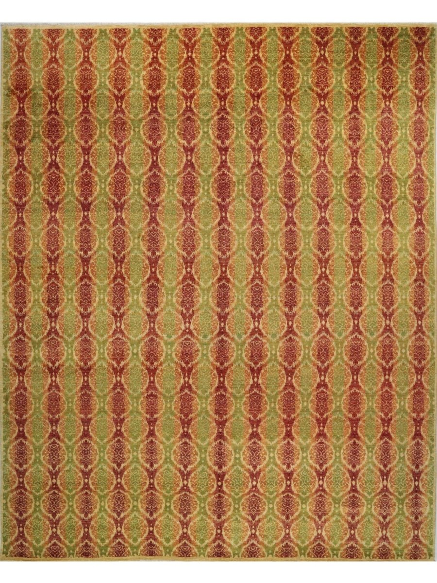 Add warmth and sophistication with 12x15 Transitional Ikat Area Rug, an original addition to your home that brings transitional style and charm. Beautifully hand-knotted from the finest quality wool, this stunning rug features a geometric design that adds character and style to the room. An ideal choice for the dining rooms, living spaces, or for adding drama to the entranceway, it creates a cozy atmosphere. The striking combination of rich tones such as burgundy, orange, and lime green makes it a suitable enhancement for any home style. This outstanding piece not only adds great beauty to your decor but also serves as a fine piece of artwork. Enjoy free shipping in the US.