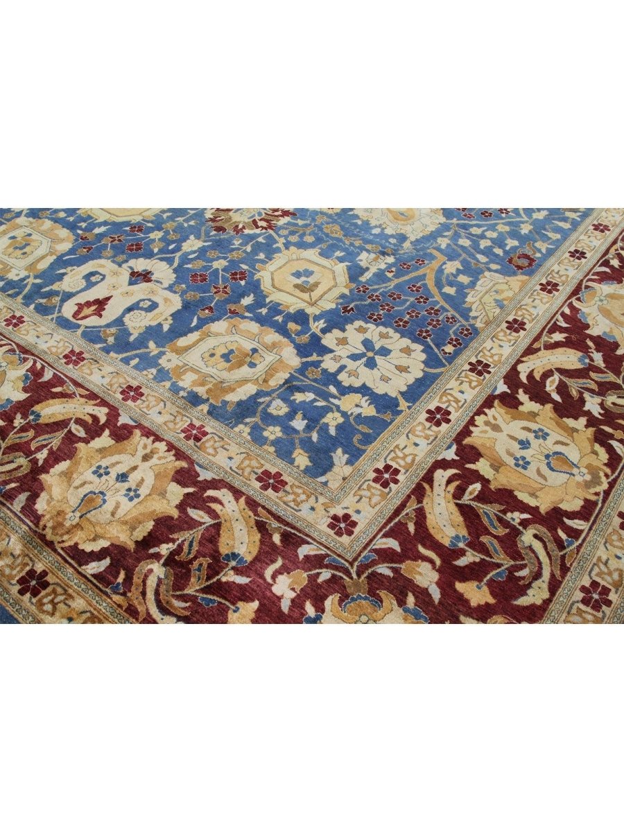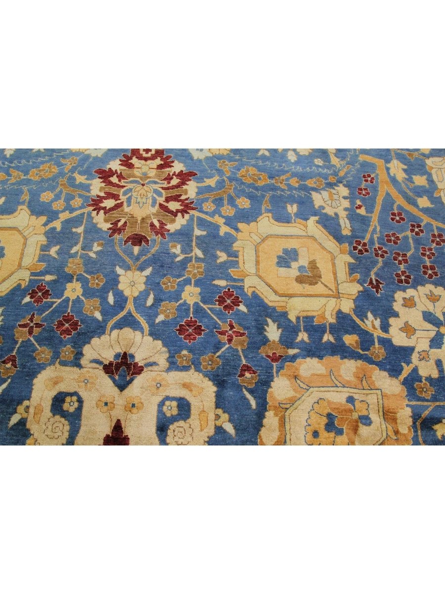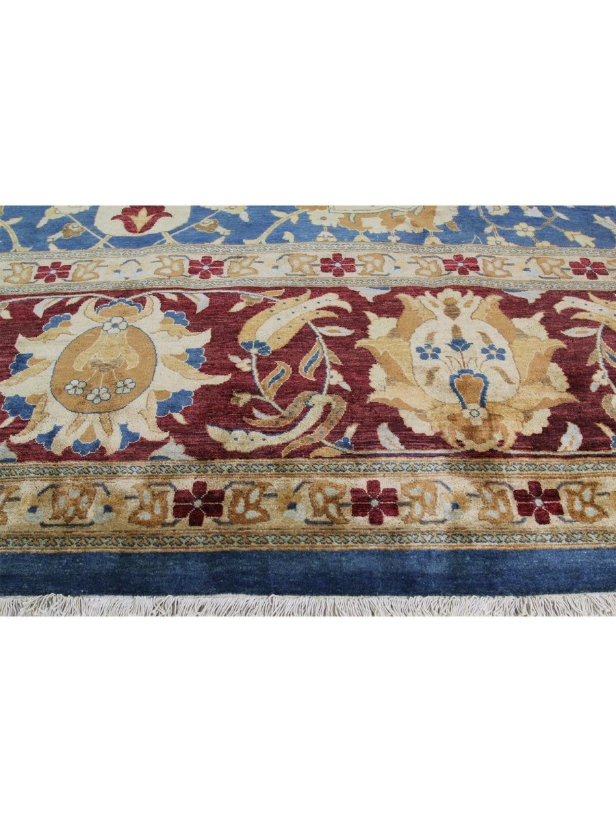 Add a touch of vibrant beauty to your home with this 12x15 handwoven Oushak-style area Rug crafted in Pakistan. The rug features a captivating floral pattern showcasing traditional motifs, in a deep blue, red, gold, and beige palette. Hand-knotted wool construction ensures durability and lasting beauty, perfect for spacious living rooms, dining spaces, and bedrooms. Intricate detail reflects an artisan's skill and timeless heritage. This piece effortlessly complements while adding warmth, texture, and sophistication. Enjoy the benefit of free shipping across the United States. Each rug has one-of-a-kind subtle variations highlighting its elegant character.