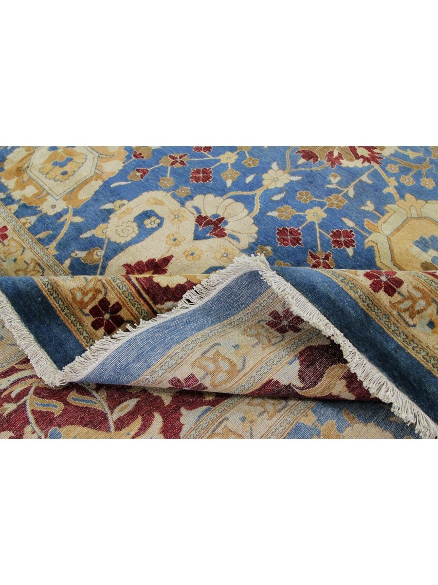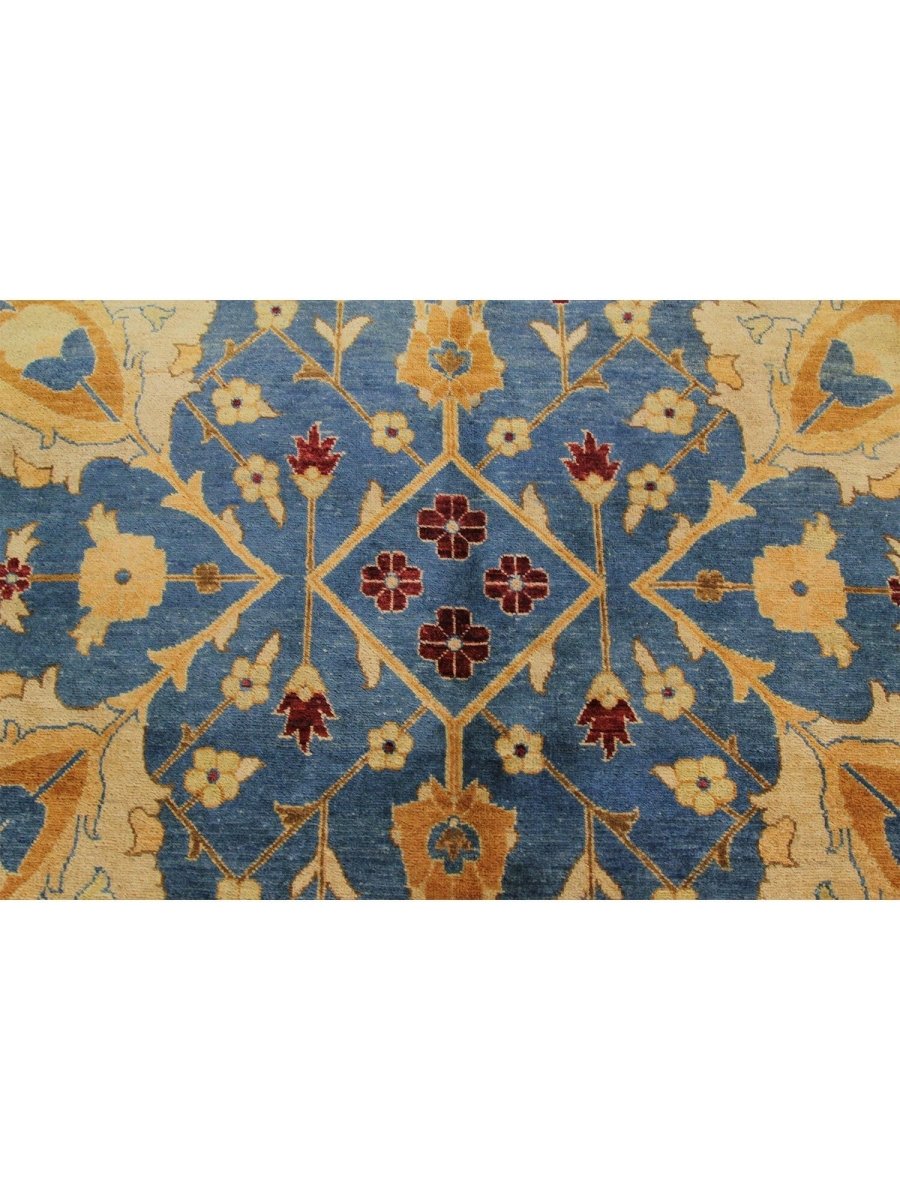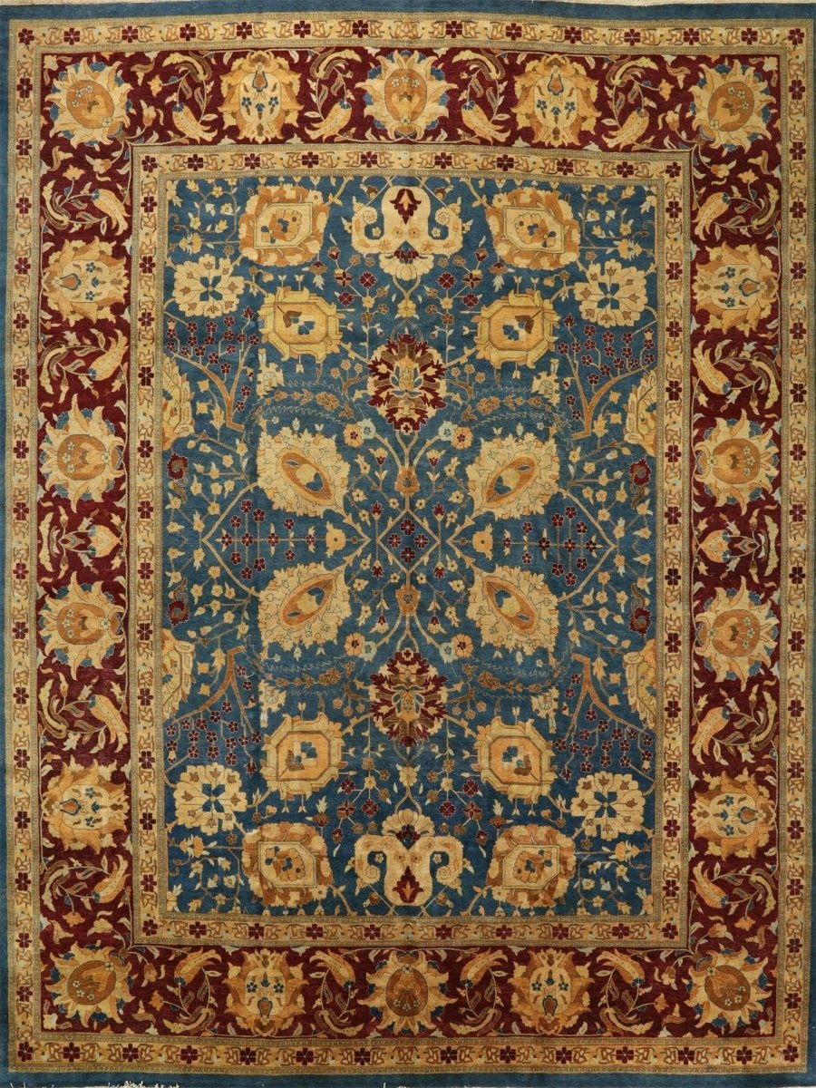 Add a touch of vibrant beauty to your home with this 12x15 handwoven Oushak-style area Rug crafted in Pakistan. The rug features a captivating floral pattern showcasing traditional motifs, in a deep blue, red, gold, and beige palette. Hand-knotted wool construction ensures durability and lasting beauty, perfect for spacious living rooms, dining spaces, and bedrooms. Intricate detail reflects an artisan's skill and timeless heritage. This piece effortlessly complements while adding warmth, texture, and sophistication. Enjoy the benefit of free shipping across the United States. Each rug has one-of-a-kind subtle variations highlighting its elegant character.