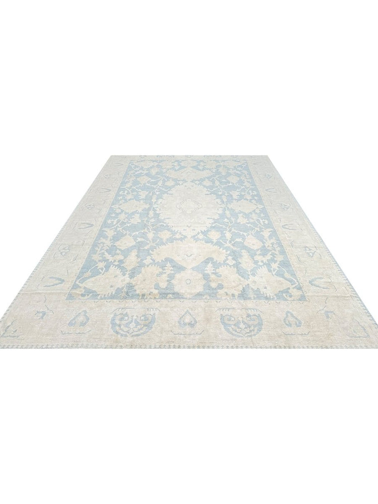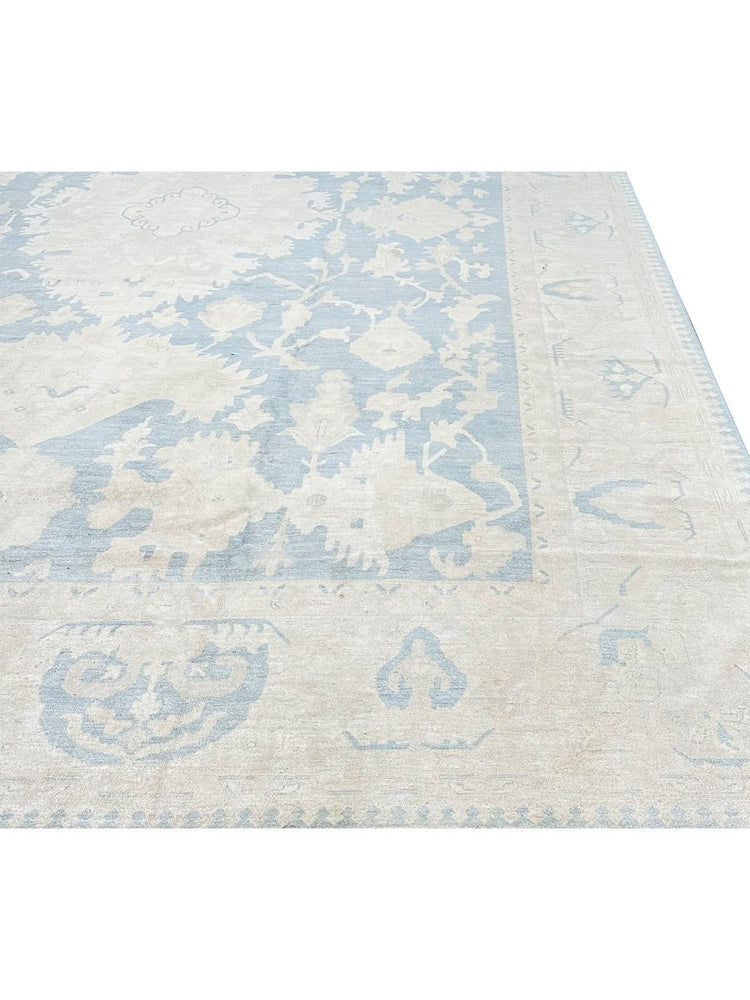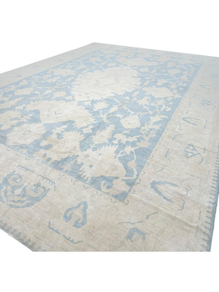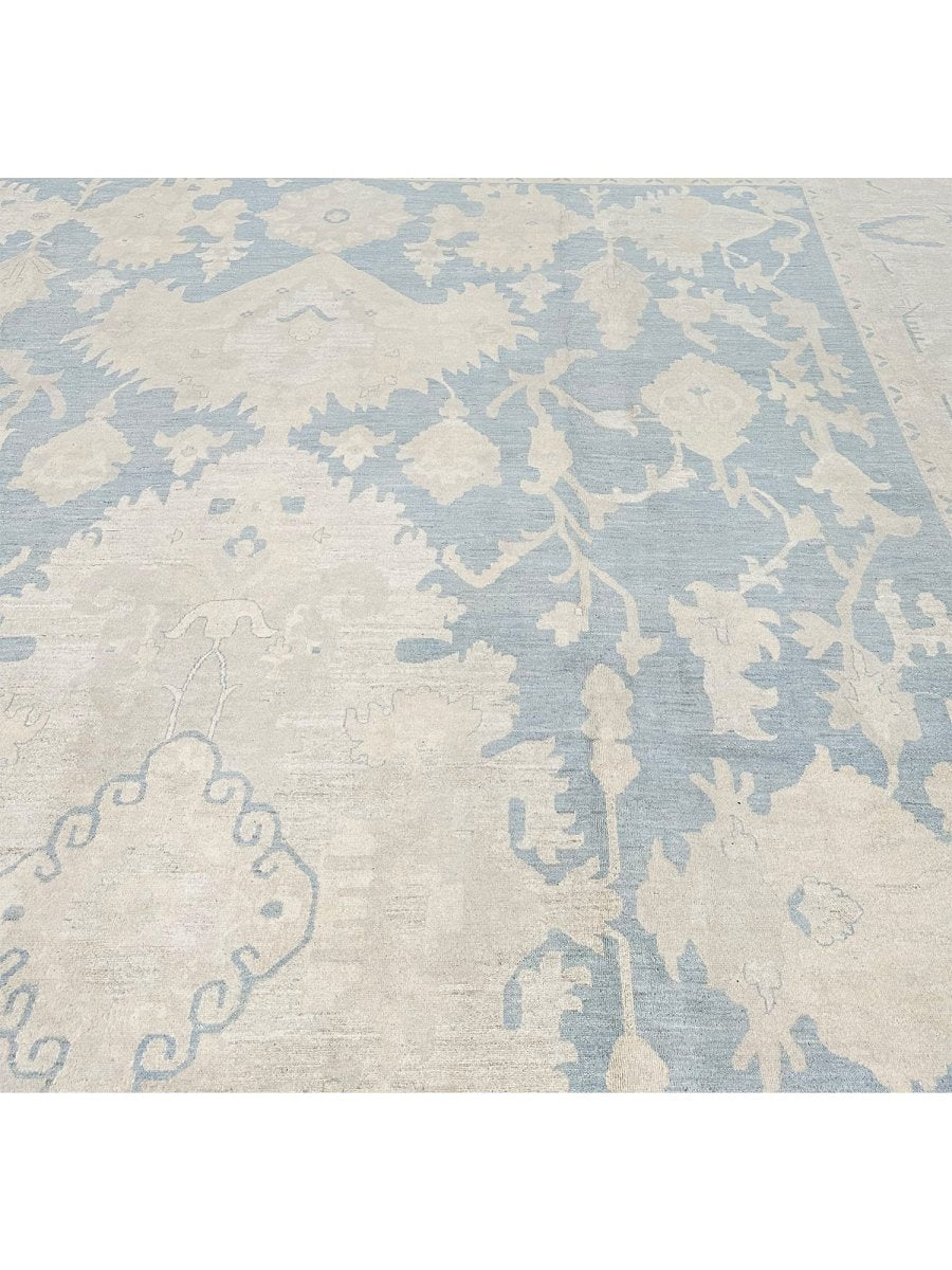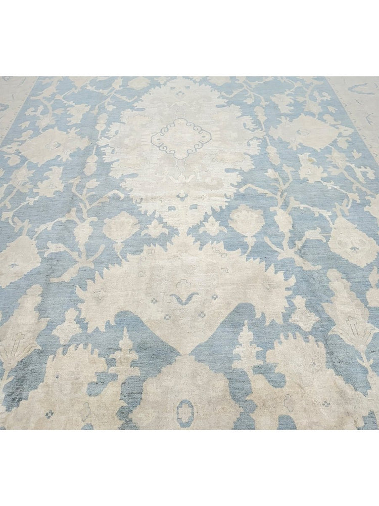 Add a touch of sophistication to your home with the timeless elegance of this 16x21 Turkish Oushak-style rug. Hand-knotted in Pakistan using traditional techniques, this rug boasts exceptional quality and craftsmanship. The floral pattern, featuring delicate motifs, creates a visually striking effect that is sure to impress. The beige, blue, and white earthy tones evoke a sense of calmness and serenity, making this rug perfect for adding elegance to any room. With its durable construction and timeless design, this rug is ideal for high-traffic areas. Enjoy free shipping within the US.