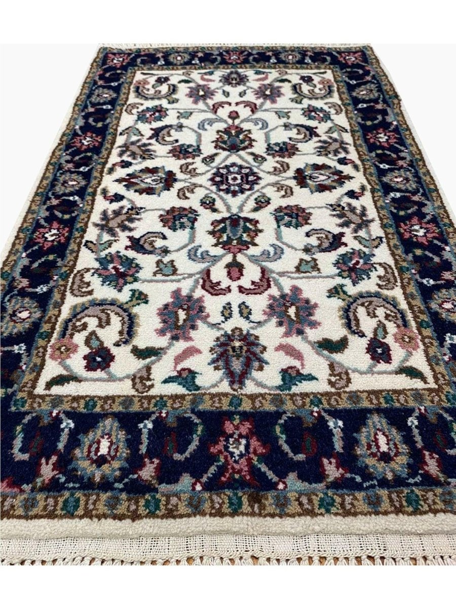 This gorgeous 2x3 Handwoven Tabriz Style Area Rug, is a work of subtle simplicity, featuring a soothing color scheme that exudes coziness and peace. A rich floral pattern that highlights the beauty of the carefully hand-knotted structure is created by the perfect blending of warm tones with creamy softness. Its classic form and superb Indian craftsmanship make it an excellent investment item. The subtle mix of deep blue, pink, and muted gray tones creates the illusion of warmth and welcoming comfort. Adding a homely touch to any environment. It's perfect for both formal and casual settings, and it will soon become a beloved feature in your house. Enjoy free US delivery.