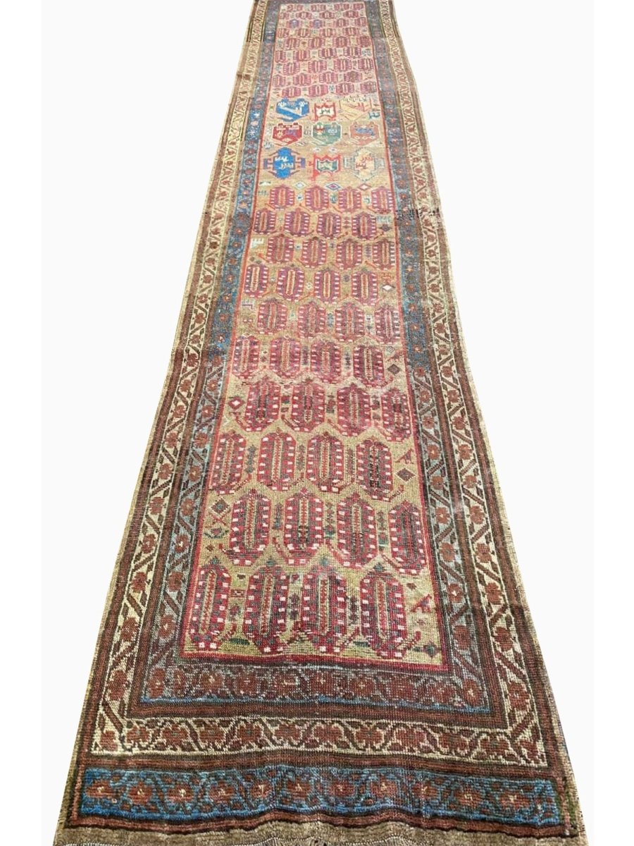 Embellish your house with the 3x16 Antique Persian Kord Runner rug, a true original that harmoniously blends traditional skill with classic style. Hand-knotted in premium wool, this exquisite rug boasts a geometric design that gives any room a chic look. Suitable for a lengthy hallway, kitchen, or as a chic touch in your living area, it produces a cozy and welcoming ambiance. The luxurious shades of red, brown, green, yellow, and blue add character and depth, and it's a great addition to any style of decor. This amazing rug is more than just a decor item, it's a work of art that lasts forever, adding to your home's personality. Get free shipping in the US.