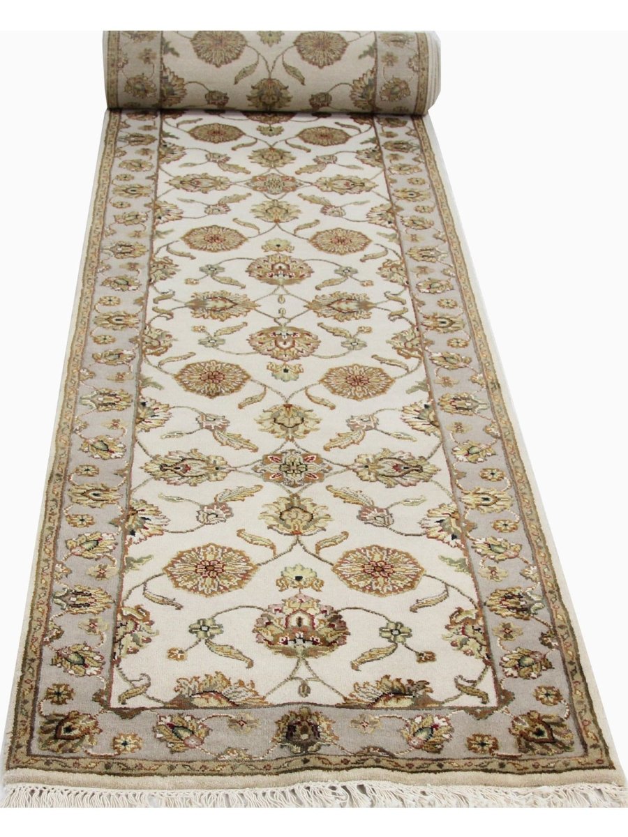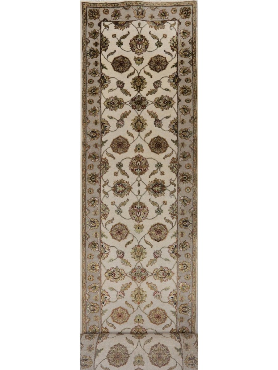 Enhance your home with the elegant design of this 3x20 Persian Kashan Style Runner Rug. Handwoven in India, this runner captures the sophisticated aesthetic of traditional designs with its stunning geometric pattern. The color palette features a soft beige background, beautifully adorned with geometric motifs and borders in shades of brown and subtle accents of red. Crafted from premium wool, this runner offers durability and a comfortable texture underfoot. Its impressive 3x20 size is ideal for adding length and a touch of traditional style to long hallways, corridors, or expansive entryways, bringing timeless craftsmanship to your space. Shop this beautiful rug now and get a complimentary delivery to your doorstep.