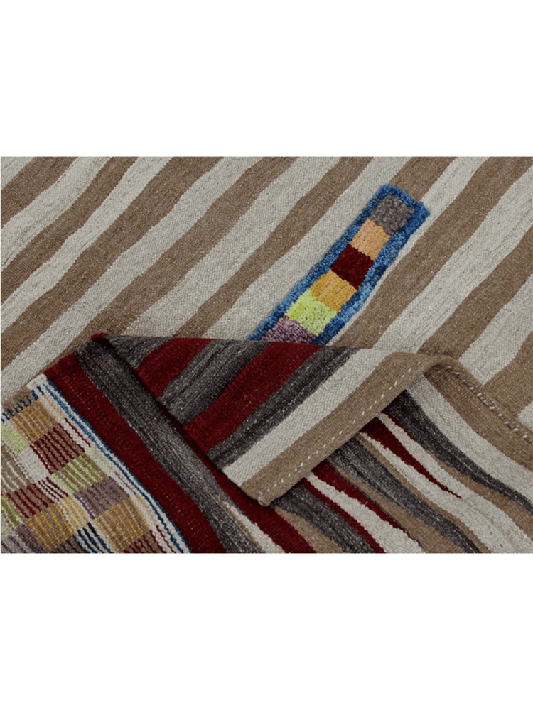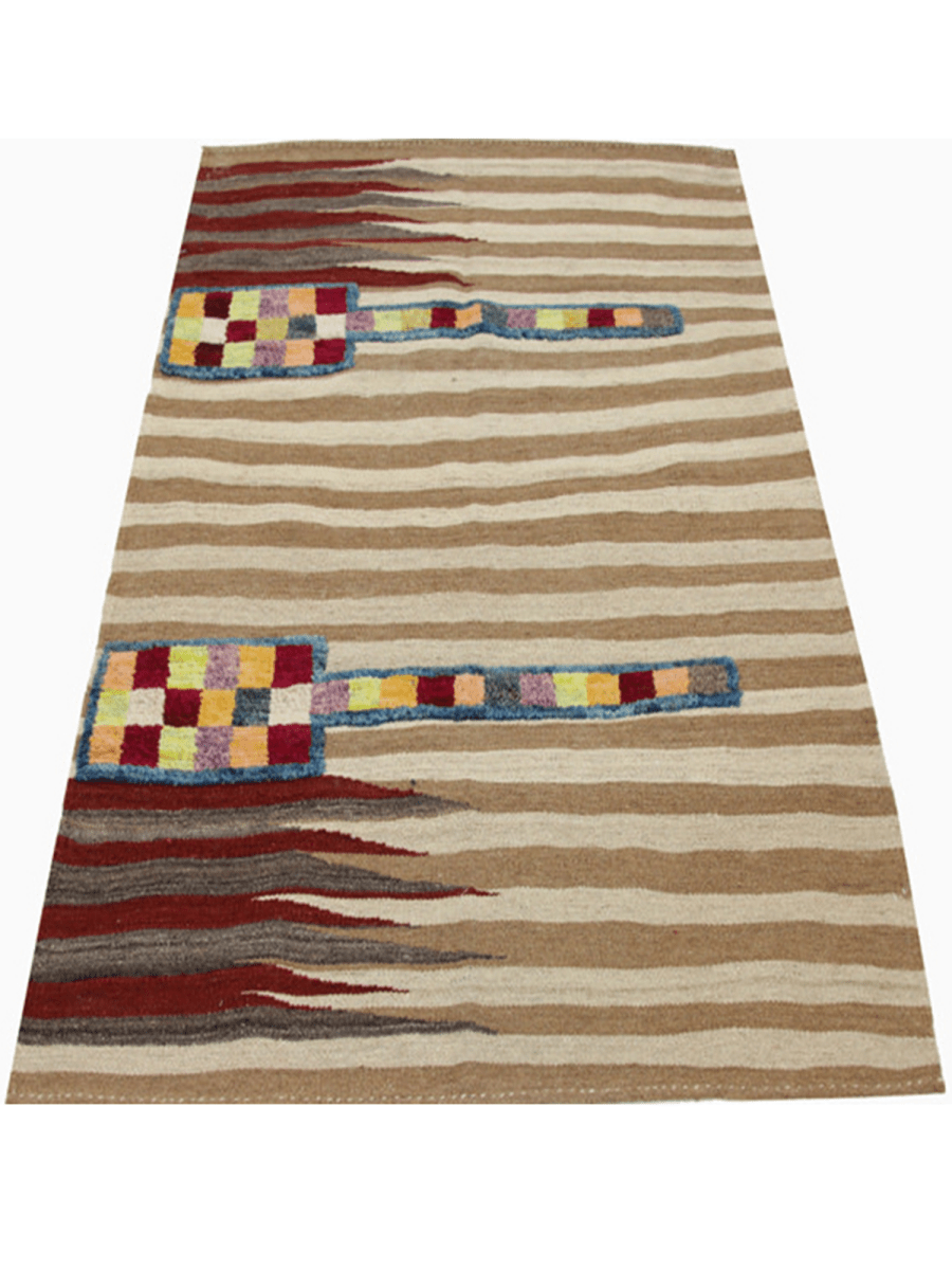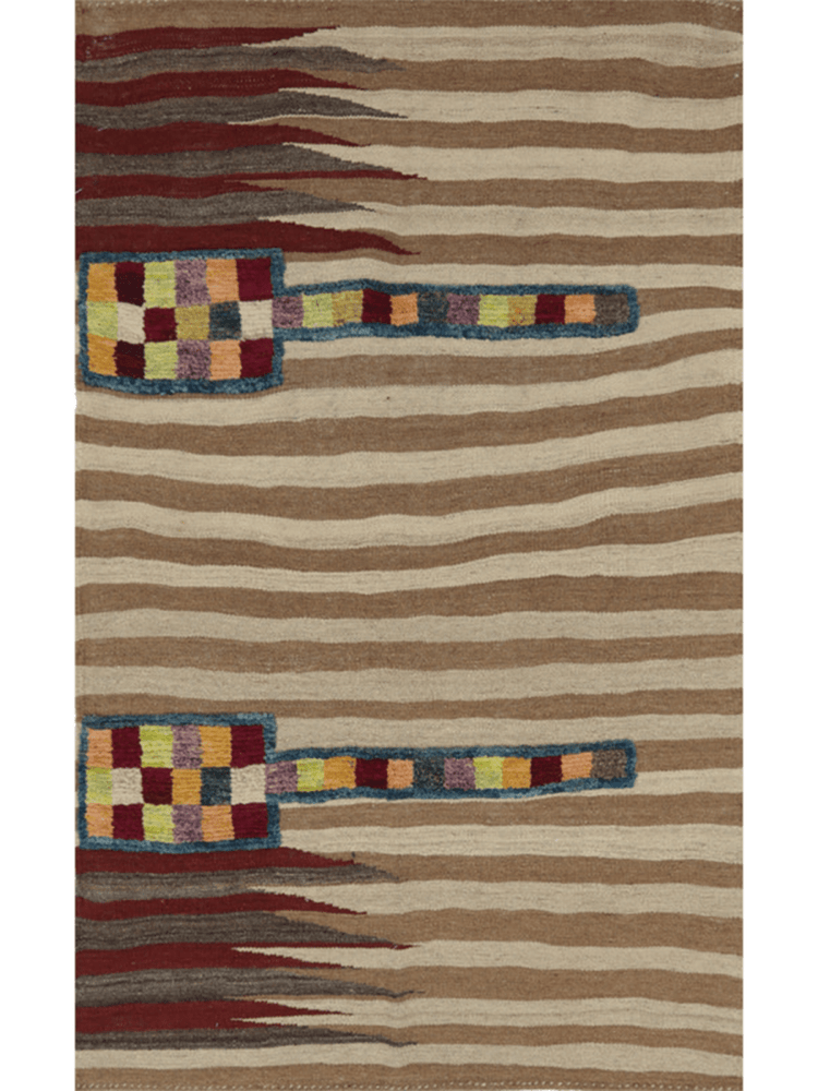 Add warmth and character to your space with this 3x6 Persian Kilim area rug. Handwoven from high-quality wool, this flatweave rug showcases an elegant striped pattern in deep red, brown, beige, and gray. The flatweave construction ensures durability, making it an excellent choice for high-traffic spaces. Whether placed under furniture or as a statement piece, this Persian Kilim rug enhances any setting with its exquisite craftsmanship. Its lightweight design allows easy handling and repositioning, offering beauty and practicality. Experience the artistry of Persian weaving with this unique and functional rug.